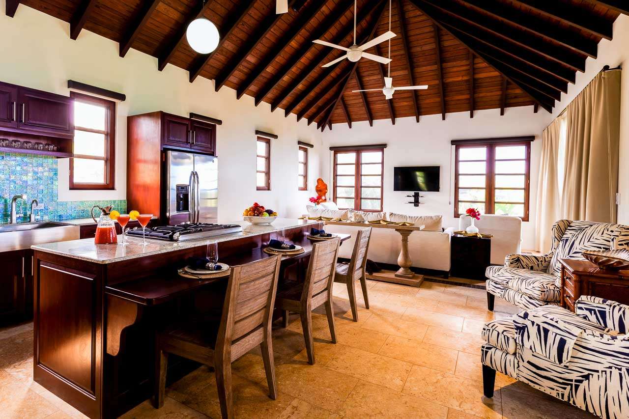 The spacious kitchen at Villa Nevaeh features the latest appliances that make cooking a breeze. Although as part of the Special Reserve Collection, your private chef will likely be preparing all of the meals you choose to have at the villa.