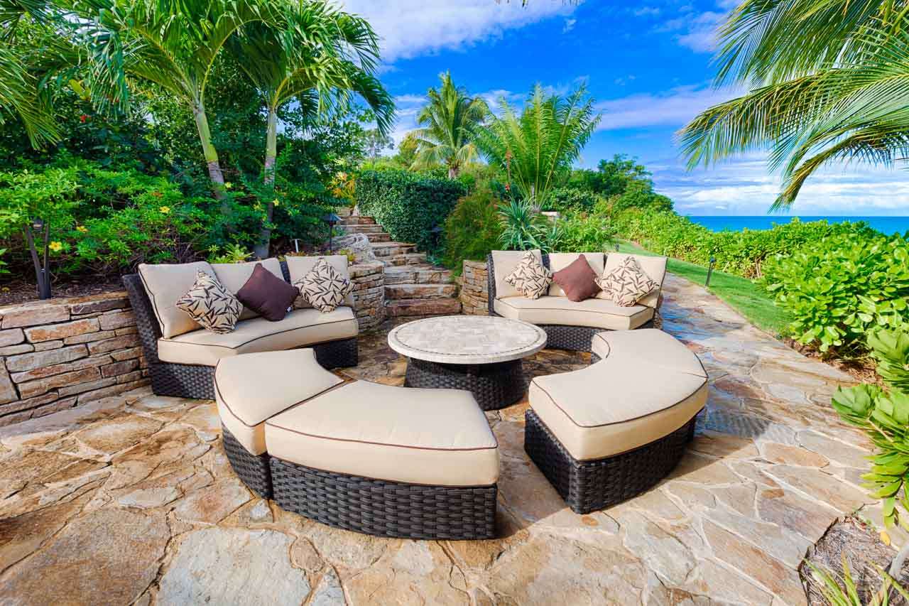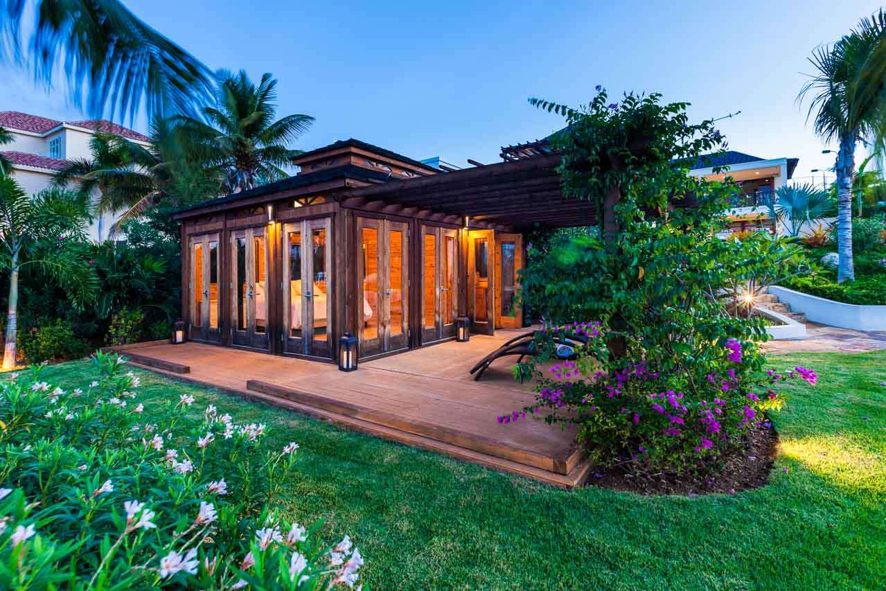 Set amongst an acre of landscaped gardens, the outdoor living spaces at Villa Nevaeh are sublime. Flowers and foliage surround all the buildings, extending down to the beach.