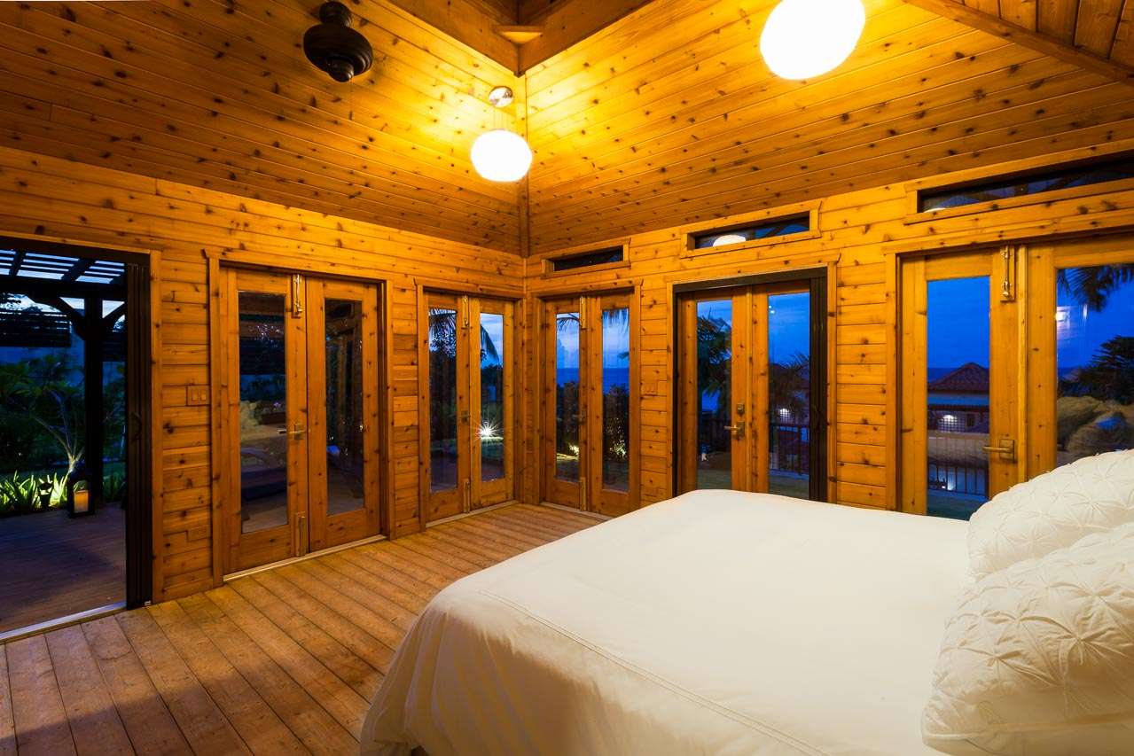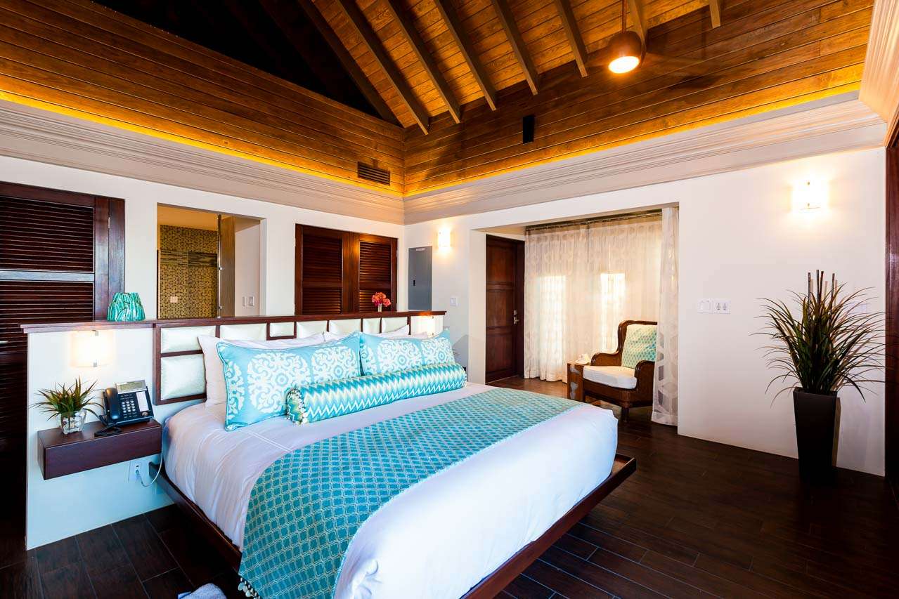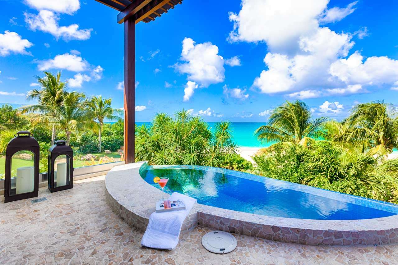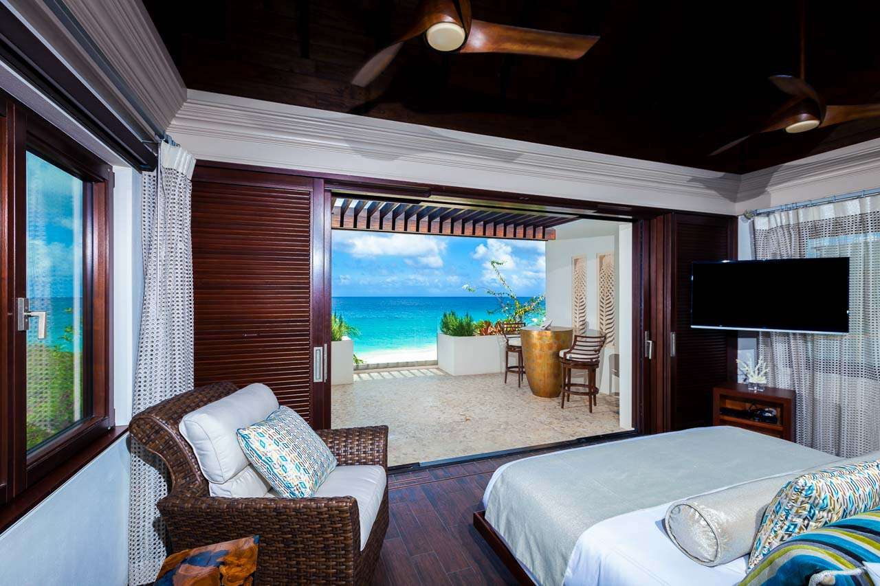Balinese-inspired architecture and décor create a relaxing atmosphere throughout, with integrated indoor and outdoor living spaces. From everywhere, open vistas of the sparkling Caribbean are framed by the doors and windows. The centerpiece is a Japanese courtyard with a traditional garden, water feature, and beautiful Balinese temple doors.