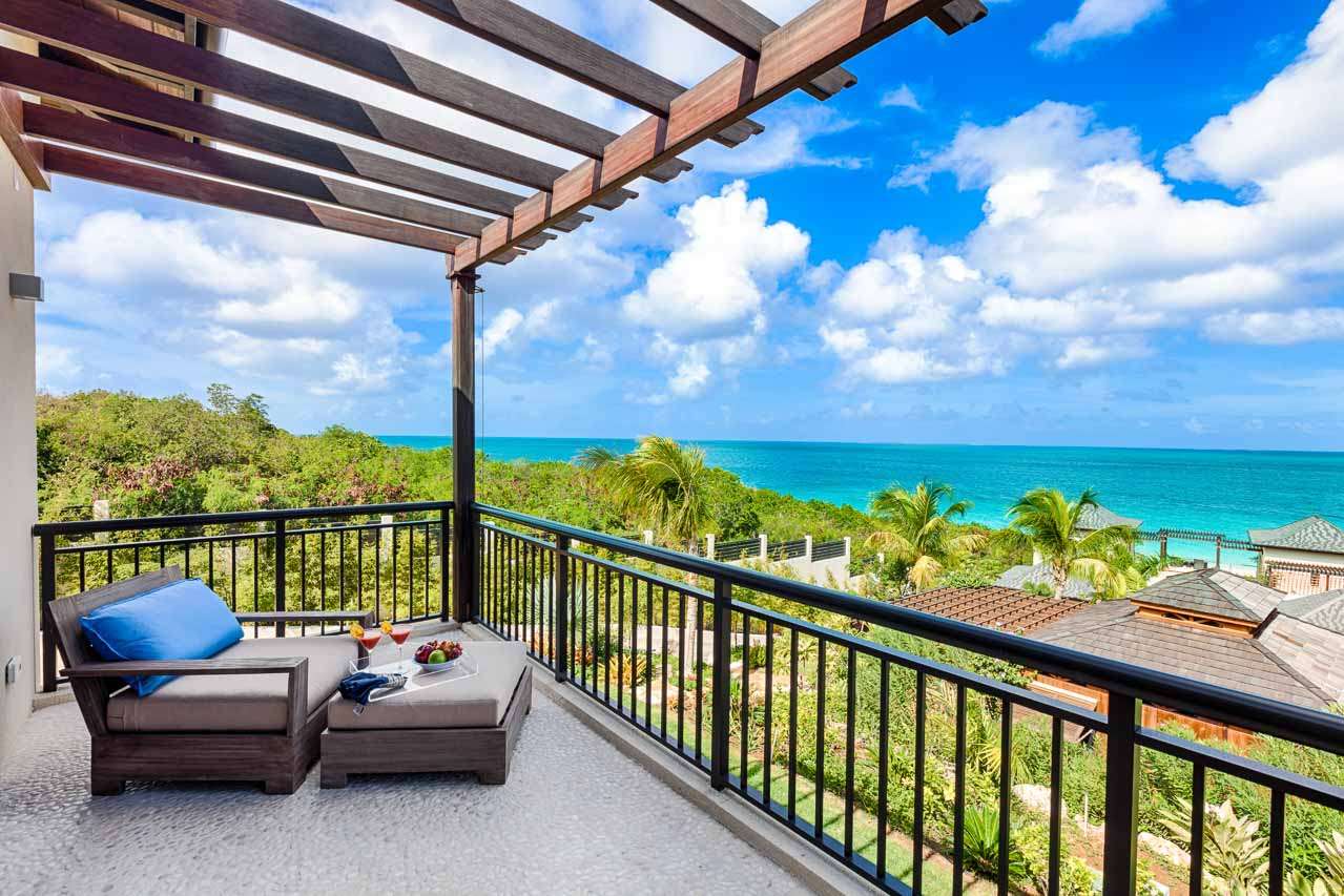 The covered terrace outside the great room features a beautiful lounge area, ideal for kicking back and admiring the view. Upstairs, the pergola-shaded cocktail deck features even more sea views, a nice spot to enjoy the sunset with a cool drink.