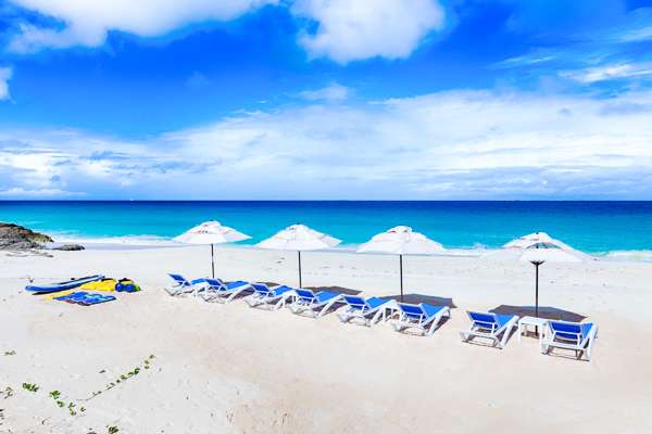 A winding path leads through the garden towards the sand of Long Bay. This beach is one of the prettiest on the island, with crystalline waters ideal for swimming and snorkeling. Life doesn’t get much better than this.