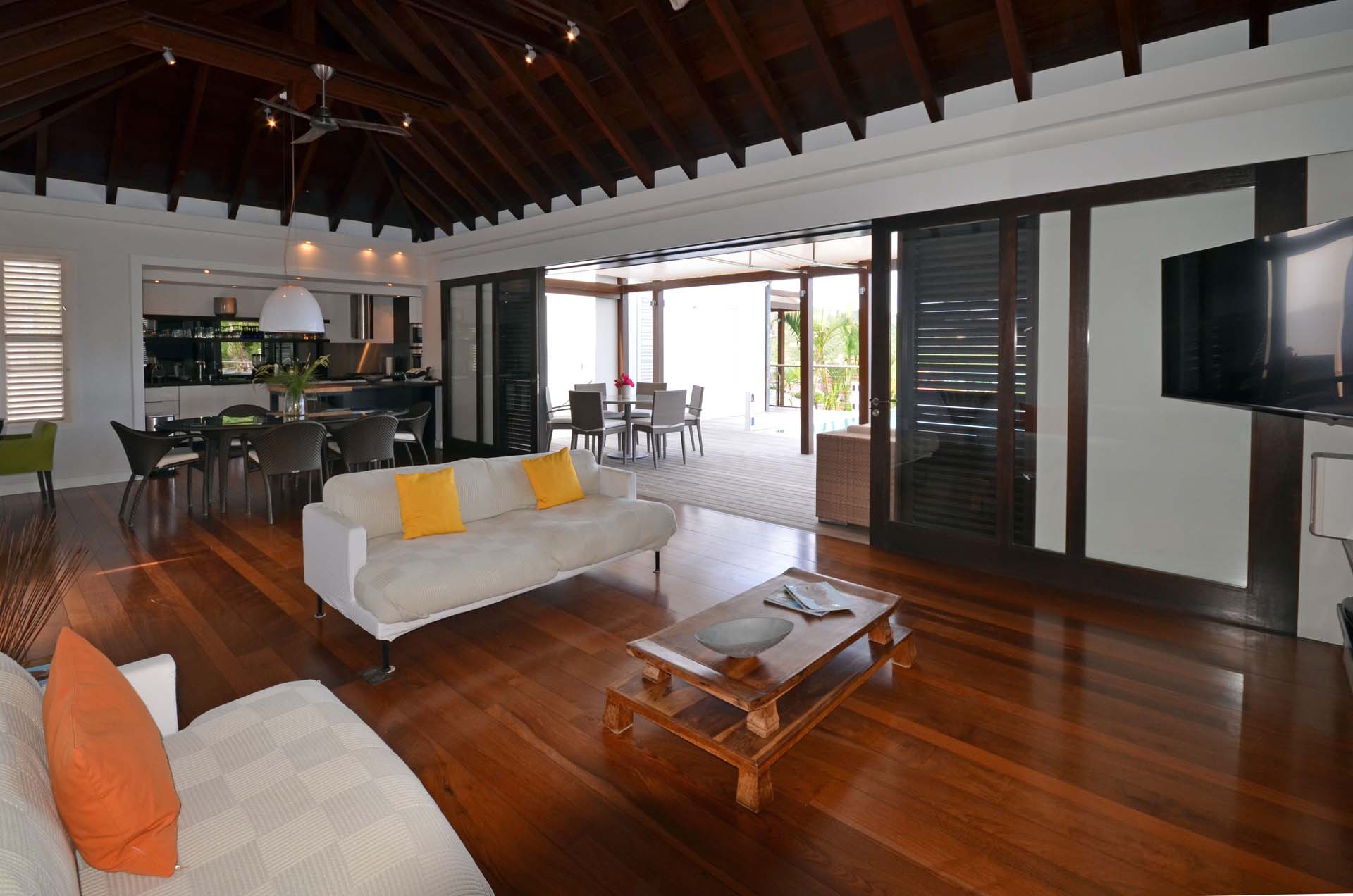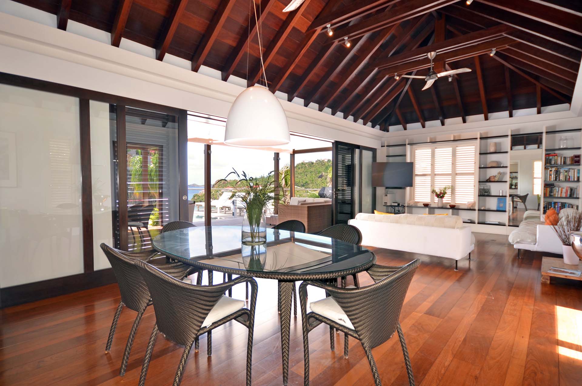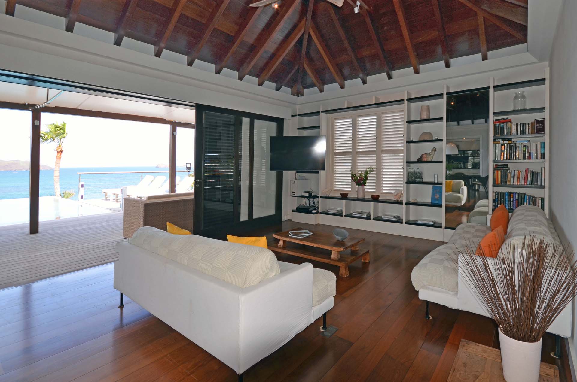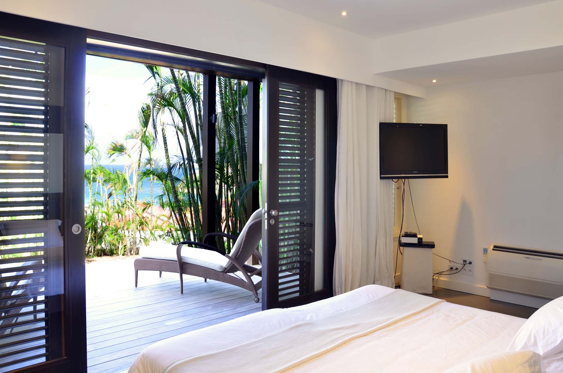 Poised hillside in popular St. Jean, this 3 bedroom villa offers casually elegant comfort making it ideal for a St. Barth villa vacation. An infinity edge pool is the focal point of an expansive deck and is an optimum spot to relax – toes up – and take in the stunning views, delightful breezes and the sound of rustling palms. A pergola is comfortably furnished for outdoor living and dining. Compact and sleek, the kitchen is outfitted to please a gourmet cook. It opens to a dining area that flows into the living space - ideal for TV viewing (Apple TV). The 3 spacious air-conditioned bedrooms all have en suite baths. Two (with king beds) are at opposite ends of the villa; pool level, they boast ocean views. The third is lower-level (its king bed is convertible to twins) and has a garden view. All are nice retreats.St.Jean Beach is just a short (but steep) walk away.Please fill out the form to begin your inquiry and we will connect you with a seasoned villa rental specialist.