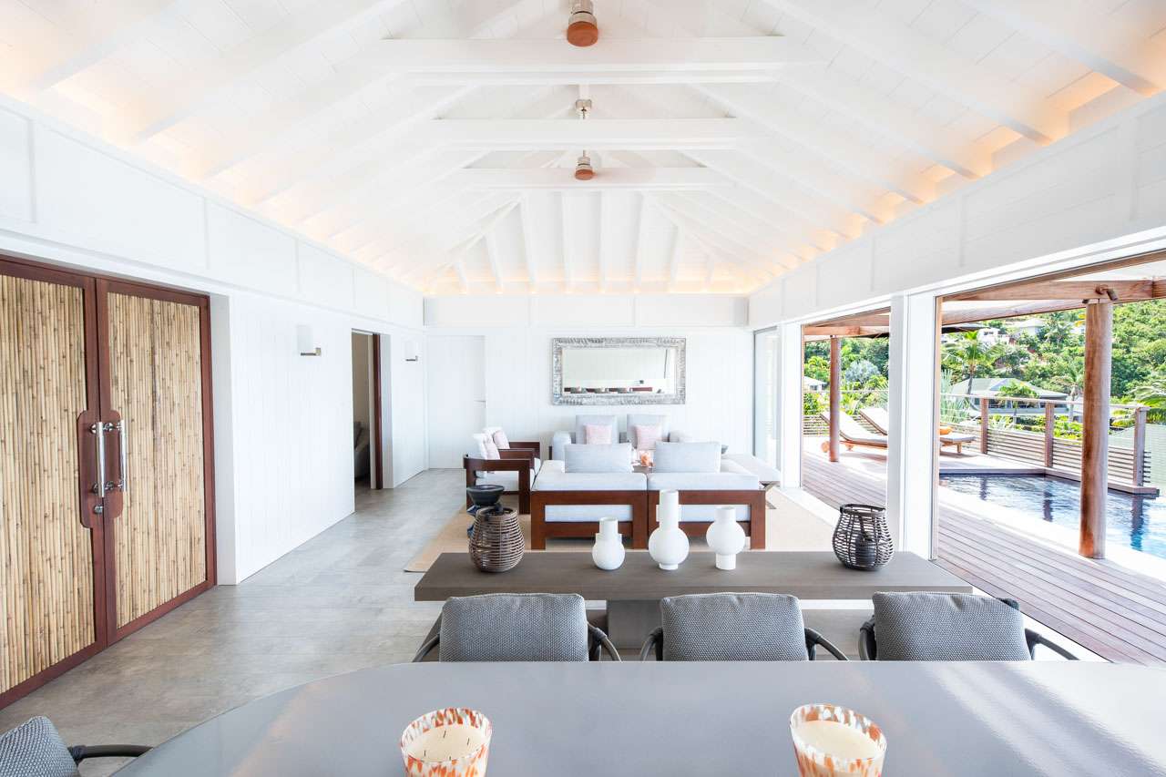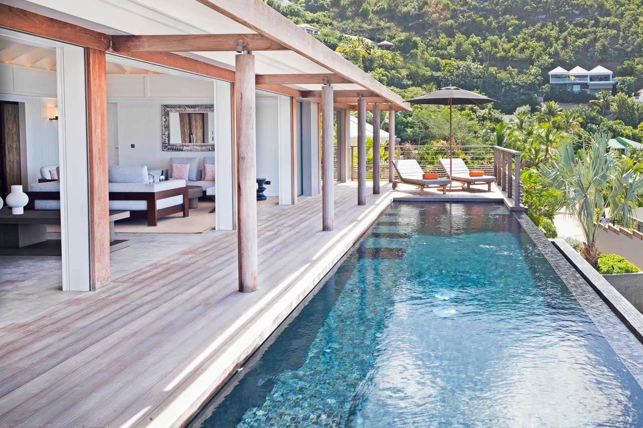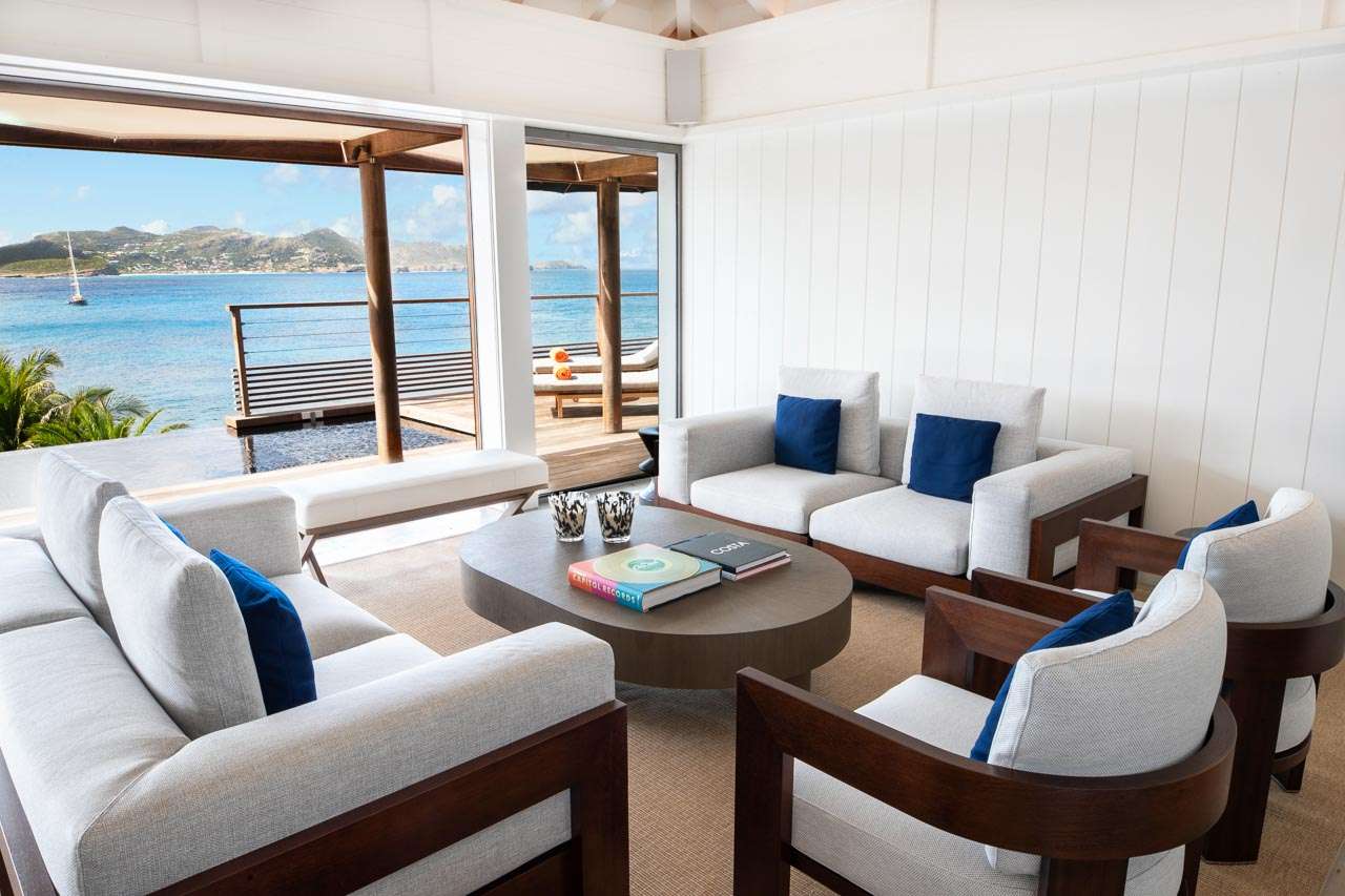 Villa Niña (villa code: WV NIN) is one of three "sister" villas named, together with the Pinta and Maria, in homage to Christopher Columbus who discovered the island and named it after his brother. Niña arcs above Point Milou’s dramatic, craggy coastline. French designer Olivia Putnam took her inspiration from a ship’s bow and the villa faces the sea and the sound of the surf adds to the ambiance. Sleekly modern, natural materials, including bamboo and volcanic stone, link to nature and complement the surrounding lush tropical vegetation and the sound of the surf. Bi-level, Niña is configured with 2 bedrooms on the main level and two downstairs. Each has an ensuite bath, a dressing room, and a console-style desk. The downstairs bedrooms have a garden view. Airy and spacious, there’s a fully equipped kitchen, a comfortable living room, a dining area, and a separate media room. A deck —with a private pool— is furnished for outdoor living, relaxing, and enjoying glorious sunsets. Just steps from the 5-star Christopher – one of the island’s iconic hotels—villa guests have access to 24/7 room service and all the hotel’s amenities which include two restaurants, a beach bar, and its decadent Spa Sisley. And there’s a spectacular seaside swimming pool banked with super-comfy chaises. Villa guests can settle in and simply sign up for any of the services they desire. Villa Niña is ideal for extended families and gatherings of friends – all of whom will savor the perfect combination of luxury, service, and privacy. * Note - no back to back bookingsPlease fill out the form to begin your inquiry and we will connect you with a seasoned villa rental specialist.