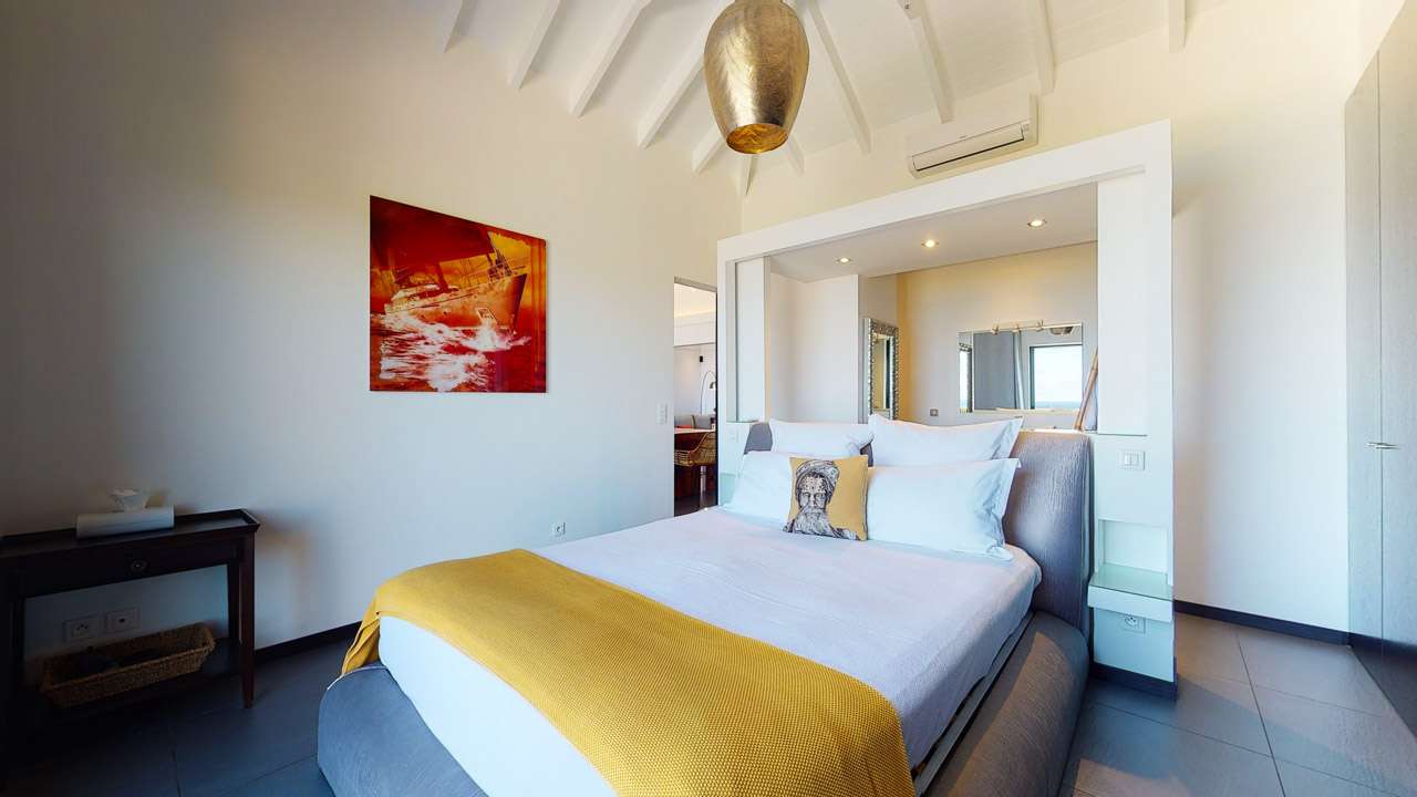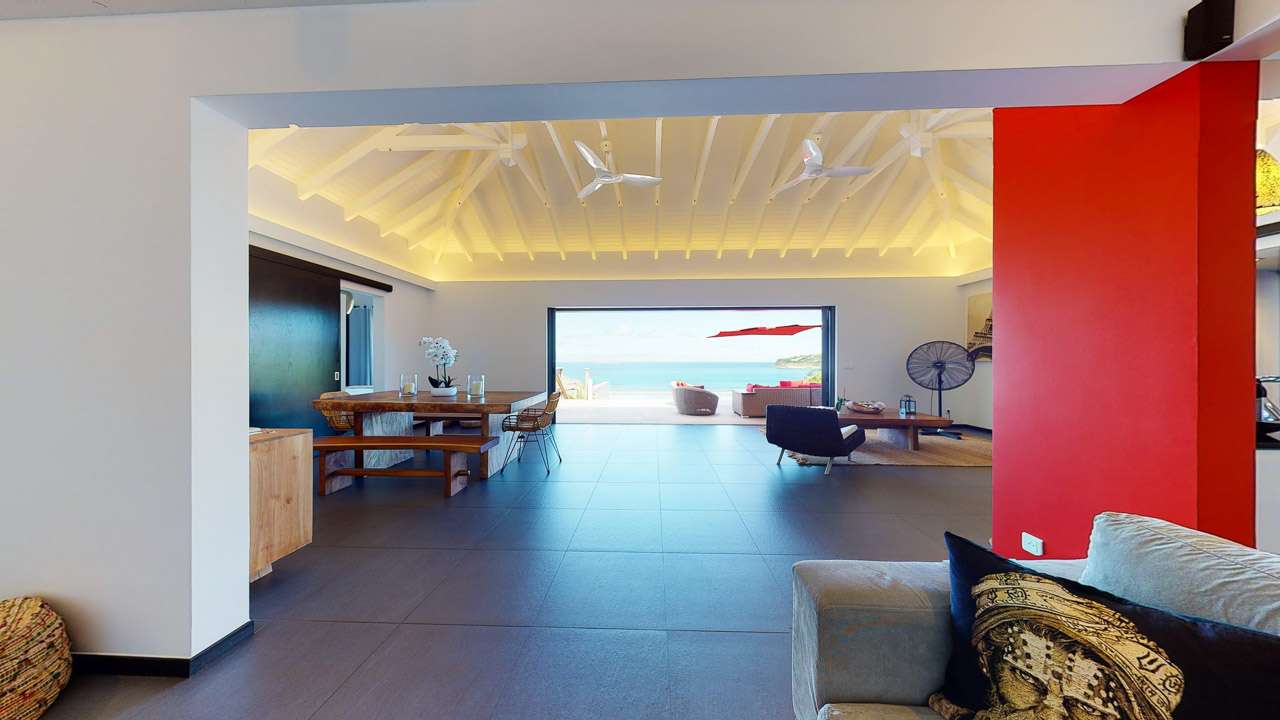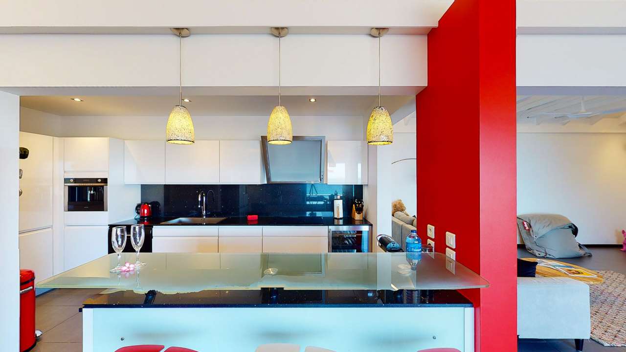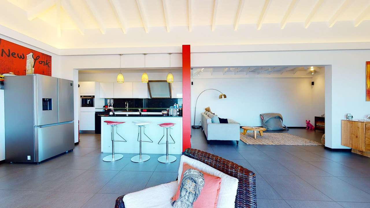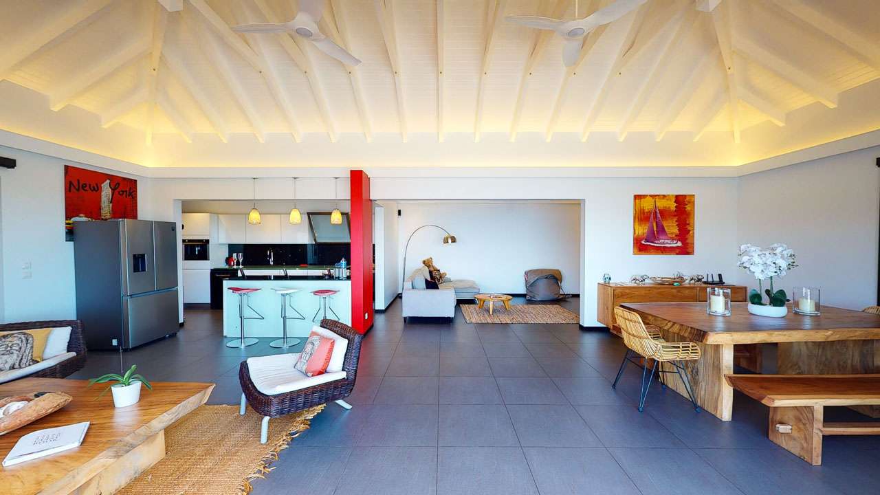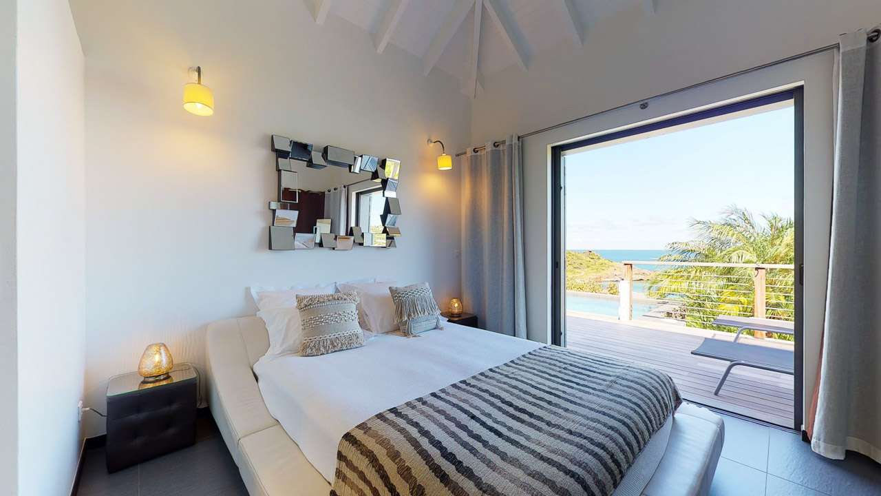 Welcome to Villa Nita (villa code: WV ITA), a breathtaking 3-bedroom villa located in Lorient, St. Barts nestled in the hills above the bay, offering stunning ocean views. Modern, contemporary, and with dashes of retro flair, the interiors of Villa Nita are trendy and cool. Prints of Paris and New York hang on the walls, while accents of red and black run throughout and enhance the chic, movie-star atmosphere. Ideally located close to Lorient Beach, the shop and restaurants in St. Jean are just 5 minutes away. The capital city of Gustavia is less than 10 minutes away. The open-plan villa features a large great room, with a kitchen, dining room, sitting area, and TV room. The entire space opens to the outdoor terrace and the ocean views. The sitting area is a nice spot to settle in for your morning coffee, admiring as the sun emerges from behind the hills of St. Barts. For something a bit cozier, the TV room features a plush sofa in front of a large screen, ideal for movie nights. The modern kitchen at Villa Nita has everything you’ll need to whip up gourmet meals during your stay. Sleek black countertops and side-by-side red SMEG fridges add a contemporary touch. To make things easy, our concierge can organize grocery pre-stocking or delivery, catered meals, or arrange private chef service for a special occasion. The dining table has seating for up to six guests, a great spot to enjoy some sumptuous island cuisine. From here, the views make for a superb accompaniment to classic flavors and ingredients from St. Barts. There are 3 bedrooms at Villa Nita, spread across the property to ensure peace and quiet for each guest. The chic and modern theme continues in each, as do the incredible views over the shimmering Caribbean. On the main level, on either side of the living room is a bedroom, both with queen-sized beds and spacious ensuites. Descending to the lower level reveals the third bedroom, featuring its own private terrace space with an outdoor sofa. On Villa Nita’s outdoor terrace, a wicker sofa and set of chairs are the best seats in the house to enjoy the stunning sunsets. Facing out across the water, the views take in Île Toc Vers, Île Frégate, and Île Bonhomme, as well as St. Martin and Anguilla in the distance. The large infinity pool is an inviting place to spend your day, hopping in to cool off, and then relaxing in the loungers on the terrace to bask in the island sun. Following the steps to the lower level reveals a beautiful lawn on one side, another nice spot to set yourself up for a sunbathing session. Also down here is a gas grill, encouraging you to fry up some fresh fish or a succulent steak for dinner. Lorient Beach is just a short drive downhill, offering soft sand and turquoise waters. Head west for 5 minutes in the car to arrive at St. Jean, with a beach and plenty of restaurants and shopping options. For something more low-key, Marigot Bay Beach is a 5-minute drive to the east. During the December holidays the villa rents at the full occupancy rate regardless of how many bedrooms are used.Please fill out the form to begin your inquiry and we will connect you with a seasoned villa rental specialist.