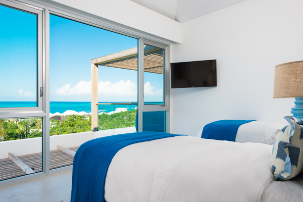 Bedrooms: Each of the four bedrooms in this North Shore Oceanview Villa offers breathtaking panoramas of the Caribbean, ceiling fans, a TV, and an ensuite bathroom. There are three bedrooms with luxurious king-sized beds, while the fourth bedroom has the option to be furnished with either two twin-sized beds or another king.