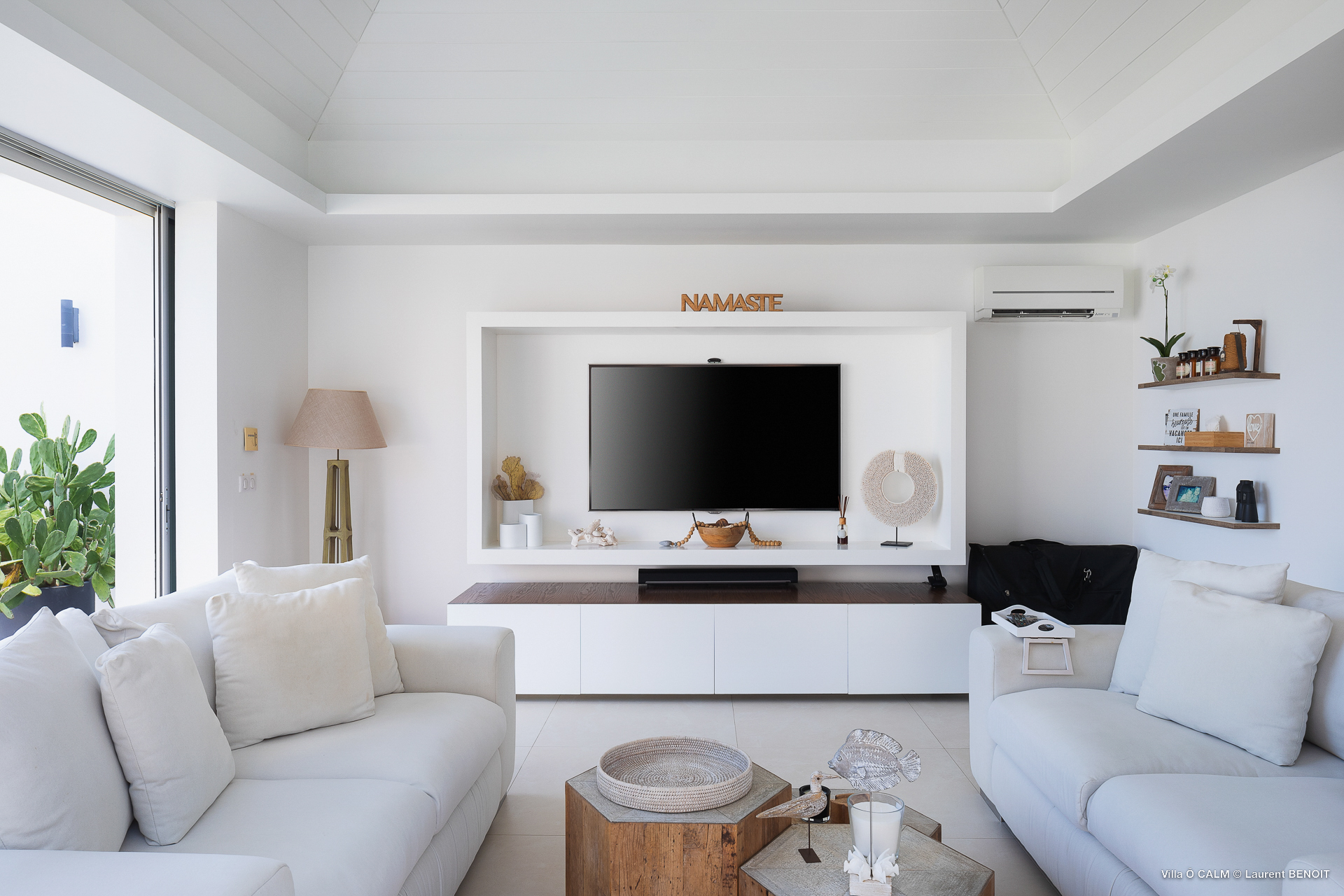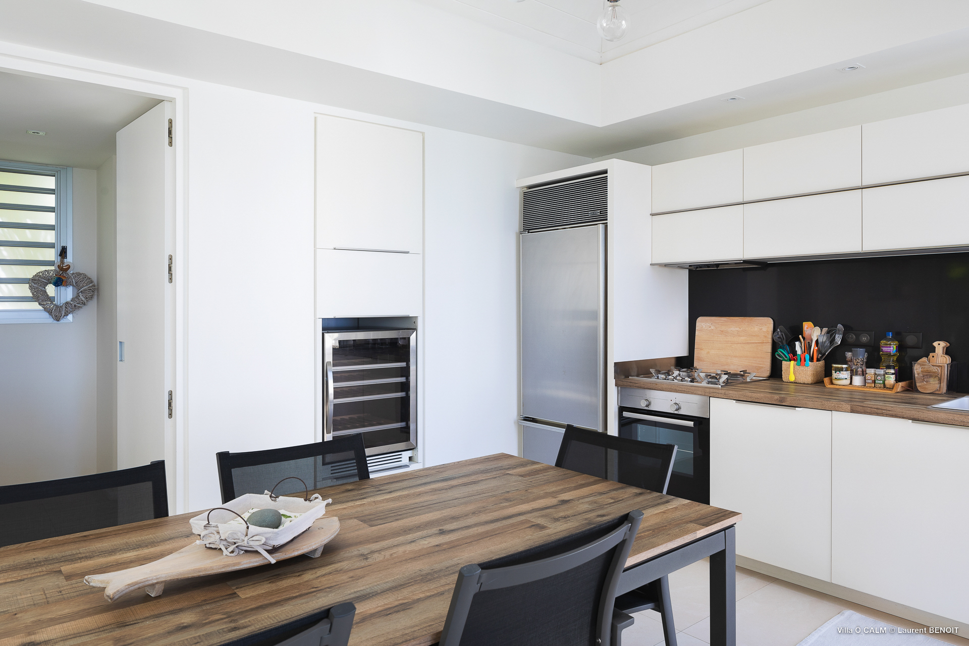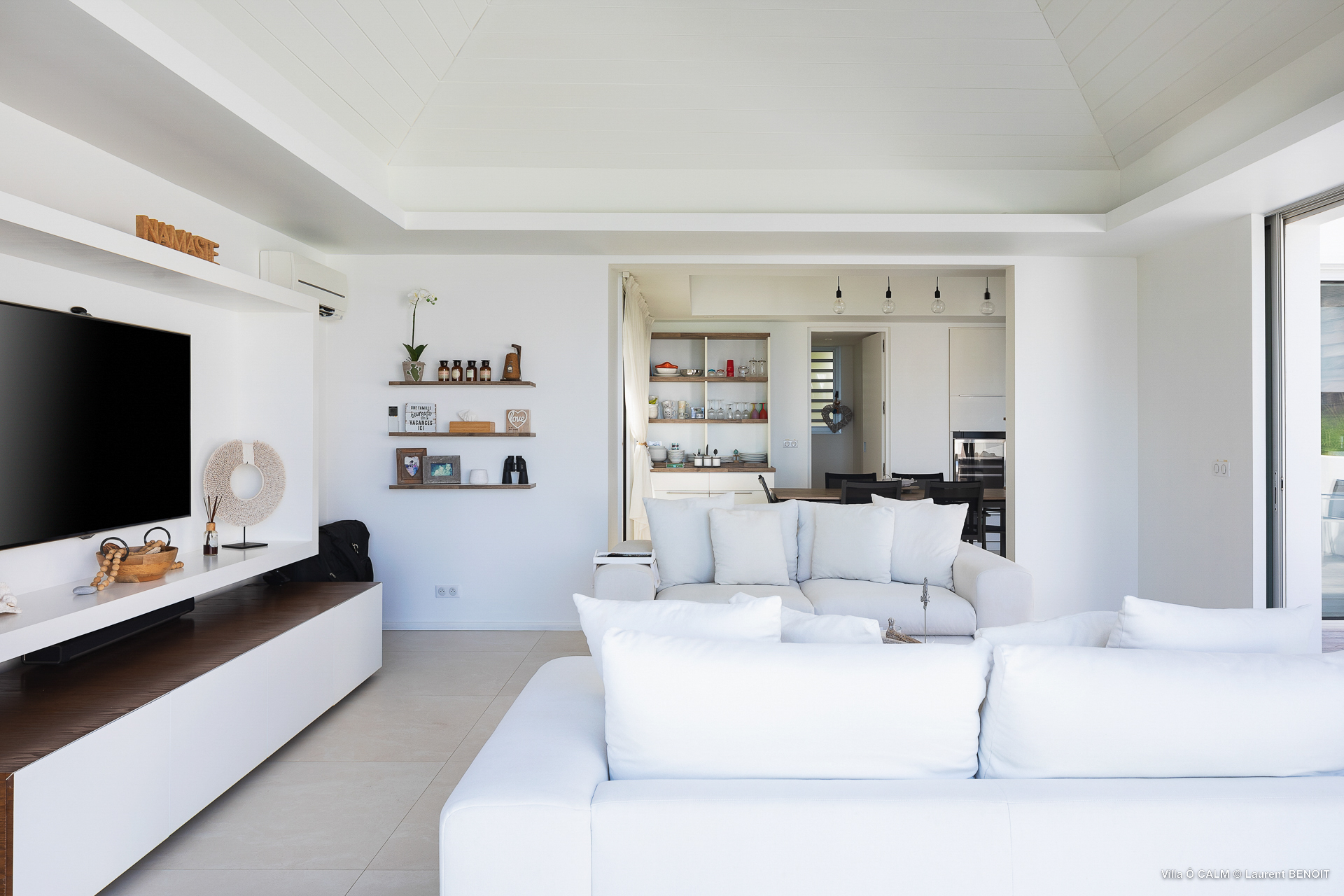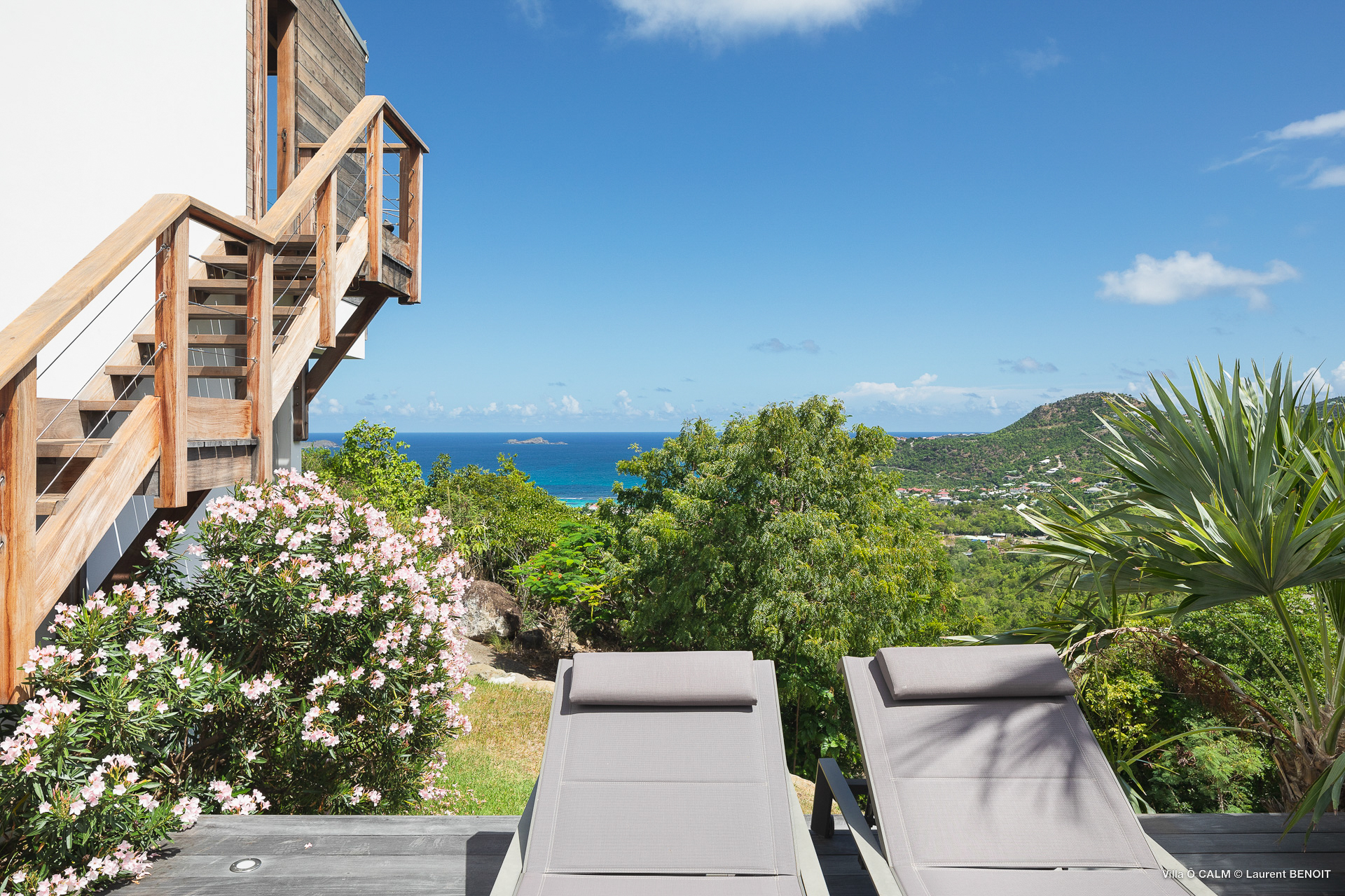 Villa O'Calm, (villa code: WV OKA) is a 1-bedroom villa located in a quiet area of Lurin, just above Gustavia, and offers views of the St. Jean area of St Barts. The living room opens up to three sides and offers great views. A dining area separates the living room from the ultra-modern, fully-equipped kitchen. There is a guest half bath. The bedroom has a large window with an incredible view of the sloping landscape and distant Caribbean Sea and also has a shower that opens up, to give the impression of showering outdoors. At the end of the deck of the heated infinity pool is a stairway leading to the lower sundeck with an outdoor shower. * Notes: Villa does not rent during low season, parking for one small car only, no parties. The 2nd Bedroom on the floor plan is no longer available. .Please fill out the form to begin your inquiry and we will connect you with a seasoned villa rental specialist.