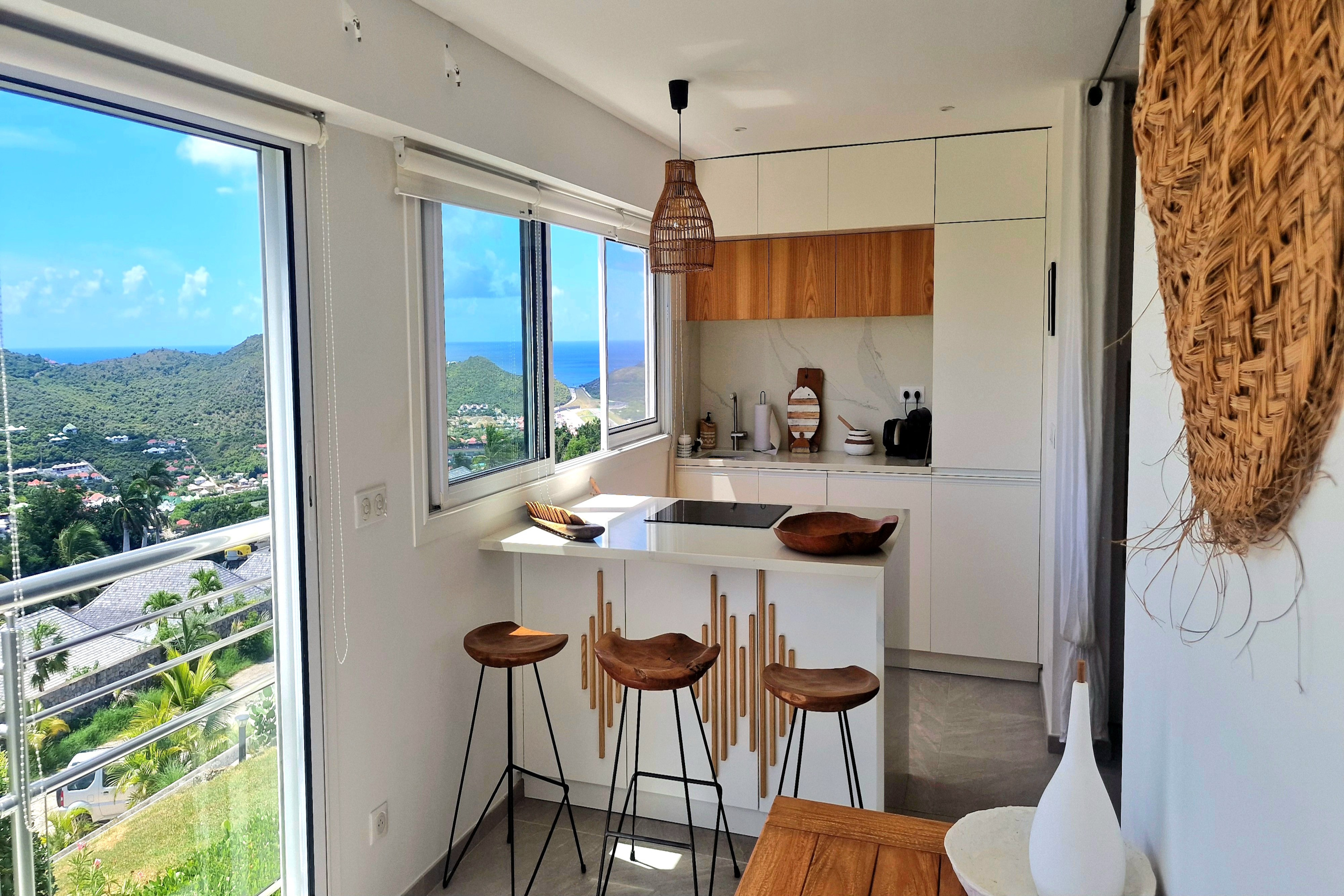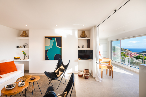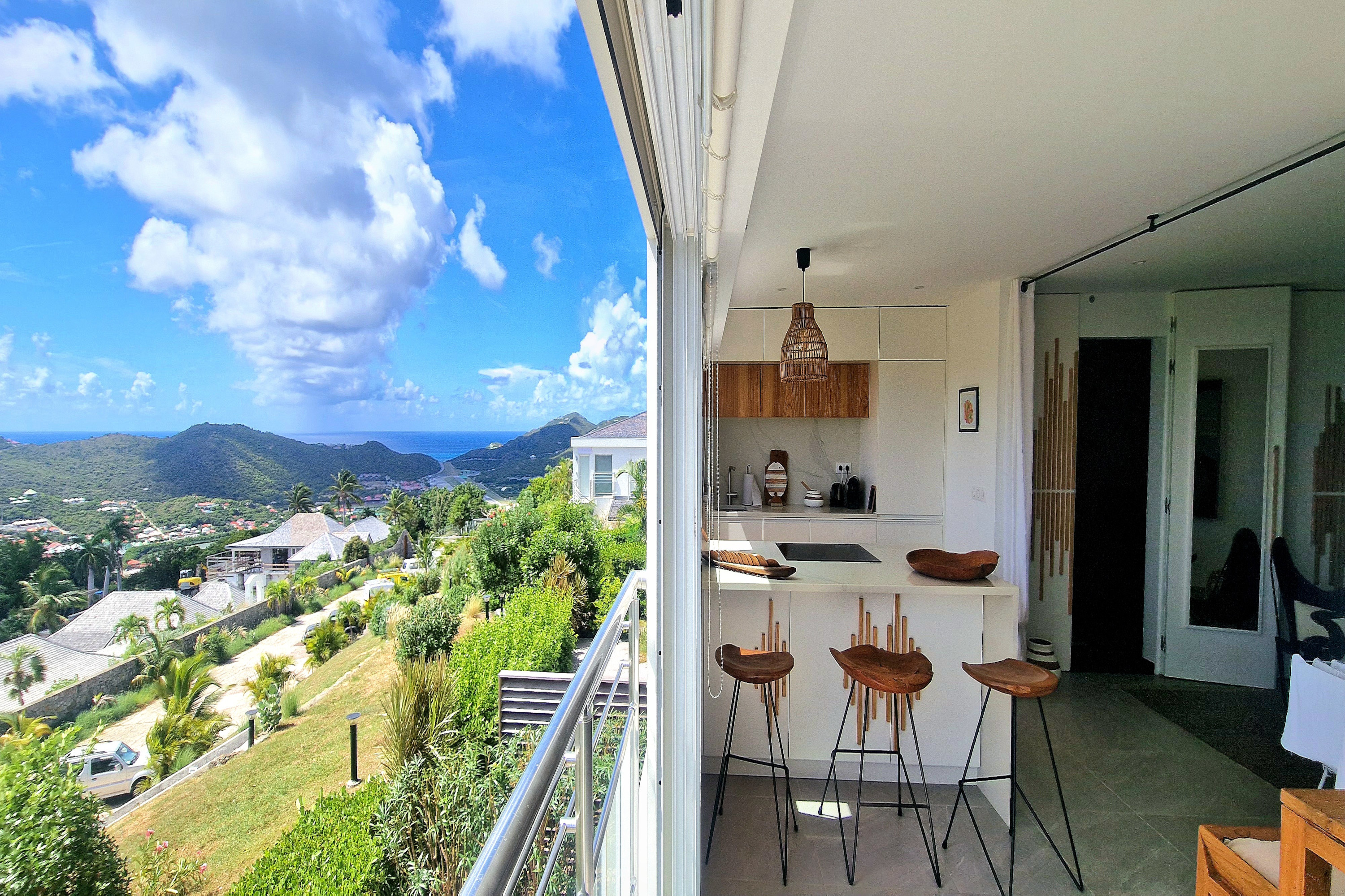 Apartment Ocean Nest, (villa code: WV LTQ) is a luxurious 1-bedroom condo and is part of the newly-renovated Les Terrasses complex, located just minutes from St. Jean Beach. The comfortable living area flows with a modern kitchen, both offering ocean and hillside views. The master bedroom offers a king sized bed with ensuite bath. There is a private gate that leads to the huge community pool at Les Terrasses, and offers panoramic views of St. Jean Bay, and year round sunsets. * Note - Apartment is accessed via a spiral staircasePlease fill out the form to begin your inquiry and we will connect you with a seasoned villa rental specialist.