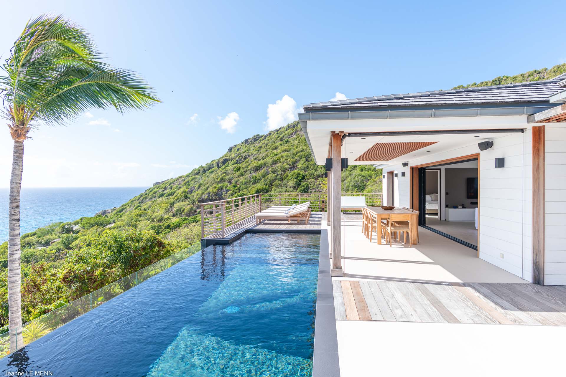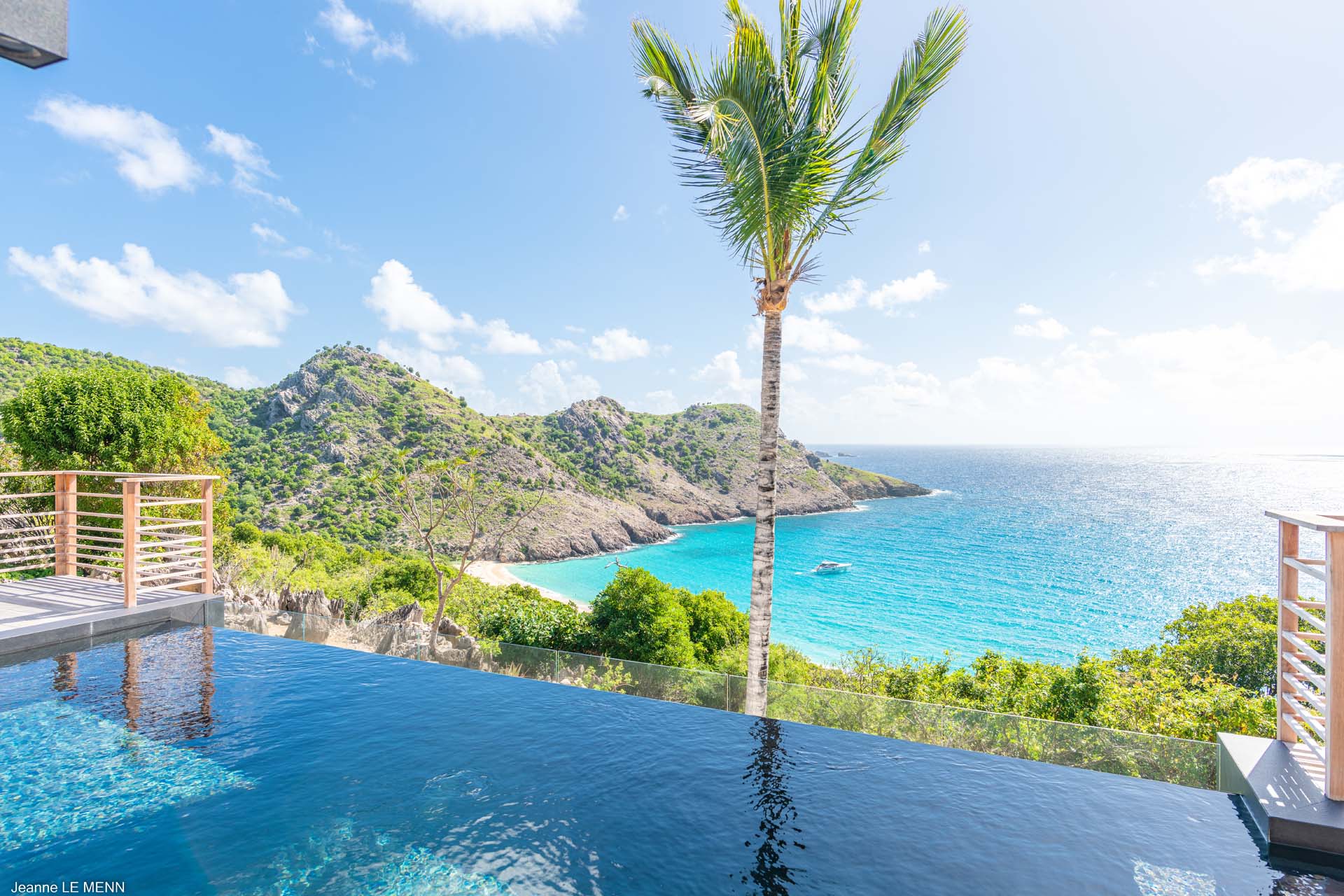 Villa Ocean Palm, (villa code: WV OCP) is a newly-built 3-bedroom villa located in Gouverneur and is a true haven of peace overlooking the bay. As soon as you arrive at the parking lot, the view of the blue ocean is absolutely breathtaking. Two of the bedrooms are identical and offer a spectacular view of the ocean. The 3rd bedroom is a real little private cocoon, located at the back of the property. The fully-equipped kitchen and the comfortable air-conditioned living room are entirely open to the terrace and the pool, with the stunning turquoise waters of Gouverneur Bay in the background. Indulge in the heated pool, or relax in the comfortable deckchairs, sunbathe during the day, and enjoy the beautiful sunsets: Villa Ocean Palm is an invitation to the Caribbean “art de vivre”! The high-tech equipment makes Villa Ocean Palm a modern villa with local charm. You will never get tired of admiring the view and photographing the star of the villa: the Palm tree. During the December holidays, the villa rents at the full occupancy rate regardless of how many bedrooms are used.Please fill out the form to begin your inquiry and we will connect you with a seasoned villa rental specialist.