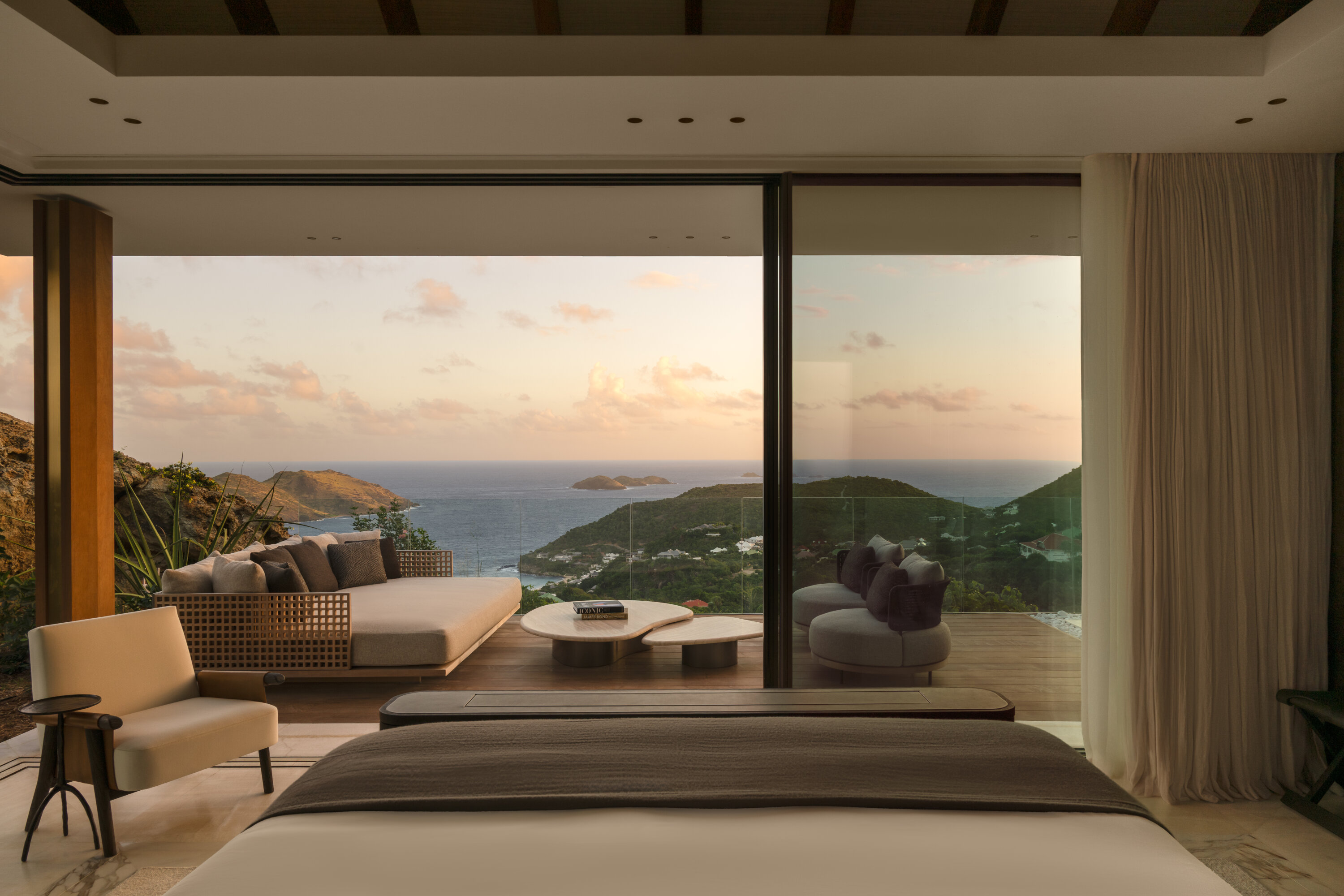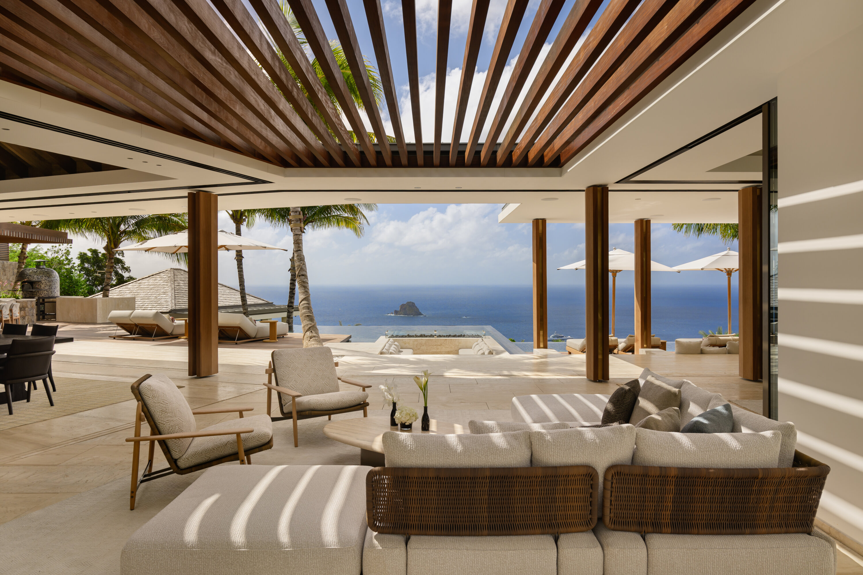 High above the luminous waters of Colombier, Omai Zilé (villa code: WV OMZ) reveals itself as a refined sanctuary where architecture, light, and pure island serenity come together in perfect harmony. This six-bedroom estate unfolds across 1,200 m² of thoughtfully composed indoor–outdoor living, offering a sense of openness and calm that instantly transports you into the spirit of St Barts. The villa’s sculptural lines, natural textures, and curated art pieces create an atmosphere of understated sophistication, where every space feels both generous and intimately welcoming.