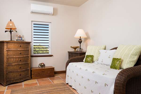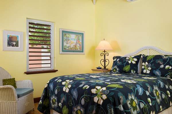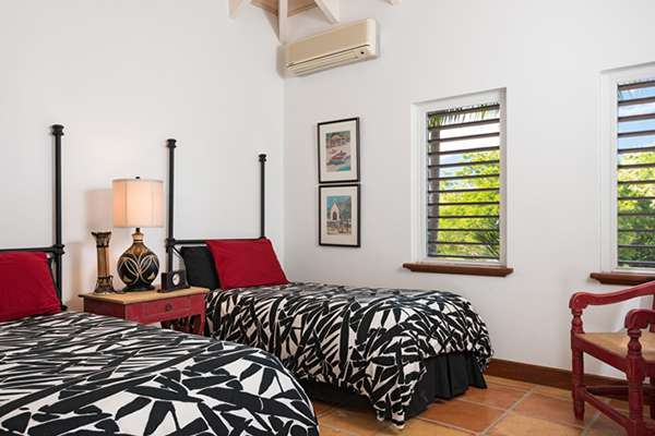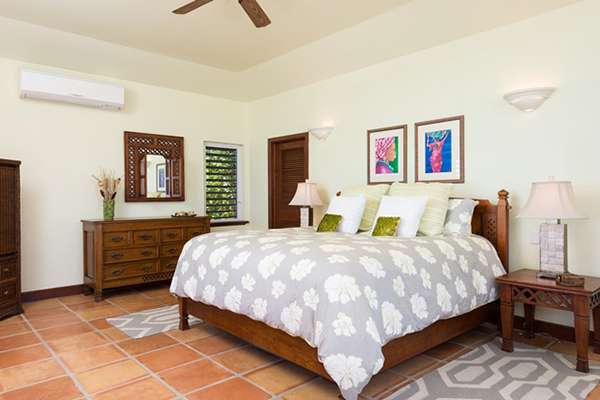 The spacious bedrooms at Villa Palermo, each with an ensuite bathroom and metered air-conditioning. Colorful and loaded with Caribbean personality, every room is a lovely place to retreat to at the end of long days in the sun.