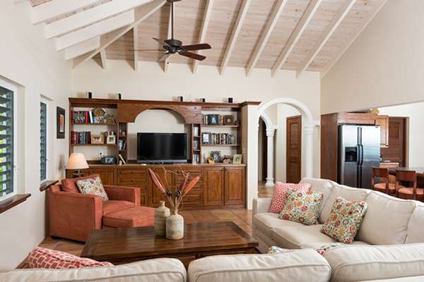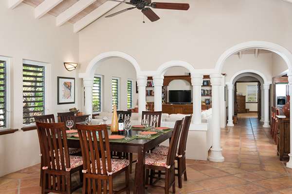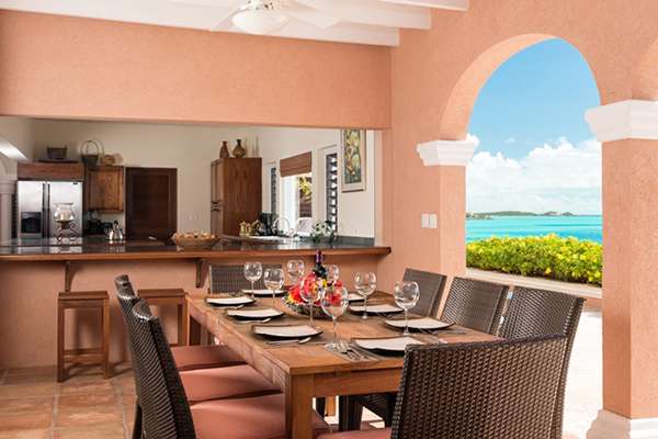 The villa’s indoor dining room has seats for up to 8 guests. You’ll love gathering here for festive island dinners, sampling the local flavors and cuisine. Our pre-arrival concierge team can even organize a private chef for special occasions.