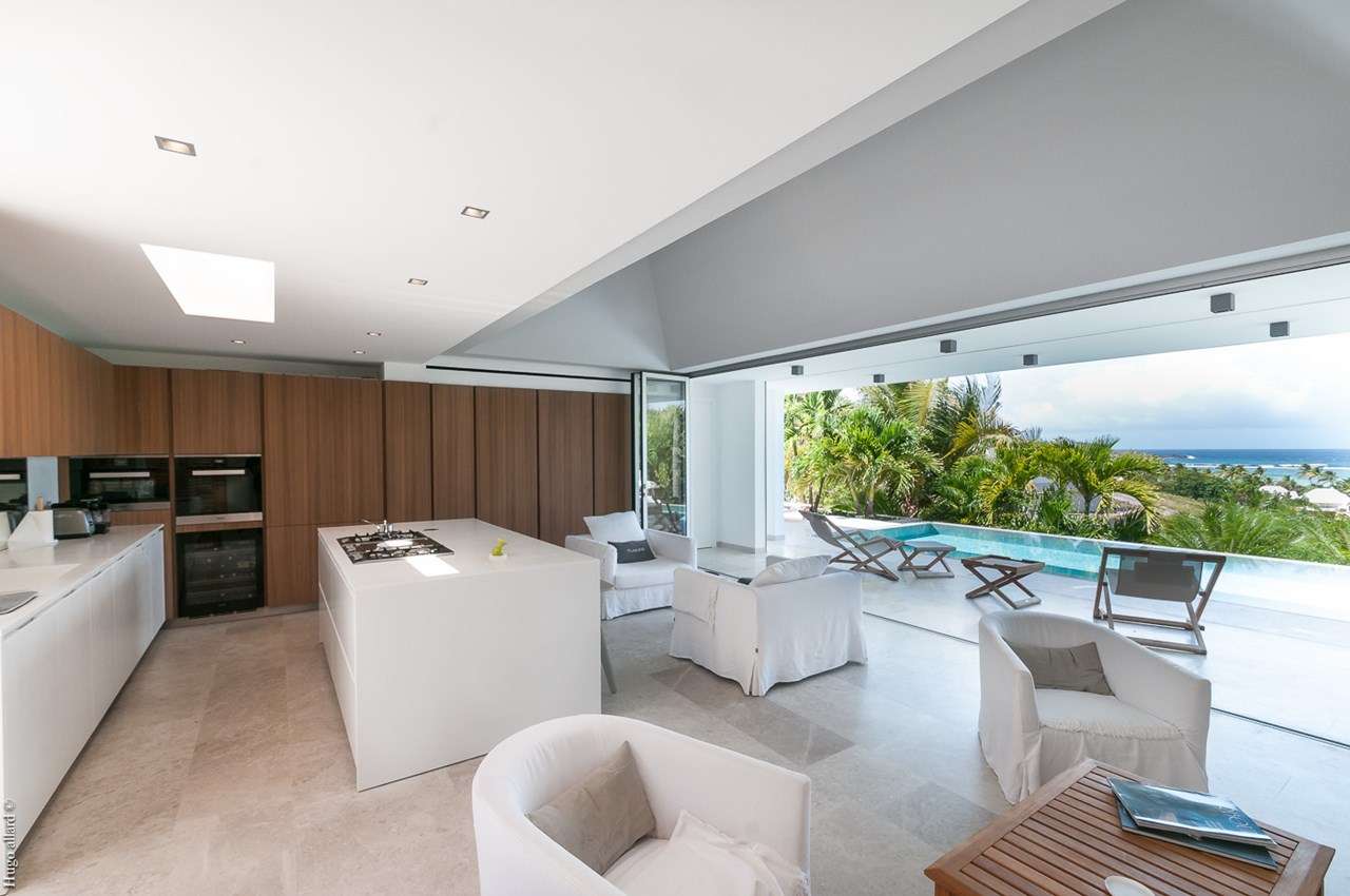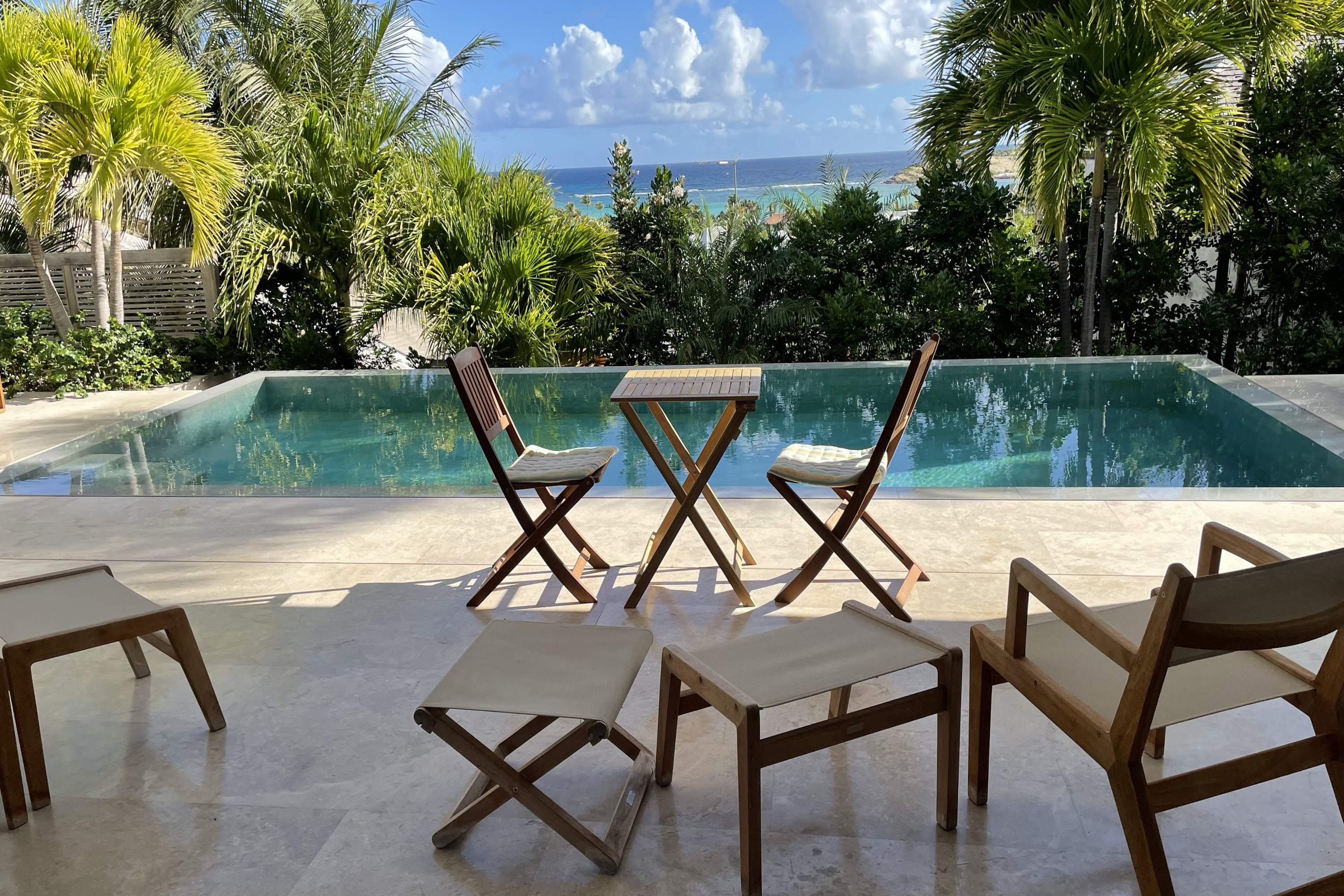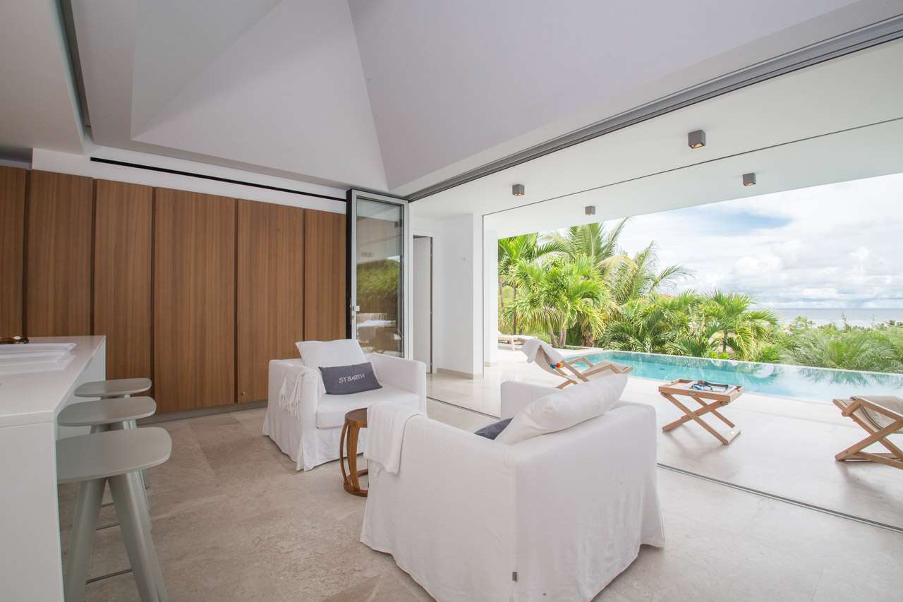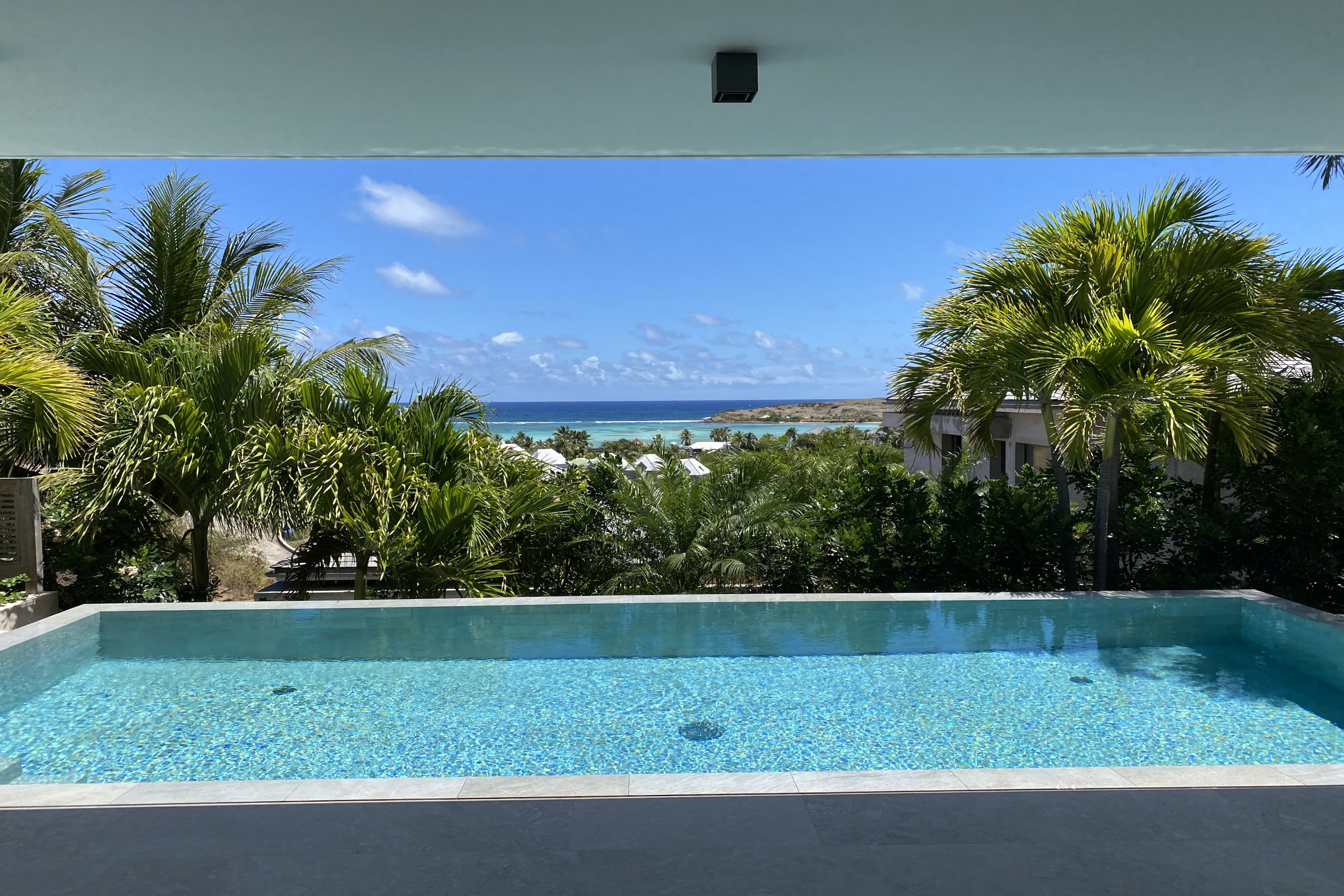 Welcome to Villa Palm (villa code: WV CBA), a contemporary 2-bedroom villa in Grand Cul de Sac, St Barts. Private, quiet, and secluded, this laid-back property is just a short distance from the hotels and restaurants on Grand cul de Sac beach. The interiors of Villa Palm are modern and chic, with a minimalist style encouraging you to unwind. The white walls are contrasted with rustic wooden accents, creating a dreamy, island vibe. A clean design features stylish vaulted ceilings, skylights, and warm, recessed lighting above. Nestled in the hills above the bay, Villa Palm is both secluded and within a short distance of shops, restaurants, and Grand Cul de Sac Beach. Tucked away at the end of a little road, Villa Palm enjoys partial ocean views framed by stone walls and lush, tropical foliage. At the center of Palm Villa is the open-plan great room, home to the modern living room and kitchen. The entire wall at the far end opens to the outdoor terrace, letting in the salty ocean breeze. Greys, whites, and dappled natural sunlight all enhance the striking and modern design. Scattered around the room are several soft white sofas, offering plenty of space to sink in and relax. Whether you’re enjoying a morning coffee or settling in with a good book for the day, this is the spot. A large wall-mounted TV also lets you host cozy movie nights inside. Sharing the space with the living room is Villa Palm’s gourmet kitchen. Cabinetry clad in tropical wood will inspire you to experiment with local flavors and ingredients while cooking. Our concierge can organize grocery pre-stocking or delivery, catered meals, or arrange private chef service for a special occasion. The large center island with bar-style seating is a nice spot for a morning espresso or a casual lunch. More formal meals are best hosted at the outdoor dining table, underneath a gazebo outside in the fresh air. The 2 bedrooms at Villa Palm are on either side of the living room, ensuring quiet and privacy for both. Each bedroom has a European king-size bed, a dressing room, and an ensuite bathroom with a shower and a partial ocean view. The bedrooms also both have direct access to the outdoor terrace, letting you wake up and start your day with a quick dip in the pool. The minimalist rooms are bathed in creamy neutral colors and natural light, continuing with a luxurious and relaxing vibe. Stepping outside onto the terrace makes it feel as if you’re staying in a private retreat. Shrouded with swaying palms and tropical foliage, the only sounds you’ll hear are the breeze rustling through the trees and the soft sounds of the waves in the distance. Loungers and chairs are scattered across the terrace, offering plenty of space to relax in the glorious weather. The inviting pool has an infinity edge, stretching out towards the trees below. Beyond, you can glimpse the curving bay of Grand Cul de Sac and the shimmering Caribbean sea. For those travelers craving a day on the sand, the beach at Grand Cul de Sac is a 5-minute walk. Lining the water are several restaurants and hotels, and water sports rentals are available as well. The beaches at Petit Cul de Sac and Lorient are both around a 7-minute drive. During the Thanksgiving and December holidays, the villa rents at full occupancy rates regardless of how many bedrooms are used.Please fill out the form to begin your inquiry and we will connect you with a seasoned villa rental specialist.