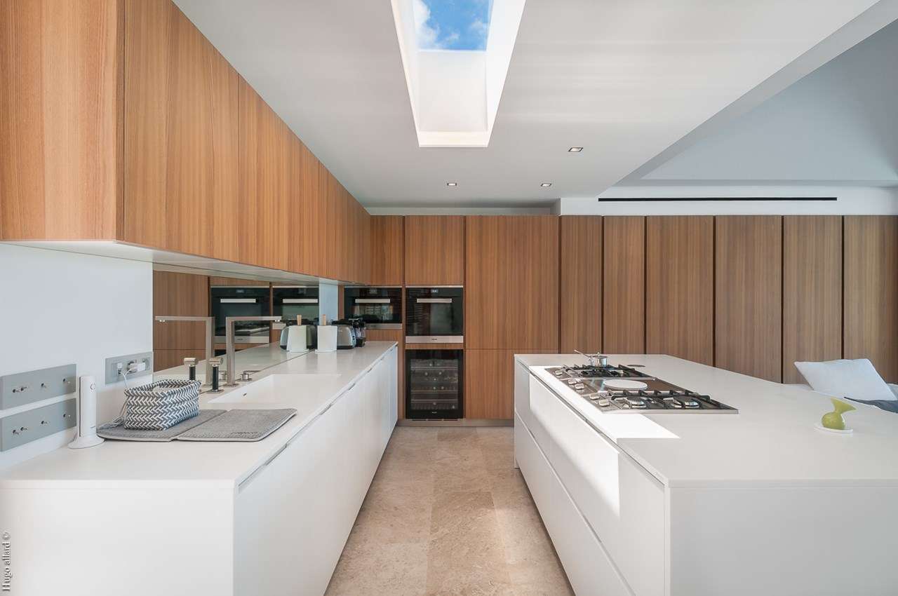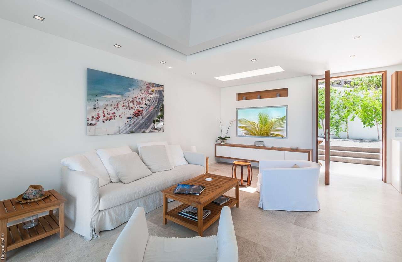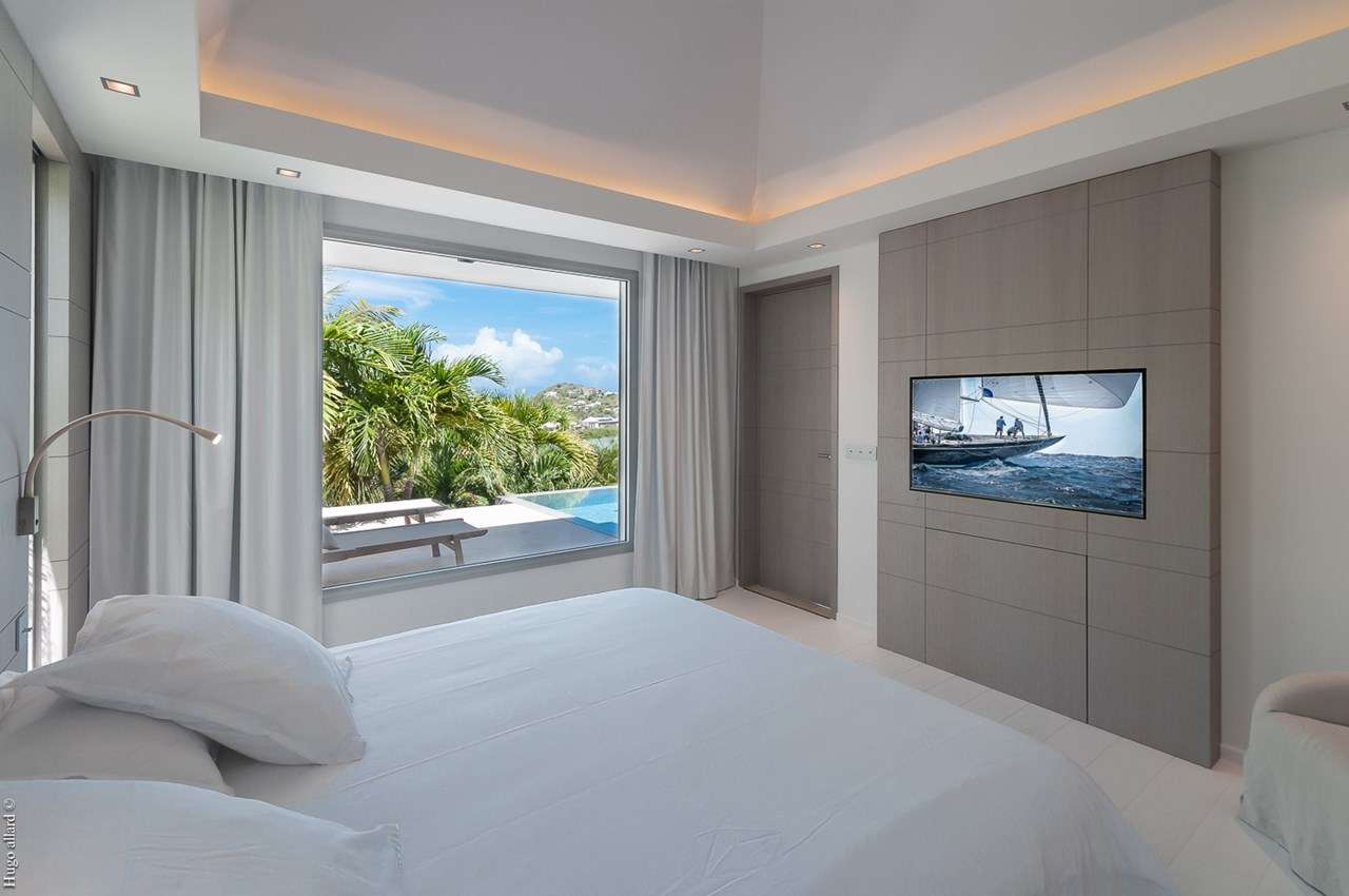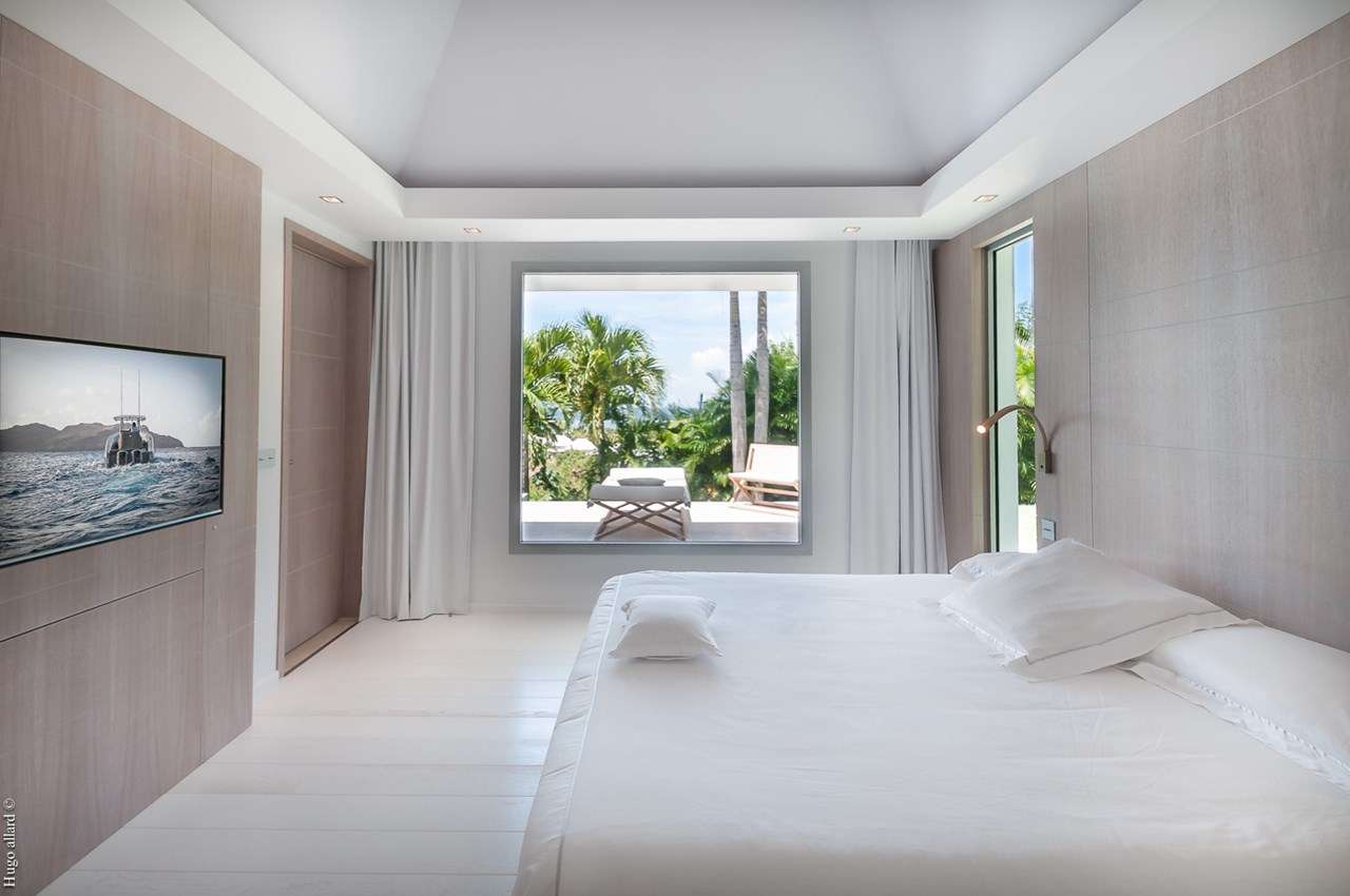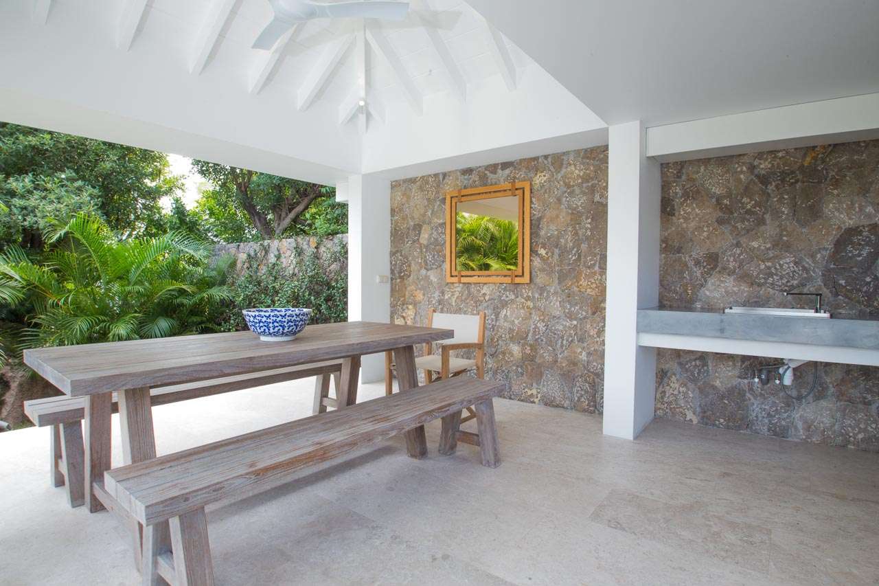 Welcome to Villa Palm (villa code: WV CBA), a contemporary 2-bedroom villa in Grand Cul de Sac, St Barts. Private, quiet, and secluded, this laid-back property is just a short distance from the hotels and restaurants on Grand cul de Sac beach. The interiors of Villa Palm are modern and chic, with a minimalist style encouraging you to unwind. The white walls are contrasted with rustic wooden accents, creating a dreamy, island vibe. A clean design features stylish vaulted ceilings, skylights, and warm, recessed lighting above. Nestled in the hills above the bay, Villa Palm is both secluded and within a short distance of shops, restaurants, and Grand Cul de Sac Beach. Tucked away at the end of a little road, Villa Palm enjoys partial ocean views framed by stone walls and lush, tropical foliage. At the center of Palm Villa is the open-plan great room, home to the modern living room and kitchen. The entire wall at the far end opens to the outdoor terrace, letting in the salty ocean breeze. Greys, whites, and dappled natural sunlight all enhance the striking and modern design. Scattered around the room are several soft white sofas, offering plenty of space to sink in and relax. Whether you’re enjoying a morning coffee or settling in with a good book for the day, this is the spot. A large wall-mounted TV also lets you host cozy movie nights inside. Sharing the space with the living room is Villa Palm’s gourmet kitchen. Cabinetry clad in tropical wood will inspire you to experiment with local flavors and ingredients while cooking. Our concierge can organize grocery pre-stocking or delivery, catered meals, or arrange private chef service for a special occasion. The large center island with bar-style seating is a nice spot for a morning espresso or a casual lunch. More formal meals are best hosted at the outdoor dining table, underneath a gazebo outside in the fresh air. The 2 bedrooms at Villa Palm are on either side of the living room, ensuring quiet and privacy for both. Each bedroom has a European king-size bed, a dressing room, and an ensuite bathroom with a shower and a partial ocean view. The bedrooms also both have direct access to the outdoor terrace, letting you wake up and start your day with a quick dip in the pool. The minimalist rooms are bathed in creamy neutral colors and natural light, continuing with a luxurious and relaxing vibe. Stepping outside onto the terrace makes it feel as if you’re staying in a private retreat. Shrouded with swaying palms and tropical foliage, the only sounds you’ll hear are the breeze rustling through the trees and the soft sounds of the waves in the distance. Loungers and chairs are scattered across the terrace, offering plenty of space to relax in the glorious weather. The inviting pool has an infinity edge, stretching out towards the trees below. Beyond, you can glimpse the curving bay of Grand Cul de Sac and the shimmering Caribbean sea. For those travelers craving a day on the sand, the beach at Grand Cul de Sac is a 5-minute walk. Lining the water are several restaurants and hotels, and water sports rentals are available as well. The beaches at Petit Cul de Sac and Lorient are both around a 7-minute drive. During the Thanksgiving and December holidays, the villa rents at full occupancy rates regardless of how many bedrooms are used.Please fill out the form to begin your inquiry and we will connect you with a seasoned villa rental specialist.