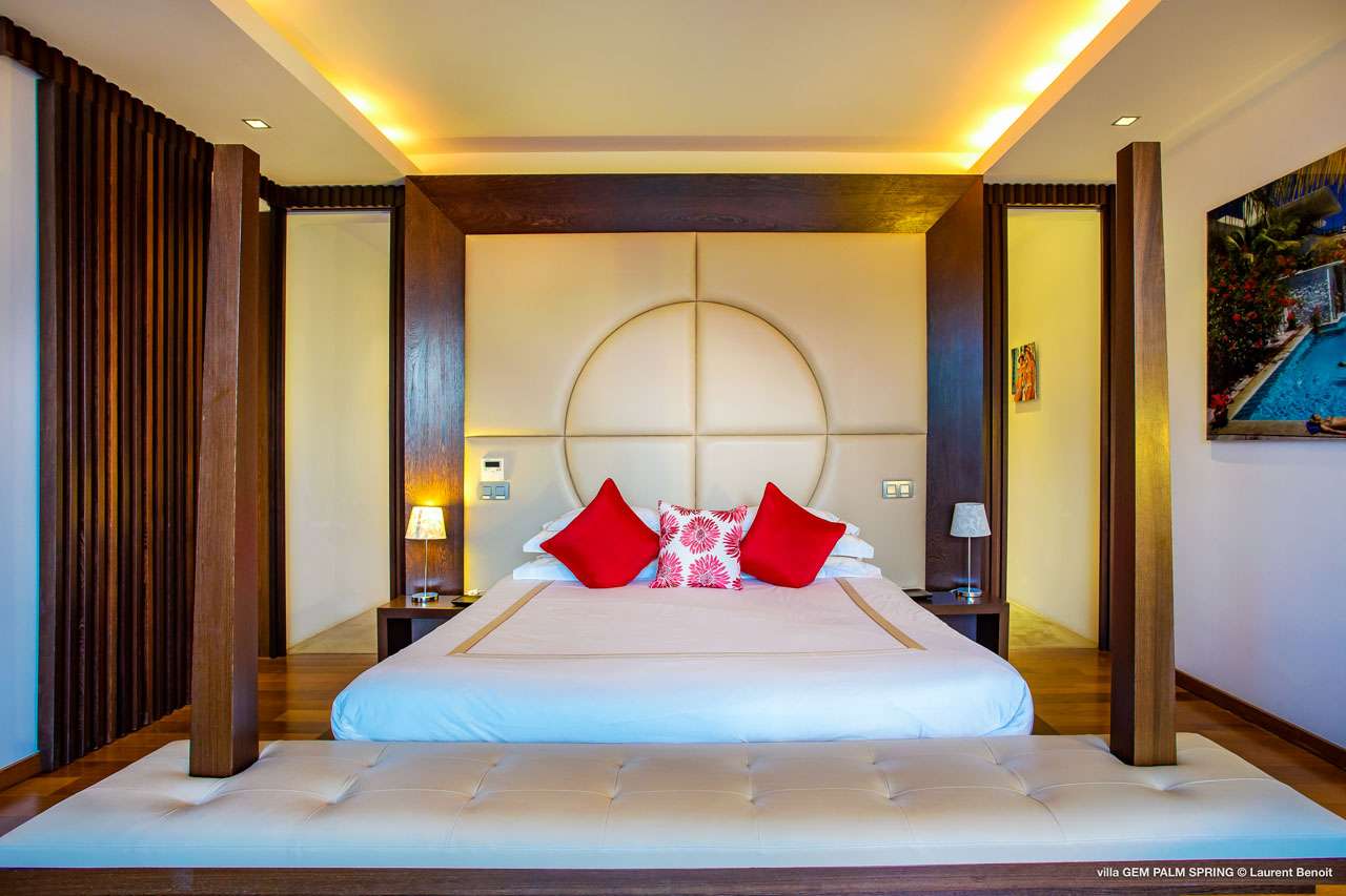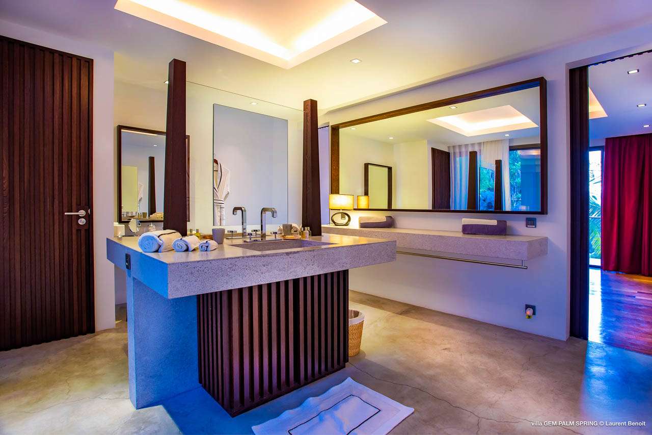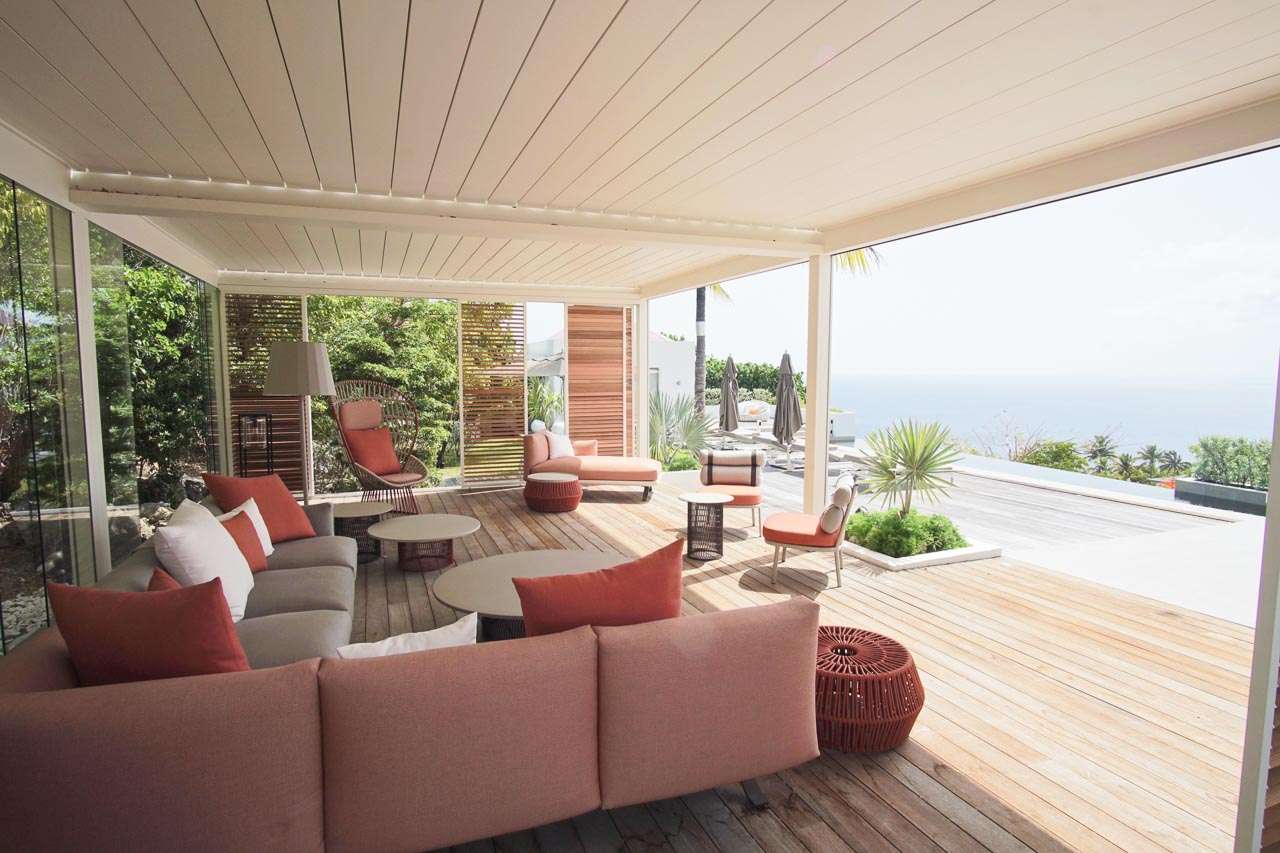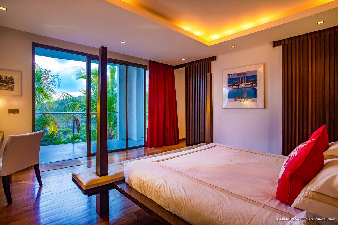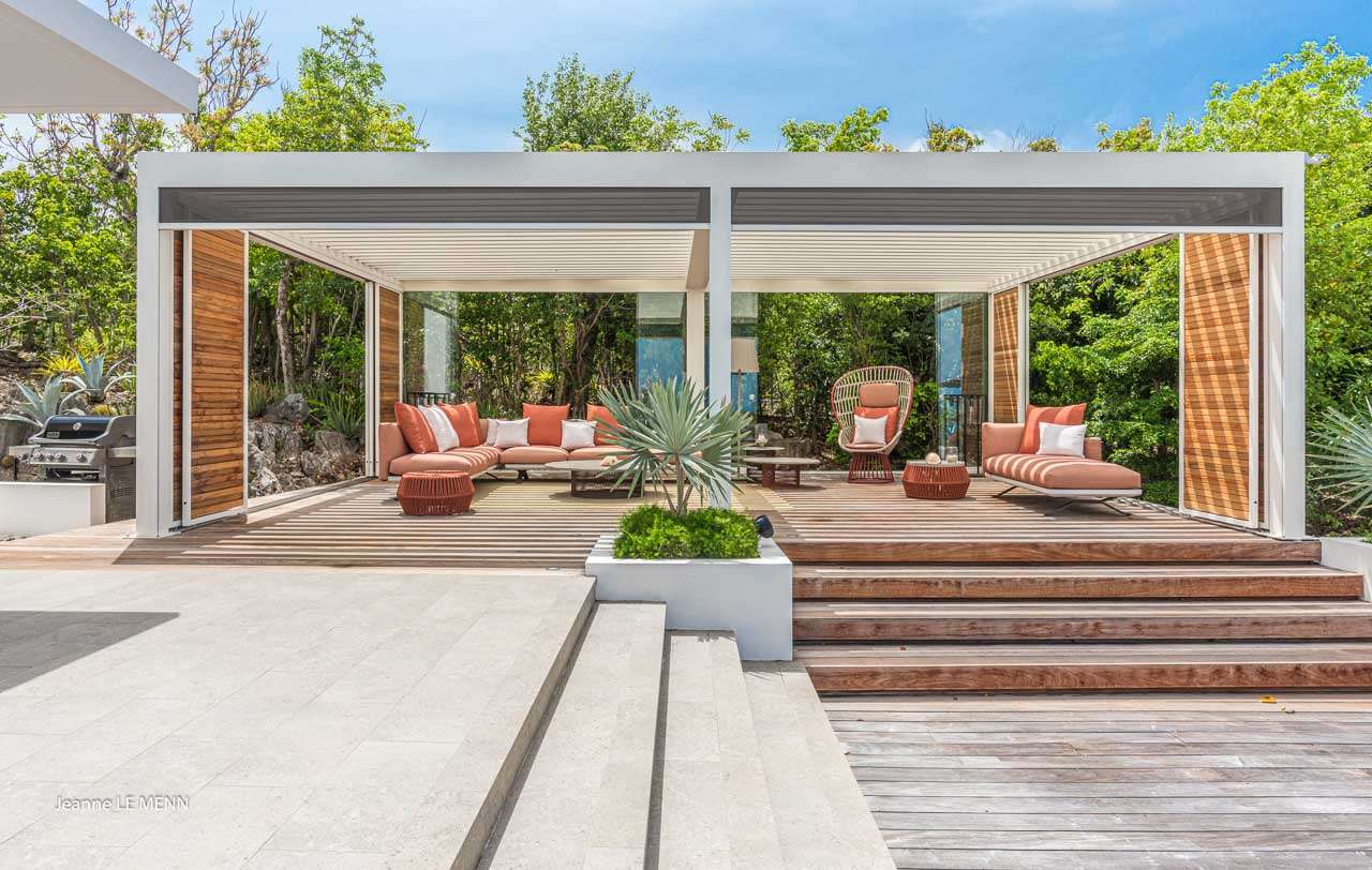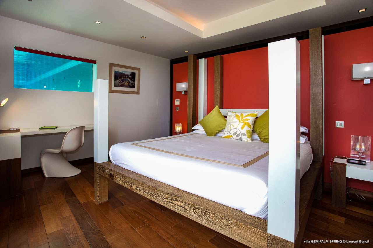 Welcome to Villa Palm Springs (villa code: WV GEM), a luxurious 5-bedroom villa in Gouverneur, St. Barts. This property offers outstanding sunset views and ocean breezes. Inspired by the design of Southern California homes in the '60s’, Villa Palm Springs is elegant, stylish, and contemporary. Blurring the line between inside and out, staying here lets you immerse yourself in the beauty of St. Barts. Chic décor, luxurious furnishings, and eye-catching photography add the finishing touches to this sophisticated vacation home. Nestled in the hills above Gouverneur, the location is hard to beat. Gouverneur Beach is just a short drive away, as are the beaches at Saline and St. Jean. Shops, restaurants, and bars are available in Gustavia, under 10 minutes away by car. Spread across a series of pavilions and bungalows, the living spaces at Palm Springs Villa are sublime. The main house features a living room and kitchen, with ingenious floor-to-ceiling windows opening to the view. The relaxing living room features a pair of sofas and a luxurious ottoman, ideal for unwinding. Sinking in here with a coffee, a good book, or a movie on the flat-screen TV is a great way to spend your day. From this cozy vantage point, the ocean views are incredible. Next to the living room is Villa Palm Springs’s gourmet kitchen. Equipped with the latest appliances, it can handle any culinary challenge thrown its way. Our concierge can organize grocery pre-stocking or delivery, catered meals, or arrange private chef service for a special occasion The dining table is on the covered terrace next to the living room, although thanks to the unique design you’ll feel as if you’re still in the main pavilion. There’s seating for up to 10 guests, making it a fabulous setting for gourmet meals in the cool evening air. There are 5 bedrooms at Palm Spring Villa, spread over the two levels to ensure the utmost privacy for each guest. Stylish prints from photographer Slim Aarons give each room a vintage feel, while TVs provide entertainment. In the main house is a 600-sq. ft. master suite, complete with an ensuite bathroom, his and her dressing areas, and a pebble-stoned rain shower. Two other bedrooms are below the master bedroom, each with an ensuite bathroom. A separate bungalow beyond the pool is home to the final two bedrooms, each spacious and quiet. Both rooms feature an ensuite and a private terrace, with vistas over the hills towards the shimmering Caribbean. The outdoor living spaces at Villa Palm Springs are sublime. There’s space to relax in the sun or shade, enjoying the glorious Caribbean weather on lounges or sunbeds. Next to the main house is the outdoor living area in a stylish pavilion. A glass wall at its back reveals a tropical garden, while in front are the stunning views of the Caribbean. It’s a luxurious spot to relax, whether you settle in with a good book or enjoy a sunset cocktail soiree. Steps away, the heated infinity pool is another tempting spot to kick back and enjoy the good life. For days at the beach, Gouverneur is a few minutes away by car, while within 10 minutes you could be lazing on the beach at St. Jean or Saline. During the Thanksgiving and December holidays, the villa rents at full occupancy rates regardless of how many bedrooms are used.Please fill out the form to begin your inquiry and we will connect you with a seasoned villa rental specialist.
