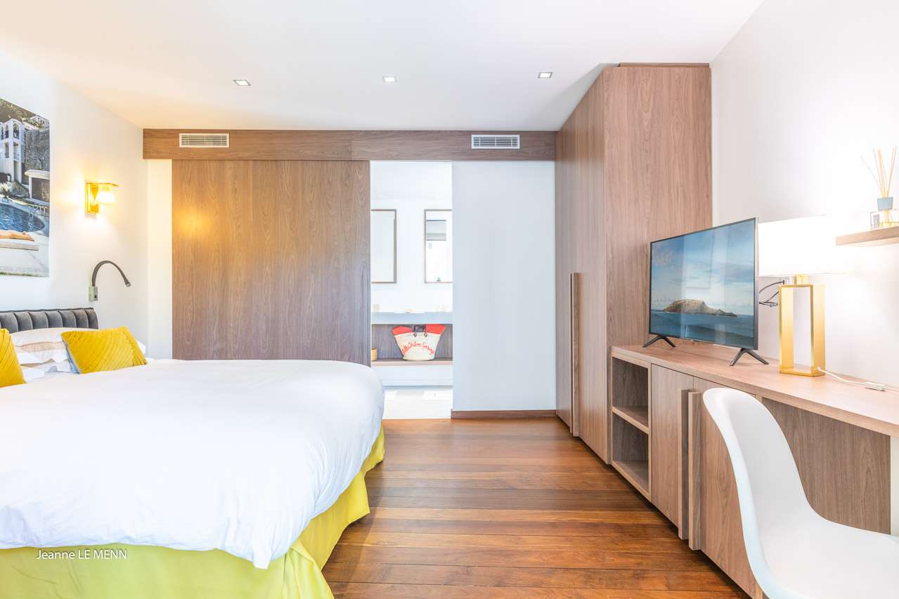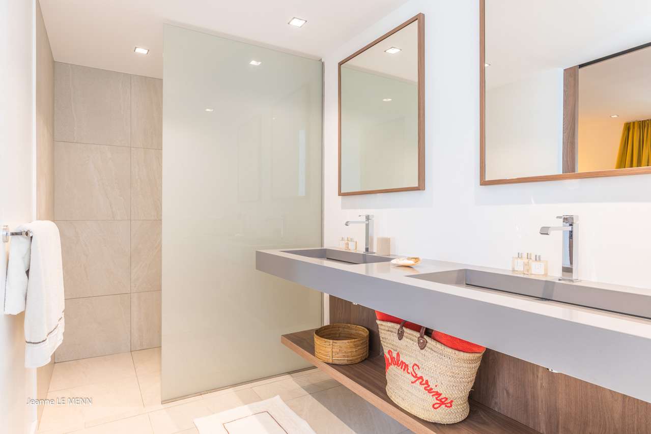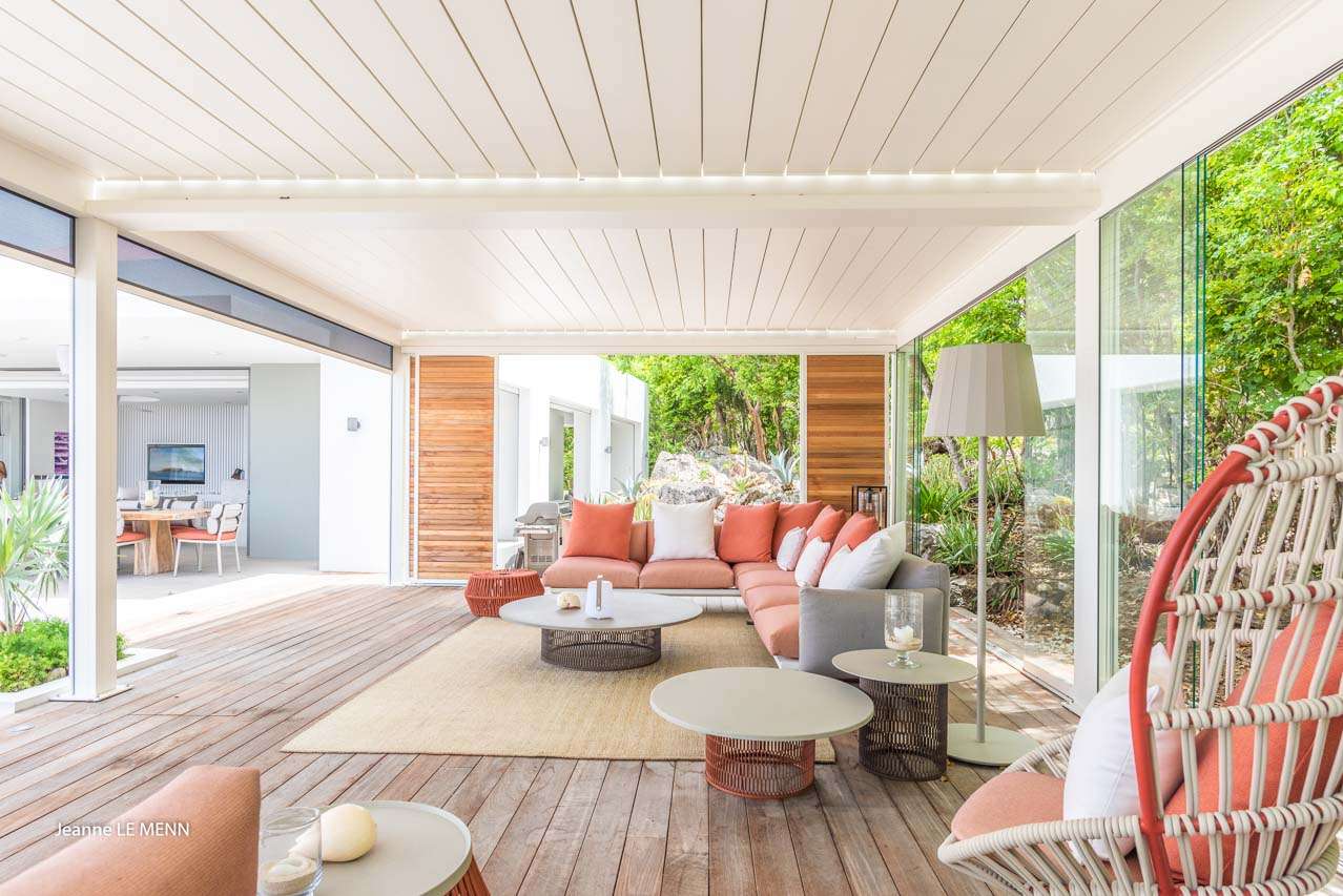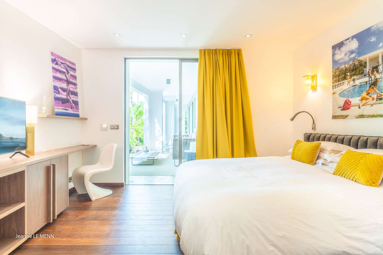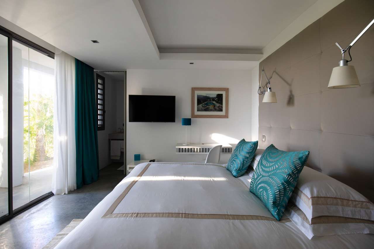 Welcome to Villa Palm Springs (villa code: WV GEM), a luxurious 5-bedroom villa in Gouverneur, St. Barts. This property offers outstanding sunset views and ocean breezes. Inspired by the design of Southern California homes in the '60s’, Villa Palm Springs is elegant, stylish, and contemporary. Blurring the line between inside and out, staying here lets you immerse yourself in the beauty of St. Barts. Chic décor, luxurious furnishings, and eye-catching photography add the finishing touches to this sophisticated vacation home. Nestled in the hills above Gouverneur, the location is hard to beat. Gouverneur Beach is just a short drive away, as are the beaches at Saline and St. Jean. Shops, restaurants, and bars are available in Gustavia, under 10 minutes away by car. Spread across a series of pavilions and bungalows, the living spaces at Palm Springs Villa are sublime. The main house features a living room and kitchen, with ingenious floor-to-ceiling windows opening to the view. The relaxing living room features a pair of sofas and a luxurious ottoman, ideal for unwinding. Sinking in here with a coffee, a good book, or a movie on the flat-screen TV is a great way to spend your day. From this cozy vantage point, the ocean views are incredible. Next to the living room is Villa Palm Springs’s gourmet kitchen. Equipped with the latest appliances, it can handle any culinary challenge thrown its way. Our concierge can organize grocery pre-stocking or delivery, catered meals, or arrange private chef service for a special occasion The dining table is on the covered terrace next to the living room, although thanks to the unique design you’ll feel as if you’re still in the main pavilion. There’s seating for up to 10 guests, making it a fabulous setting for gourmet meals in the cool evening air. There are 5 bedrooms at Palm Spring Villa, spread over the two levels to ensure the utmost privacy for each guest. Stylish prints from photographer Slim Aarons give each room a vintage feel, while TVs provide entertainment. In the main house is a 600-sq. ft. master suite, complete with an ensuite bathroom, his and her dressing areas, and a pebble-stoned rain shower. Two other bedrooms are below the master bedroom, each with an ensuite bathroom. A separate bungalow beyond the pool is home to the final two bedrooms, each spacious and quiet. Both rooms feature an ensuite and a private terrace, with vistas over the hills towards the shimmering Caribbean. The outdoor living spaces at Villa Palm Springs are sublime. There’s space to relax in the sun or shade, enjoying the glorious Caribbean weather on lounges or sunbeds. Next to the main house is the outdoor living area in a stylish pavilion. A glass wall at its back reveals a tropical garden, while in front are the stunning views of the Caribbean. It’s a luxurious spot to relax, whether you settle in with a good book or enjoy a sunset cocktail soiree. Steps away, the heated infinity pool is another tempting spot to kick back and enjoy the good life. For days at the beach, Gouverneur is a few minutes away by car, while within 10 minutes you could be lazing on the beach at St. Jean or Saline. During the Thanksgiving and December holidays, the villa rents at full occupancy rates regardless of how many bedrooms are used.Please fill out the form to begin your inquiry and we will connect you with a seasoned villa rental specialist.