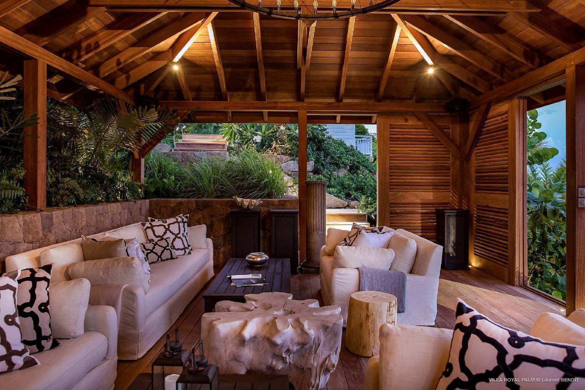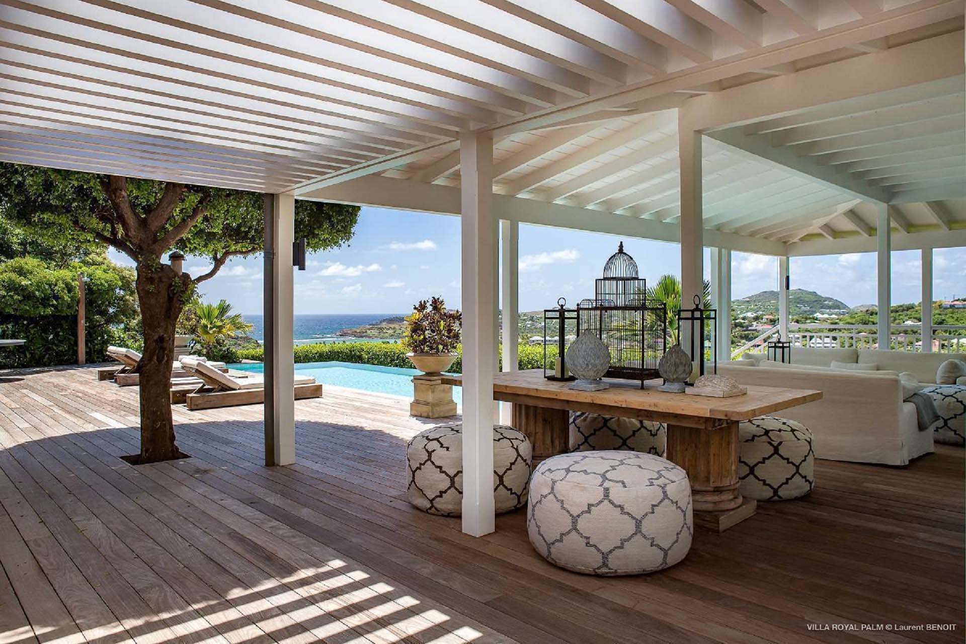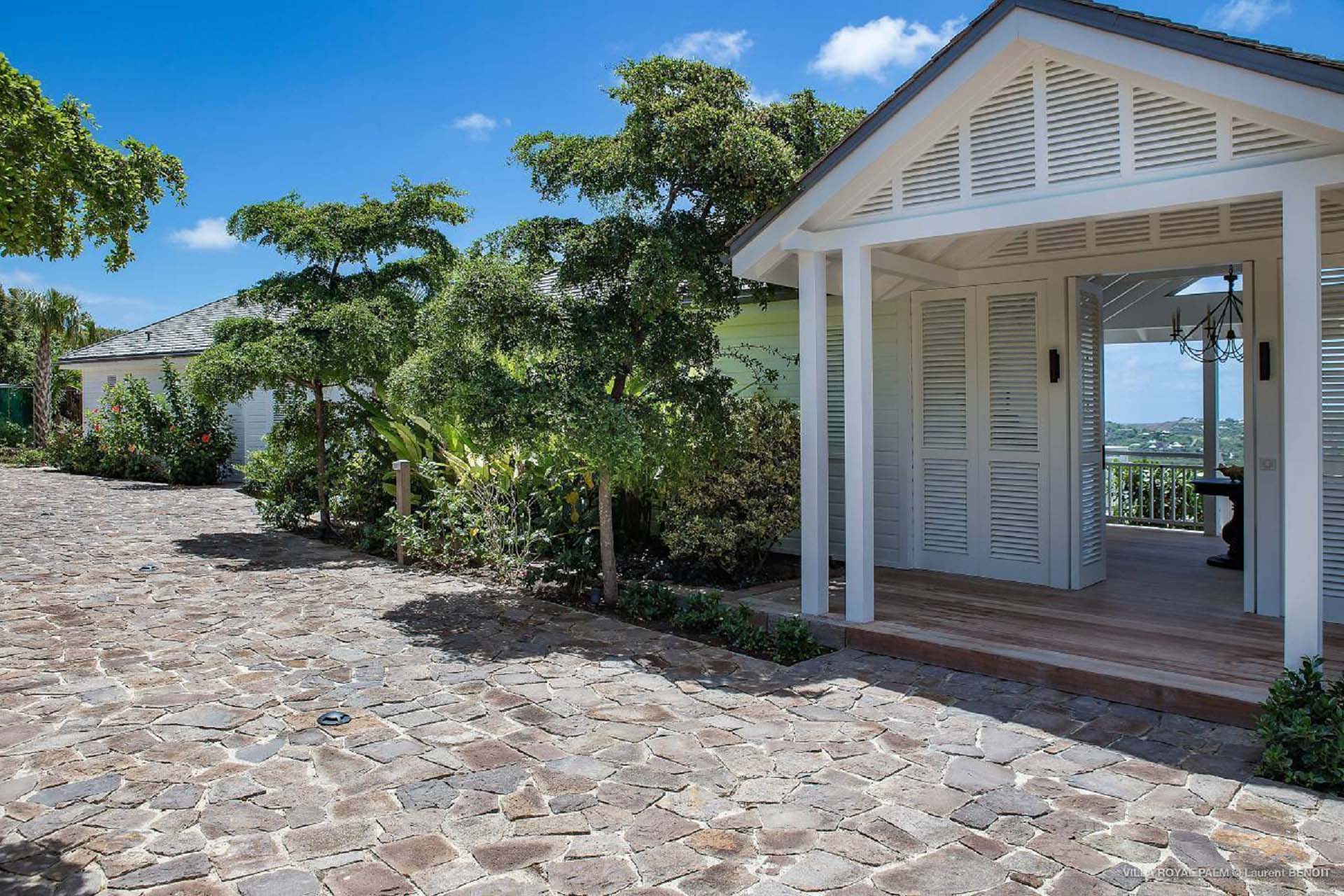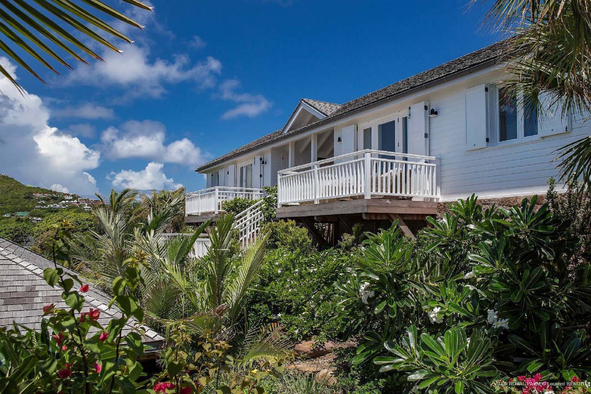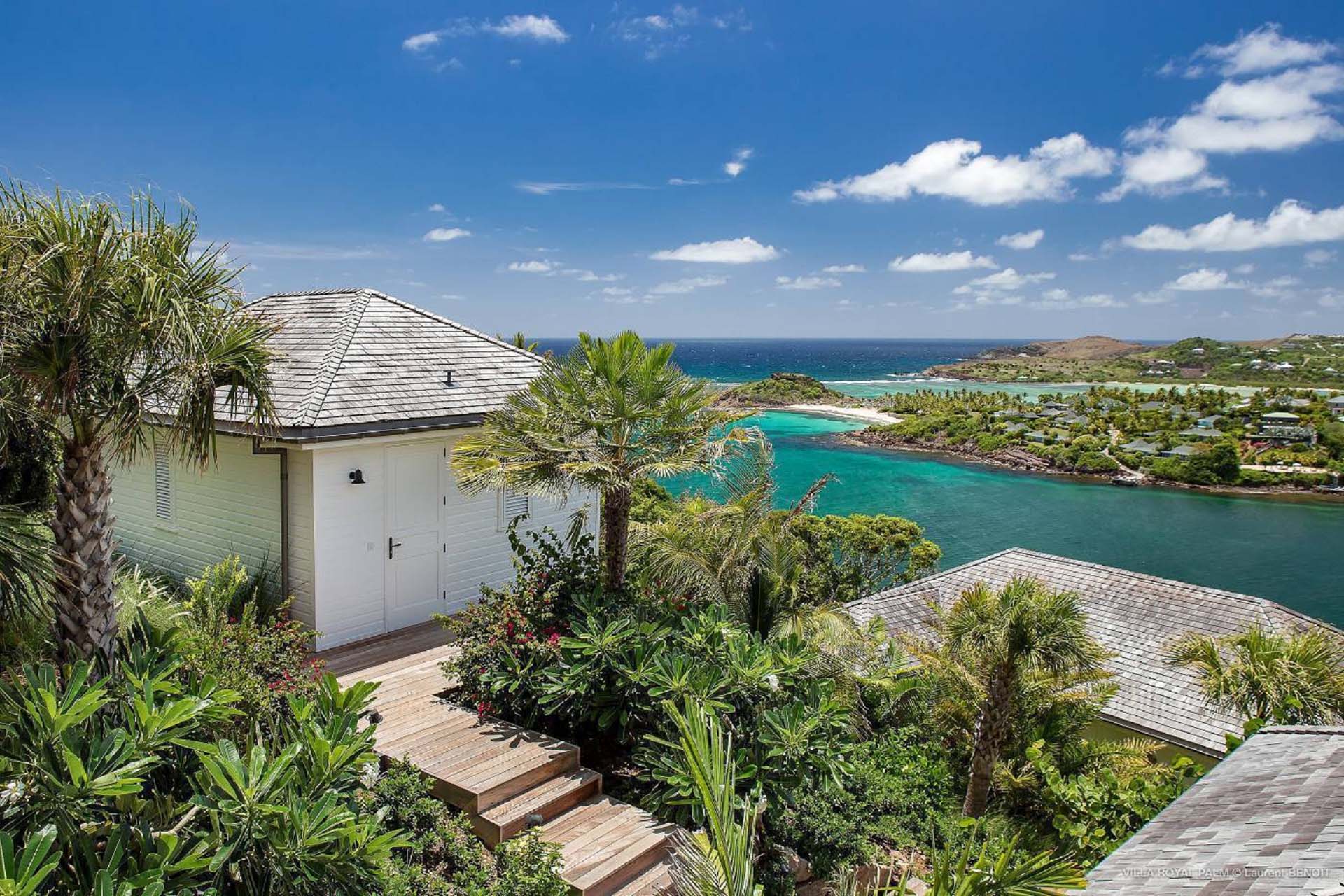 Castaway to Villa Palmier Royal Seven (villa code: WV PRT), a luxurious 7-bedroom villa in Mont Jean, St. Barts. This stunning island home enjoys gorgeous views over Marigot Bay and the shimmering Caribbean beyond, all within walking distance of the beach. Villa Palmier Royal Seven is a contemporary, West Indies villa that’s spread across several pavilions. The design embraces the beautiful natural setting of St. Barts, bringing it in as a part of the interior design. Wooden walkways lead between each pavilion, inside which you’ll find meticulous attention to detail, elegant furnishings, and charming, old-world décor. Nestled near the shoreline of Marigot Bay, Villa Palmier Royal Seven is a few minutes' walk from the pristine stretch of sand. Shops are a 10-minute drive away, and the enchanting town of St. Jean is 15 minutes by car. Blending indoors with the outdoors, the shared living spaces at Villa Palmier Royal Seven are all about embracing the island lifestyle. There are plenty of areas to relax in sun and shade, inside and out, with all paths eventually leading to a central main pavilion. It’s here where you’ll find the large and plush living room, comfortably furnished and featuring a décor that effortlessly shows off an island character. It’s a blissful spot to kick back and chill out, with a beautiful chesterfield sofa and vaulted ceilings above capturing the dappled island light. At the other end, a second luxurious sofa faces an entertainment cabinet, ideal for watching movies or nestling in with a good book. Following a walkway from the living room brings you to a second pavilion, this one featuring a generous, gourmet kitchen. Spacious and well-equipped, you’ll have no trouble preparing delicious meals during your stay. A breakfast corner is a picturesque setting for a fresh coffee in the morning, which leads to an outdoor grilling kitchen that complements the alfresco dining area in the garden. A small indoor table also sits between the living room and the TV area in the main pavilion. The 7 bedrooms at Villa Palmier Royal Seven are spread across 5 separate pavilions. On the lower level are two master suites, each in its own pavilion. Both come with a plush king-sized bed, dressing room, and an ensuite with a bathroom, shower, and outdoor bathtub and shower out the back. Identical private terraces out the front provide an intimate setting to relax and gaze out at the views over Marigot Bay. Two smaller guest rooms are inside a separate pavilion at street level. Each room comes with a king-sized bed, dressing room, ensuite bathroom, and a cozy balcony. Another guest room is situated in a separate bungalow halfway between the lower suites and the upper master bedrooms. This room comes with a king-sized bed, dressing, ensuite bathroom with shower, as well as a private balcony with seating. The final pavilion is home to two children’s rooms. One has a bunk bed, while the other has a king-sized bed. Both come with an ensuite. Wandering the walkways between pavilions, the lush garden is incredible, with alluring views down towards the striking turquoise waters of the bay. In the center of the property, a large deck wraps around a heated infinity pool, with ample space for long days in sun and shade. An outdoor living area is inside a large, open pavilion, a decadent spot to gather with friends and family over a cool drink. Within a few minutes, you could also be lounging on the powder-soft sands of Marigot Bay. The tranquil waters offer idyllic swimming and snorkeling, a tempting spot to spend an entire day. During the high season only, guests at the villa enjoy the services of a private chef and waitress (food not included), along with two maids providing daily service and turndown, seven days a week. A mini fridge is stocked with still and sparkling water for your convenience. For on-the-water adventures, guests have access to two paddle boards, two kayaks, and four life jackets. Please note: a security deposit of $10,000 is required.Please fill out the form to begin your inquiry and we will connect you with a seasoned villa rental specialist.