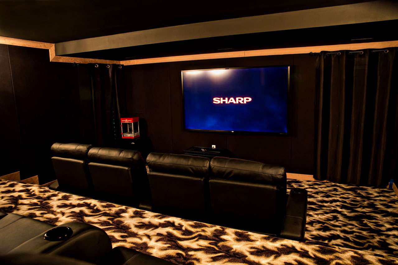 If you’re after a night of indoor entertainment, the villa also has a separate home theatre room. With a large flat-screen TV and theater seating for up to 10 guests, it’s fantastic for movie nights with family and friends. There’s even a bar fridge and popcorn machine.
