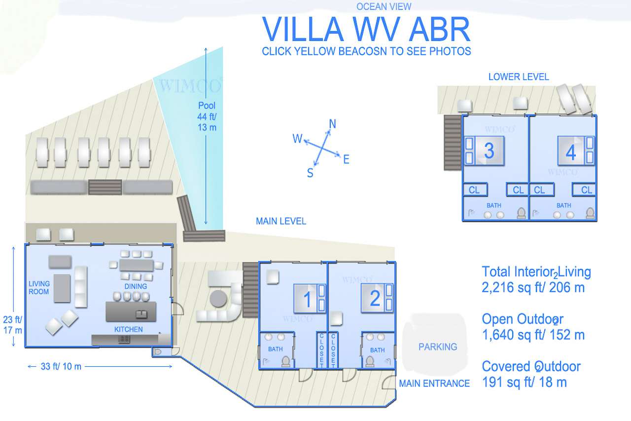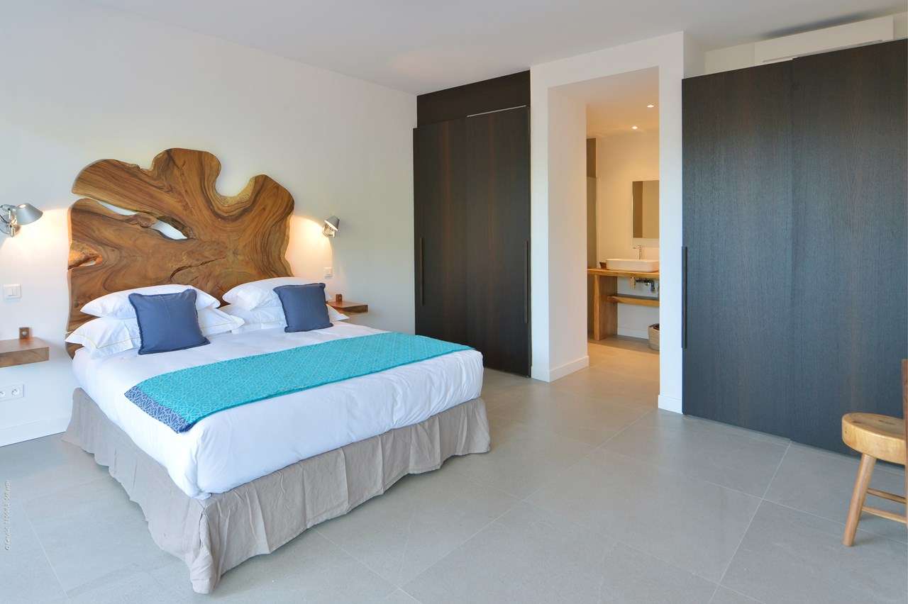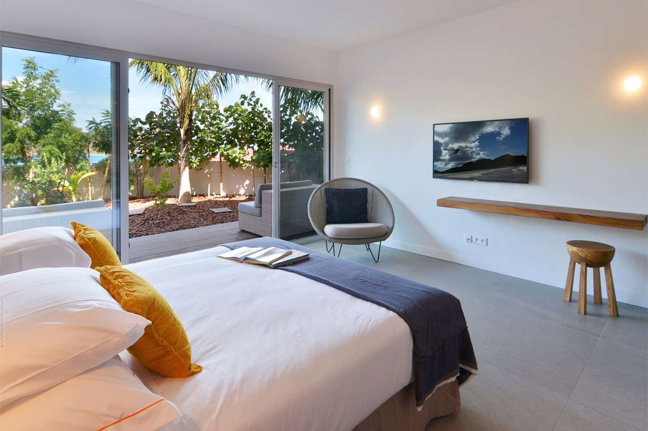 Embrace the island life at Villa Pelican (villa code: WV ABR), a stunning 4-bedroom villa overlooking the expansive bay of Anse des Lezards. Surrounded by the incredible natural beauty and intoxicating island calm, this villa’s location alone makes it one of the most coveted spots in St. Barts. The interiors at Villa Pelican do well to enhance all that natural beauty, yet also have plenty of character of their own. Designed in the breezy Caribbean style, it’s all about barefoot luxury here: accents of wood contrasted by creamy hues of white, high-end furnishings, and stylish décor that creates a feeling of elegance and grace. Set amid an area of unspoiled beauty that’s increasingly rare in the Caribbean, Villa Pelican’s location is incredible. You can watch pelicans flying around the bay, and within 5 minutes, be lounging on a nearby beach. And the capital Gustavia is only a 10-minute drive. Villa Pelican enjoys a great layout, with several units connected by the covered terrace outside. The first unit is home to the 4 bedrooms spread over two levels, while the second unit is where the main living space is. Here, the open-plan design combines the living room, dining area, and kitchen. Fantastic views, beautiful furnishings, and sliding doors that open to the natural breezes make this space a wonderful place to gather with family and friends. For some indoor entertainment, there’s a large TV in front of the plush sofas in the living room. The open, fully equipped kitchen at Villa Pelican has a breakfast island, great for morning coffee and fresh pastries. High-end appliances make cooking here a breeze; our concierge is also happy to organize anything from an in-villa wine tasting to a private chef for an evening. In front of the kitchen is the main dining table, benefiting from the terrific views framed by the large glass doors. Meals here will be a highlight of your stay, whether it’s a home-cooked dinner or a gourmet Caribbean feast prepared by a chef. The 4 bedrooms at Villa Pelican are located in the other building, all of them nearly identical. The effortless style and elegance of the rooms make them ideal oases for relaxing at the end of each day. All four bedrooms feature a European king-sized bed and luxurious ensuite bathrooms with showers. The main level rooms are easily accessed on the entrance side, as well as the terrace on the other. The rooms on the lower floor are situated in front of a garden with a small ocean view and a private terrace with seating. Spreading out in front of the main room is the large two-level deck, the star attraction of Villa Pelican. There’s ample seating, letting you kick back and gaze out at the sparkling water, passing the afternoons by sunbathing and enjoying tropical cocktails. There are four large daybeds, plush spots to nestle in with a good book, and loungers for sunbathing. The pool is tucked into a corner next to the main deck, the infinity-edge stretching towards the ocean below. It’s a dreamy setting for a swim, but just as nice are the nearby beaches within a 5-minute drive. During the Thanksgiving and December holidays, the villa rents at full occupancy rates regardless of how many bedrooms are used.Please fill out the form to begin your inquiry and we will connect you with a seasoned villa rental specialist.