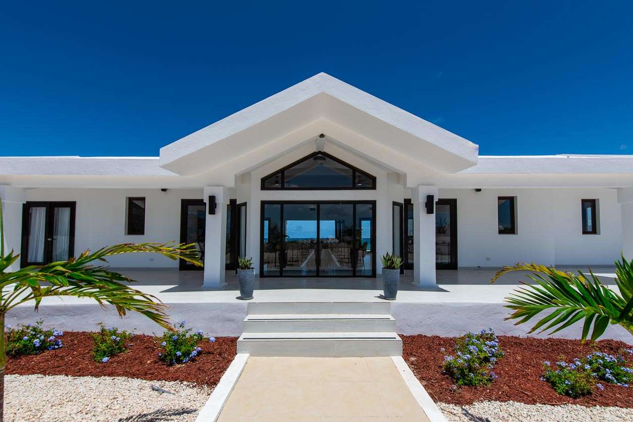 Inside, a luxurious open-plan design creates a relaxing flow for your stay. Floor-to-ceiling doors and windows infuse the entire home with the cooling sea breeze, while the natural light illuminates the white interiors with vibrant azure accents. Minimalist and chic, the interiors echo the ocean outside.
