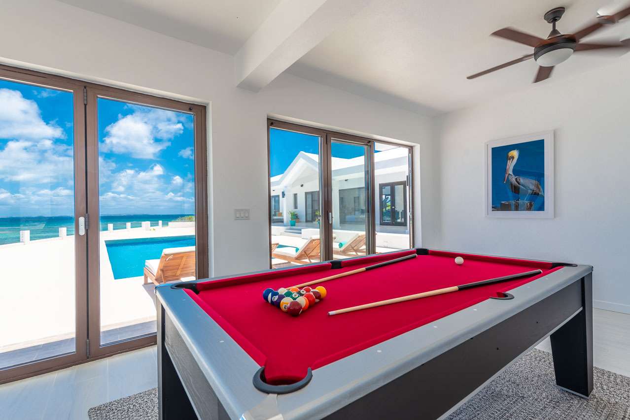 In the poolside guesthouse is another common area, with a large pool table on the ground floor. It’s a great spot to gather together for some indoor entertainment, enjoying some cocktails and a game or two.