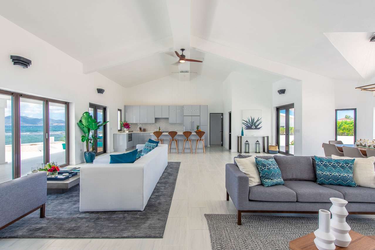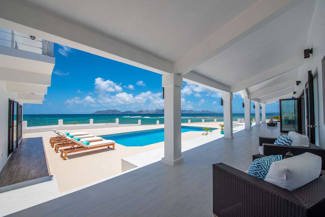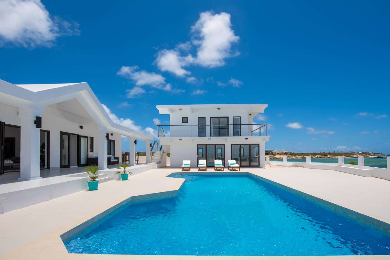 Castaway to Villa Pelican Bay (villa code: AXA PBA), a stunning 4-bedroom waterfront villa in Pelican Bay, Anguilla, offering views over the sparkling Caribbean and the nearby island of St. Martin.