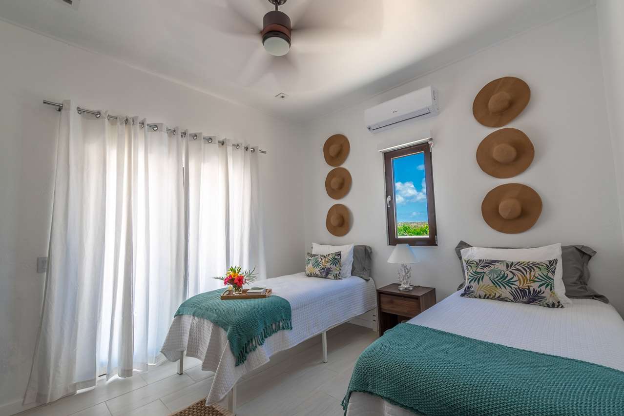 There are four bedrooms at Villa Pelican Bay, three with king-sized beds, and another with a pair of twins ideal for kids. In the main house there are three rooms, two of them opening onto the pool terrace with sea views.