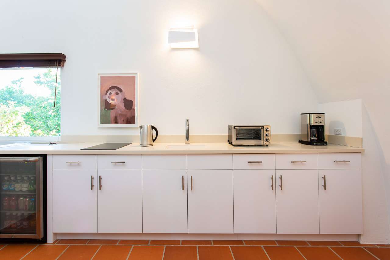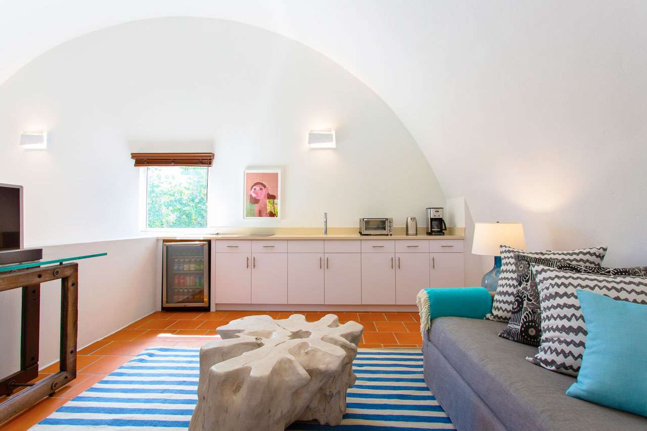 The upstairs loft offers an additional sleeping space, as well as a lounge area and kitchenette.