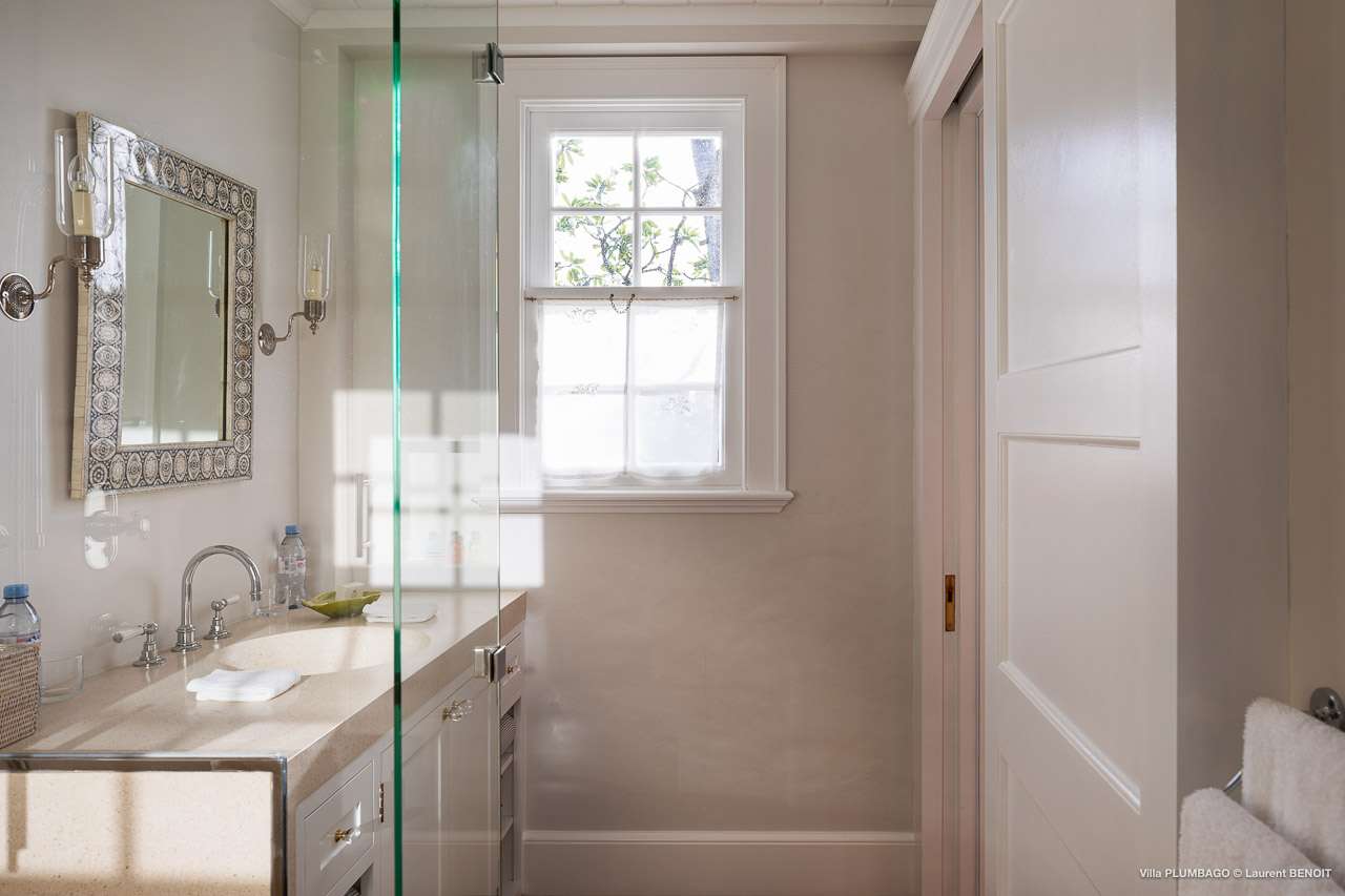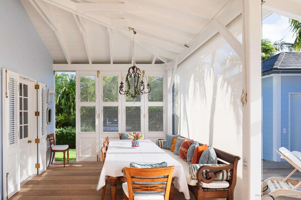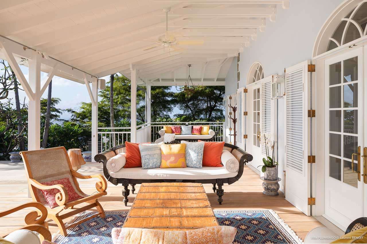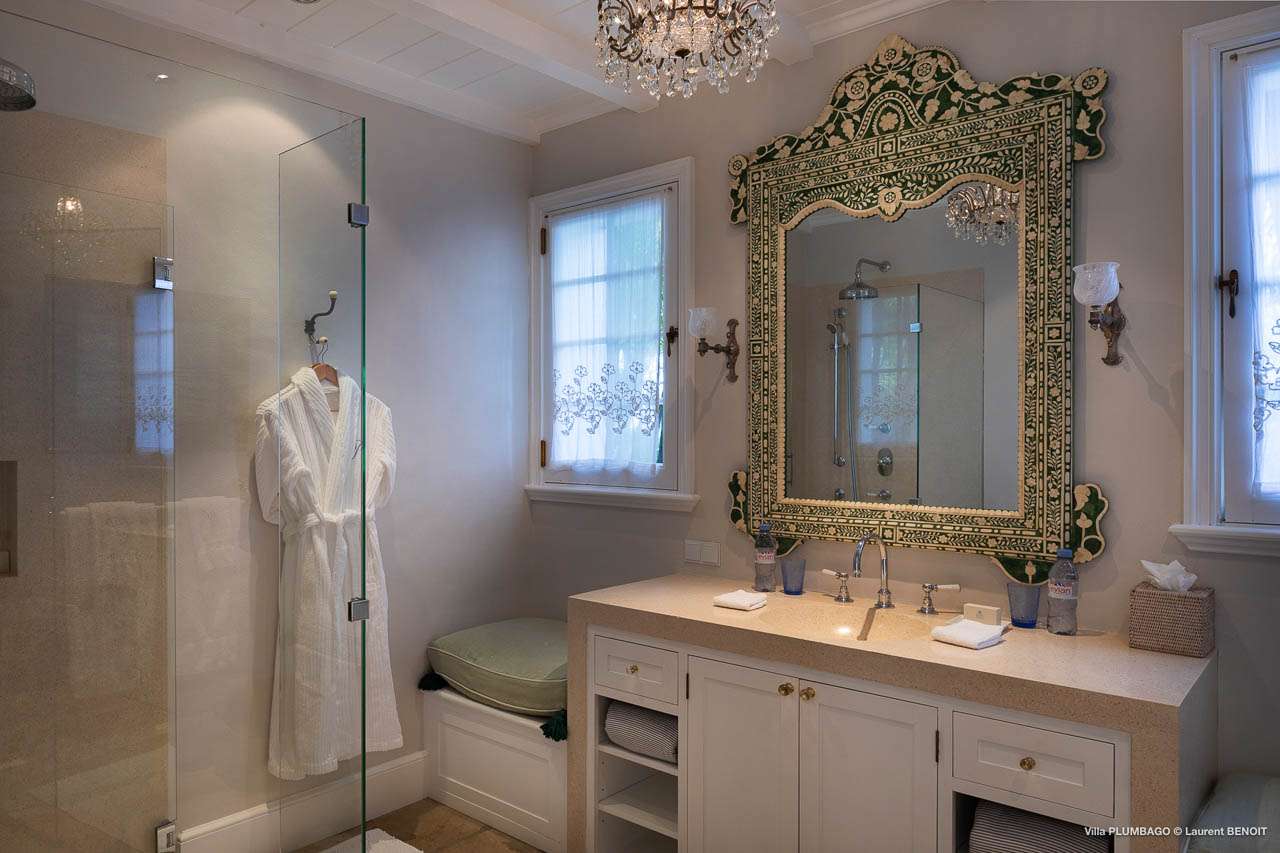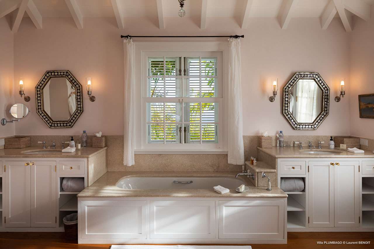 Welcome to Villa Plumbago (villa code: WV PBO), a stunning 4-bedroom villa at the far end of Colombier, St. Barts. Private, luxurious, and meticulously designed, this elegant villa enjoys superb Caribbean views. Villa Plumbago stands out as a fabulous example of a classic West-Indies villa that can easily compete with modern-day architecture. Designed to take in the breezes and views at every turn, the timeless and stylish interiors feature splendid attention to detail, with high-end furnishings providing every comfort for your stay. Sitting on top of a hill facing both east and west, Villa Plumbago enjoys terrific views both east and west. With all-day sun, this private villa is a wonderful place to lounge around, gazing out at the sparkling Caribbean across the lush, landscaped gardens. Restaurants and shops in Gustavia are only around 10 minutes by car. Inside Villa Plumbago, all roads lead to the main room, which combines the living room and kitchen. The grand and elegant feeling of the home creates an enticing atmosphere, with unique details adding touches of character to each room. The central living room is the social heart of the house, with a pair of elegant sofas and armchairs for relaxing. There is a small office space in the back, which also serves as a second TV room. The kitchen at Villa Plumbago is a social space, designed for your group to spend time together while preparing a meal. The high-end appliances make cooking easy, while the breakfast bar with stools encourages breezy aperitifs while the food is being prepared. There is a large dining table outside the kitchen on the main terrace, with bench-style seating along one end. It’s a fantastic setting to come together over a meal, lingering with a glass of wine as the warm Caribbean evening descends over the island. There are 4 bedrooms at Villa Plumbago, quiet places to go for some privacy and downtime during your stay. Expect plush mattresses, crisp white linens, and TVs in every room. There are two bedrooms on the main level, both in a separate bungalow around the pool. The first master offers gorgeous ocean and sunset views, as well as a private garden and terrace. This bedroom has a four-poster king-sized bed, while the ensuite comes with a special outdoor shower. The first guest room is situated in a bungalow between the main house and the master bungalow. This room is slightly smaller and comes with another four-poster king and a luxury ensuite. The second master bedroom is situated directly below the first. It has a large, covered terrace and a beautiful garden out front. This room also has a separate sitting area that can be closed off and comes with a pull-out sleeper sofa, ideal for parents with children. The second guest room is situated next to the second master in a separate unit. This room has two twin beds that can be made up as a European-king bed. The outdoor spaces at Villa Plumbago are incredible, with plenty of spots to come together as a group or find a quiet corner. Ample seating around the pool and throughout the beautiful gardens invites you to sink in and relax, immersing yourself in the sensational island views. At the center of it all is the 60 ft long, heated infinity pool, an eye-catching spot for a cool dip – especially when the sunset is on. There are loungers here for sunbathing, and the nearby covered terrace of the main home features an outdoor living area for a post-swim drink. The main house keeps the wind away from the rear terrace, a sheltered spot to relax during the day. Yet another terrace overlooks Flamands Bay, providing incredible sunrise views.Please fill out the form to begin your inquiry and we will connect you with a seasoned villa rental specialist.