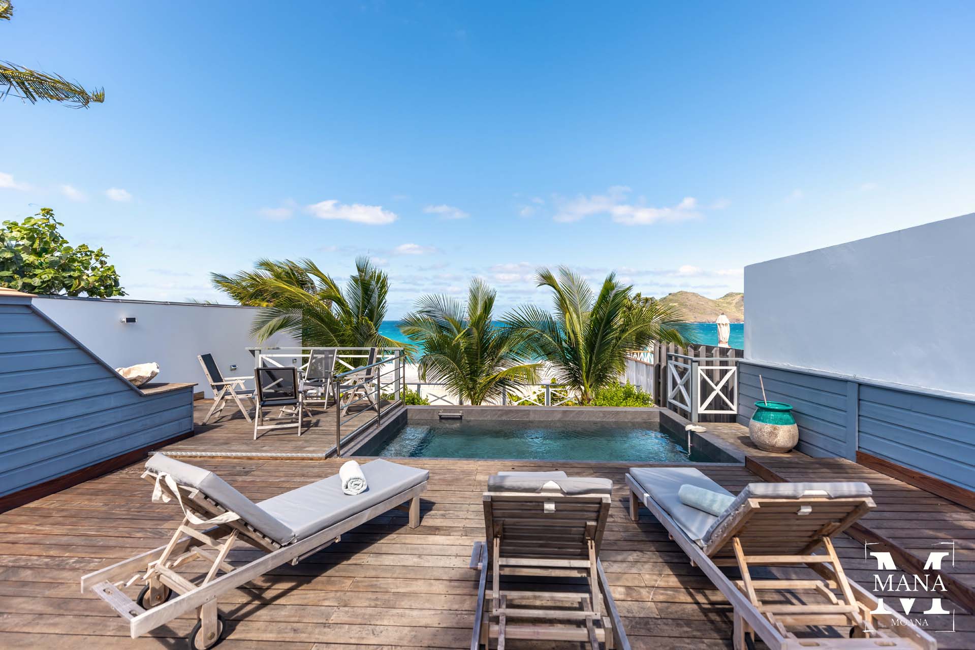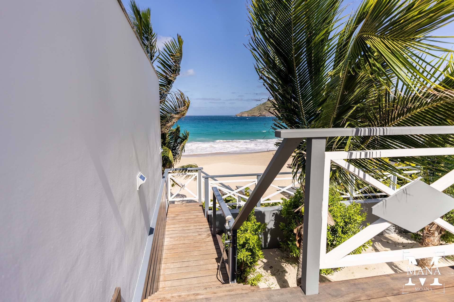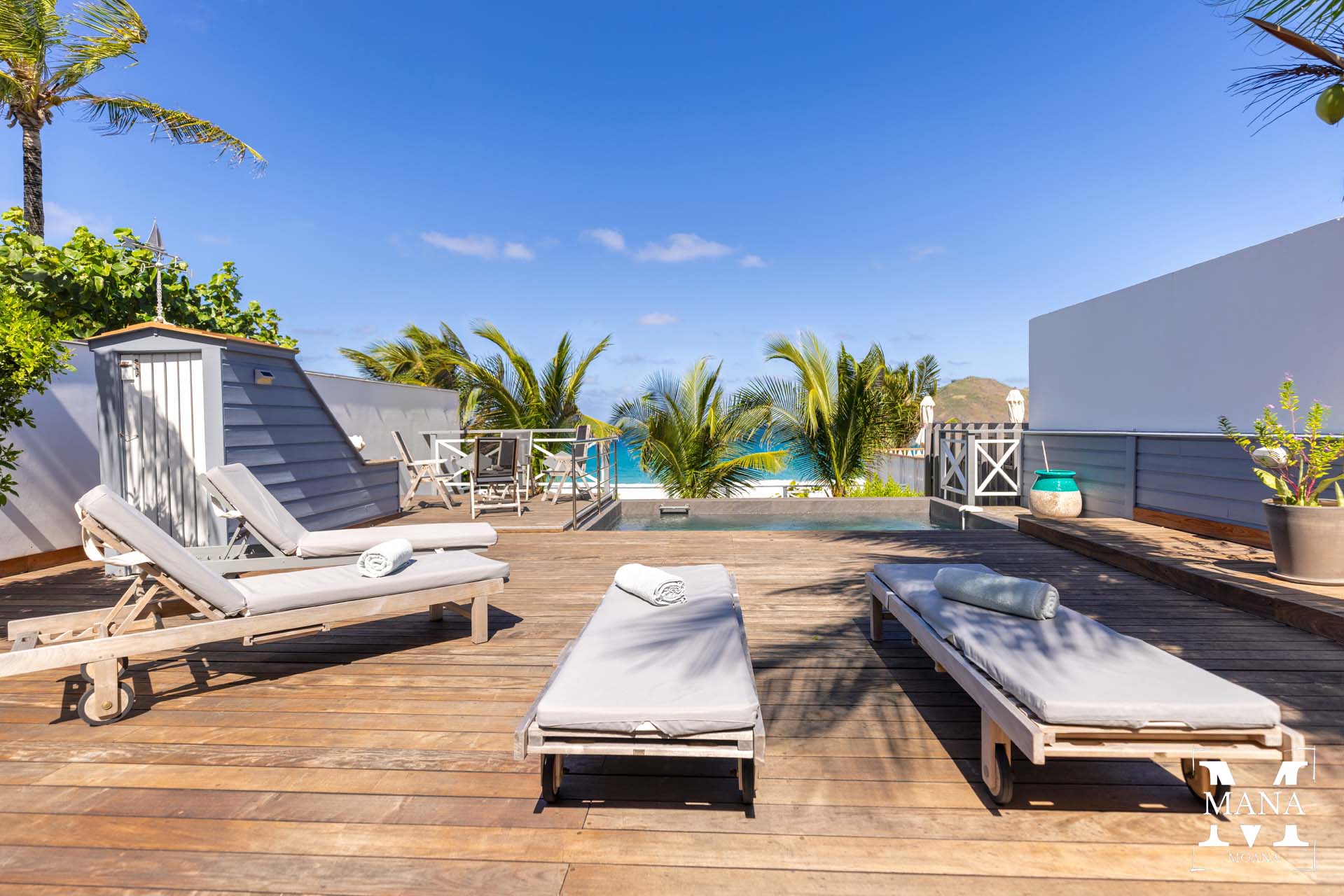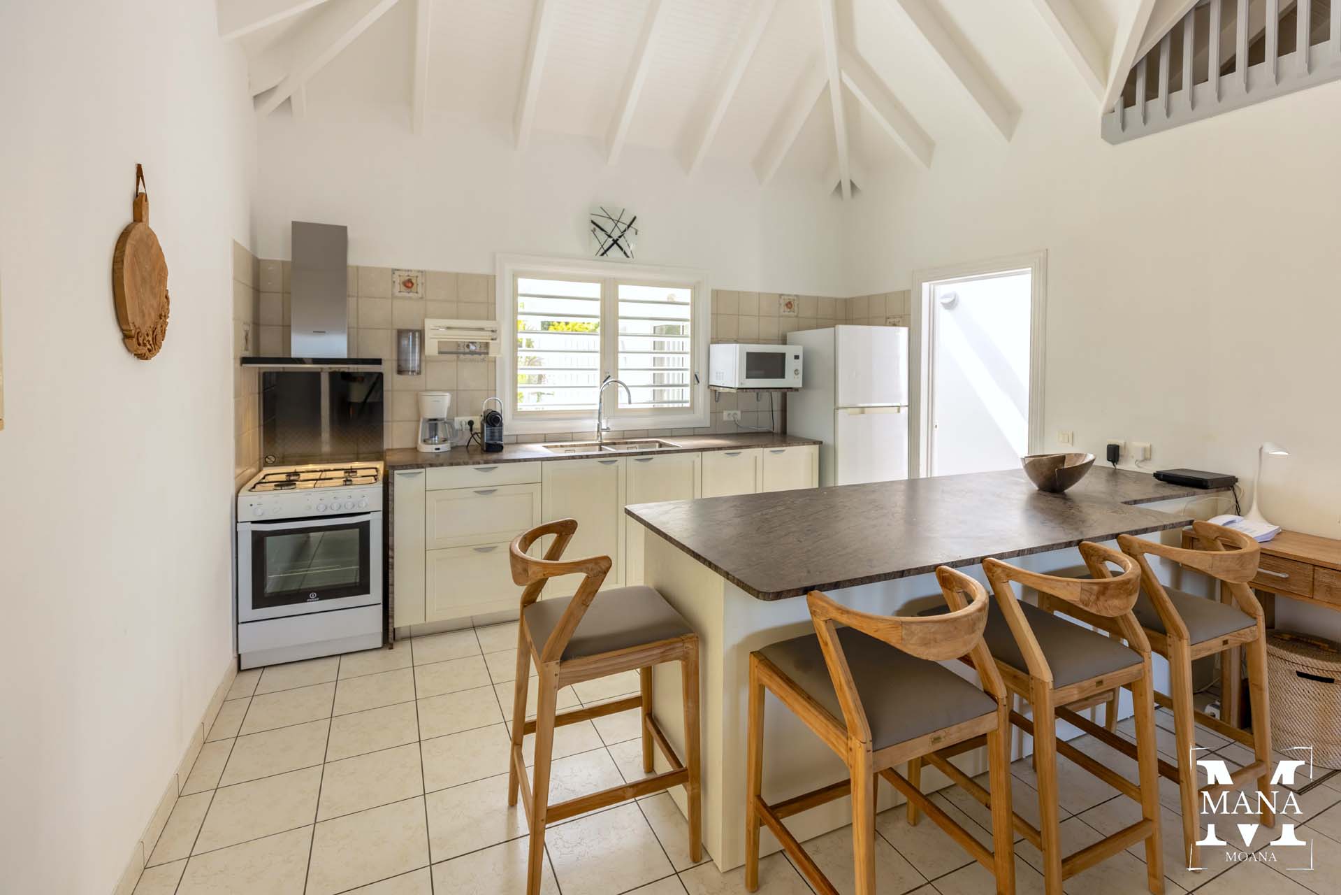Castaway to Villa Polaris (villa code: WV ALB), a gorgeous 2-bedroom villa on the shores of Flamands Beach, St. Barts. This cozy and warm beach cottage pairs all the comforts of home with a spectacular beachfront location, within minutes of restaurants and shops. The effortless design inside Villa Polaris is ideal for relaxing. The flowing open plan welcomes in plenty of natural light, while vaulted ceilings create an airy atmosphere. Sandy-colored walls, rattan textures, and wooden accents all help achieve the feeling of barefoot elegance; a laid-back beach house with all the luxuries and style of St. Barts. Best of all though is the location of Villa Polaris. On the sandy shores of Flamands Beach, within seconds you could be wading into the crystalline Caribbean waters. Shops are 5 minutes away, and the capital Gustavia is a 10-minute drive. At the heart of Villa Polaris is the cozy, open-plan great room. This air-conditioned space combines the living area and kitchen into one, both of which flow onto the outdoor terrace through the large sliding glass doors. The living room is spacious and comfortable, an ideal spot for relaxing with a morning coffee or settling in for a post-beach snooze. A flat-screen TV also provides some entertainment, while elegant wooden furnishings give the space a rustic touch. The kitchen at Villa Polaris is well equipped with everything you need for preparing meals. It’s also big enough for your whole group to get involved, with a breakfast bar and stools for an evening aperitif while the foodie in your group whips up a gourmet meal. The dining table is outside the sliding doors on the covered terrace. Overlooking the pool towards the beach, it’s a picturesque setting to enjoy some great food during your stay. There’s even a gas grill for those days you’d prefer to entertain with an island-style cookout. The 2 bedrooms inside Villa Polaris continue with the theme of the home: quiet and comfortable, with a luxurious beach house atmosphere. The master suite enjoys a plush king-sized bed and opens to the outdoor terrace where you can lounge by the pool. The second bedroom has a European king-sized bed; both rooms come with air-conditioning and ensuite bathrooms. The beautiful outdoor terrace at Villa Polaris is a charming spot to spend a day lounging around. Palm trees sway in the gentle breeze, while the sounds of the nearby tide create a soothing Caribbean lullaby; this is a true paradise. There’s a private pool for a refreshing dip and loungers for sunbathing. Elevated via a staircase that leads to the beach and with lush ferns at the edge of the terrace, the entire space enjoys plenty of privacy as well. When the open ocean does call, it’s as easy as wandering down the stairs onto the soft, golden sands. The villa is also located adjacent to the refined hotel, Cheval Blanc, one of the most elegant in St. Barts with a fantastic restaurant. During the December holidays, the villa rents at full occupancy rates regardless of how many bedrooms are used.Please fill out the form to begin your inquiry and we will connect you with a seasoned villa rental specialist.