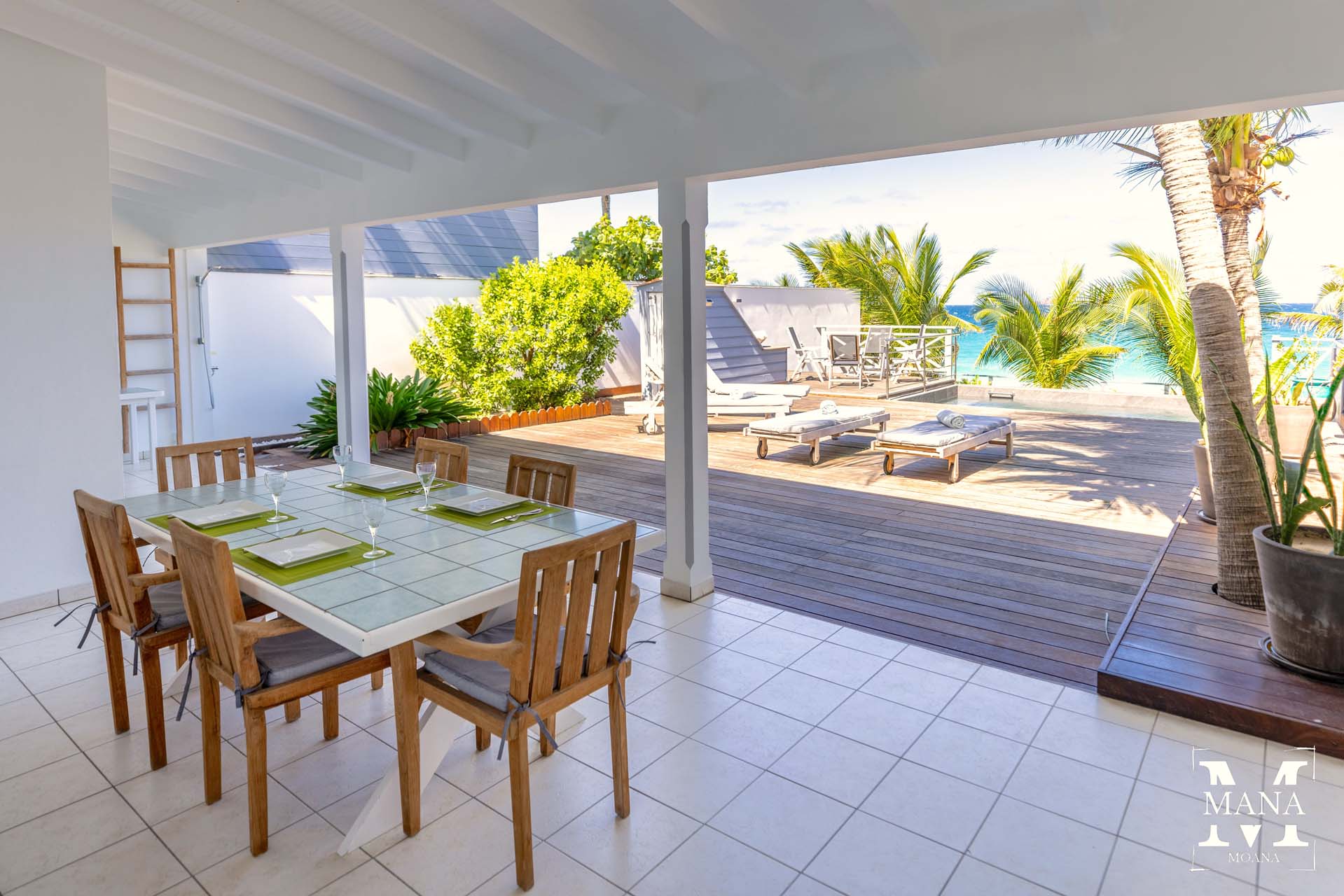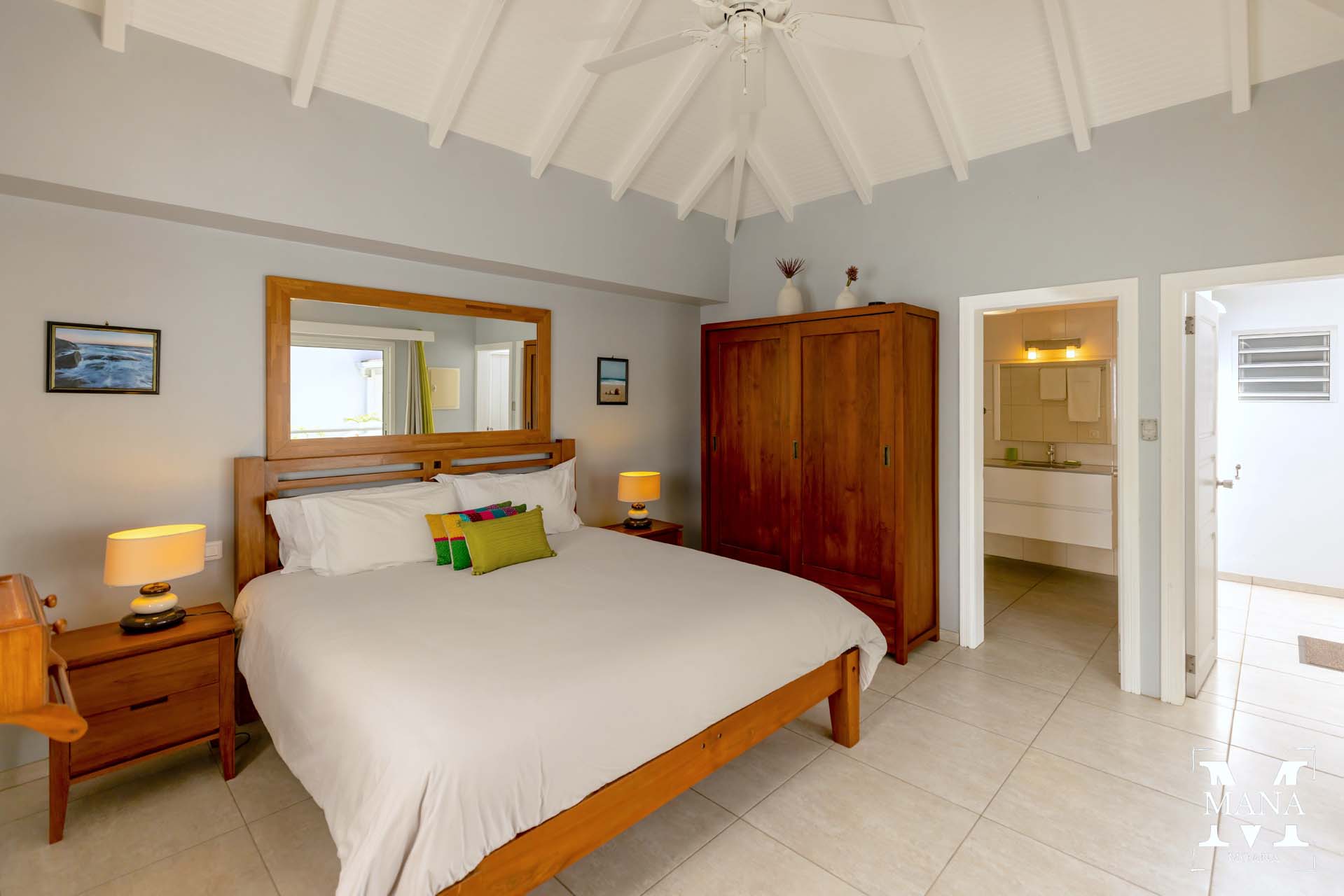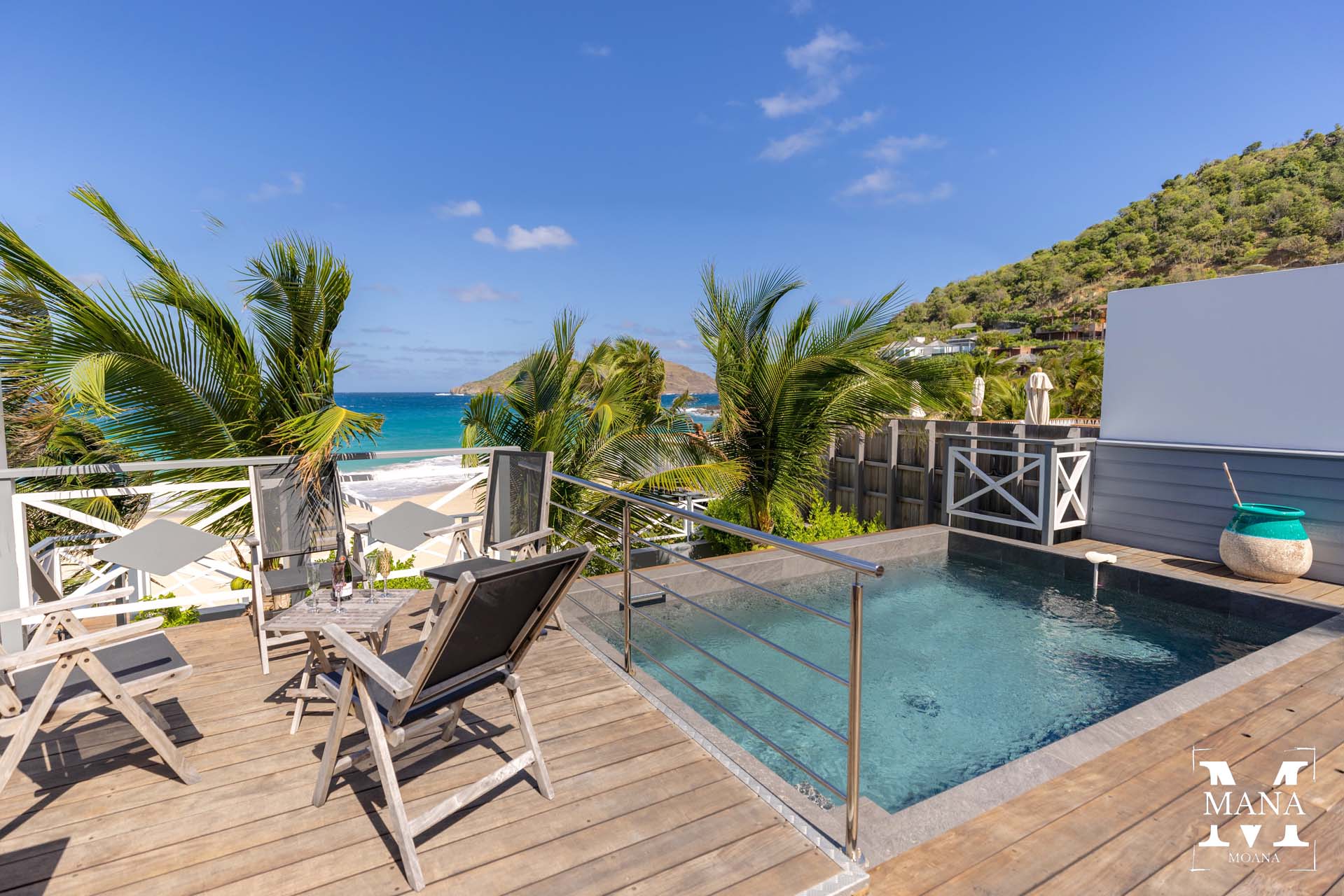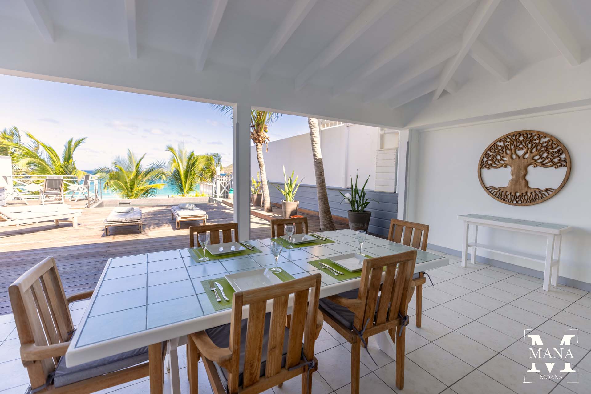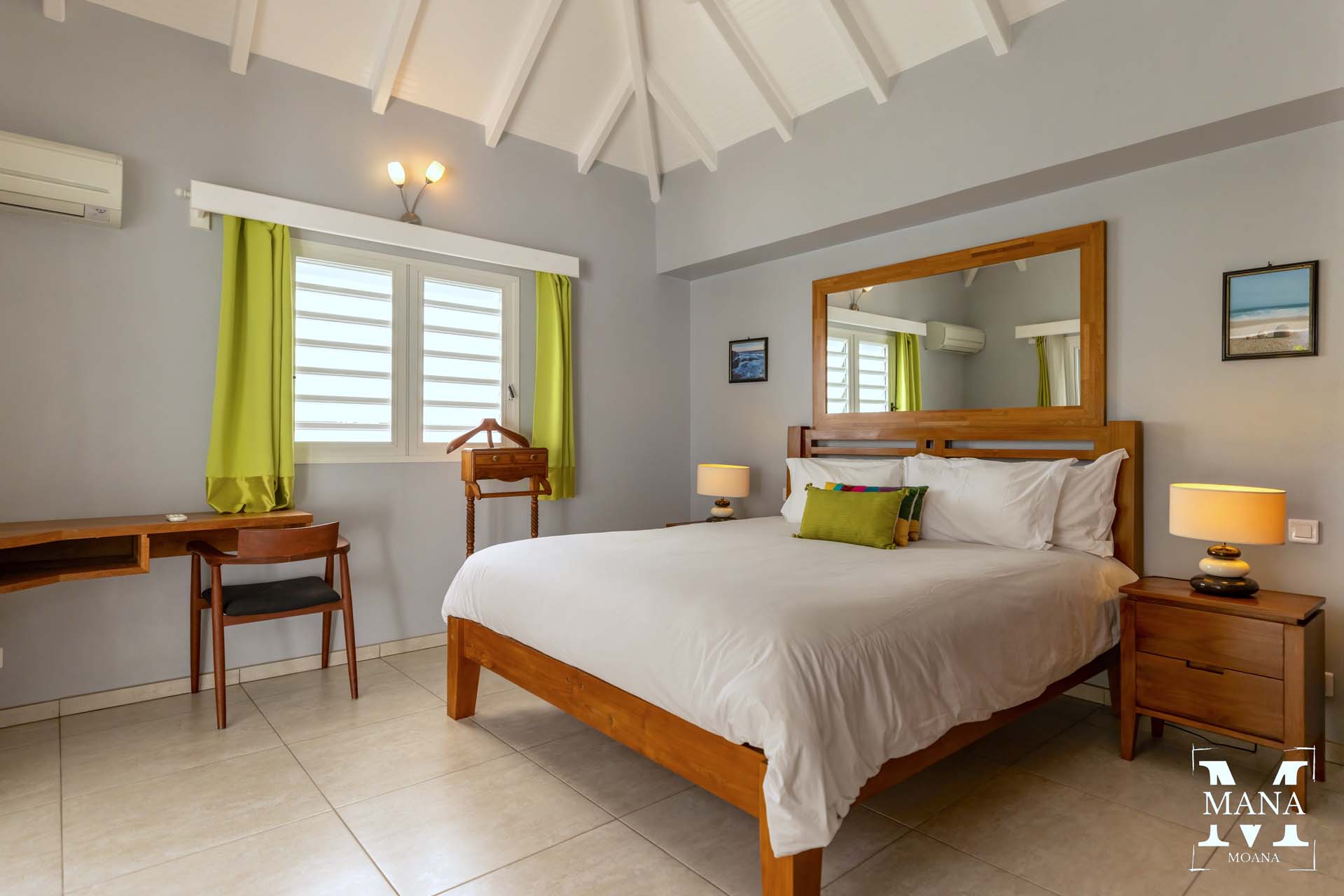 Castaway to Villa Polaris (villa code: WV ALB), a gorgeous 2-bedroom villa on the shores of Flamands Beach, St. Barts. This cozy and warm beach cottage pairs all the comforts of home with a spectacular beachfront location, within minutes of restaurants and shops. The effortless design inside Villa Polaris is ideal for relaxing. The flowing open plan welcomes in plenty of natural light, while vaulted ceilings create an airy atmosphere. Sandy-colored walls, rattan textures, and wooden accents all help achieve the feeling of barefoot elegance; a laid-back beach house with all the luxuries and style of St. Barts. Best of all though is the location of Villa Polaris. On the sandy shores of Flamands Beach, within seconds you could be wading into the crystalline Caribbean waters. Shops are 5 minutes away, and the capital Gustavia is a 10-minute drive. At the heart of Villa Polaris is the cozy, open-plan great room. This air-conditioned space combines the living area and kitchen into one, both of which flow onto the outdoor terrace through the large sliding glass doors. The living room is spacious and comfortable, an ideal spot for relaxing with a morning coffee or settling in for a post-beach snooze. A flat-screen TV also provides some entertainment, while elegant wooden furnishings give the space a rustic touch. The kitchen at Villa Polaris is well equipped with everything you need for preparing meals. It’s also big enough for your whole group to get involved, with a breakfast bar and stools for an evening aperitif while the foodie in your group whips up a gourmet meal. The dining table is outside the sliding doors on the covered terrace. Overlooking the pool towards the beach, it’s a picturesque setting to enjoy some great food during your stay. There’s even a gas grill for those days you’d prefer to entertain with an island-style cookout. The 2 bedrooms inside Villa Polaris continue with the theme of the home: quiet and comfortable, with a luxurious beach house atmosphere. The master suite enjoys a plush king-sized bed and opens to the outdoor terrace where you can lounge by the pool. The second bedroom has a European king-sized bed; both rooms come with air-conditioning and ensuite bathrooms. The beautiful outdoor terrace at Villa Polaris is a charming spot to spend a day lounging around. Palm trees sway in the gentle breeze, while the sounds of the nearby tide create a soothing Caribbean lullaby; this is a true paradise. There’s a private pool for a refreshing dip and loungers for sunbathing. Elevated via a staircase that leads to the beach and with lush ferns at the edge of the terrace, the entire space enjoys plenty of privacy as well. When the open ocean does call, it’s as easy as wandering down the stairs onto the soft, golden sands. The villa is also located adjacent to the refined hotel, Cheval Blanc, one of the most elegant in St. Barts with a fantastic restaurant. During the December holidays, the villa rents at full occupancy rates regardless of how many bedrooms are used.Please fill out the form to begin your inquiry and we will connect you with a seasoned villa rental specialist.