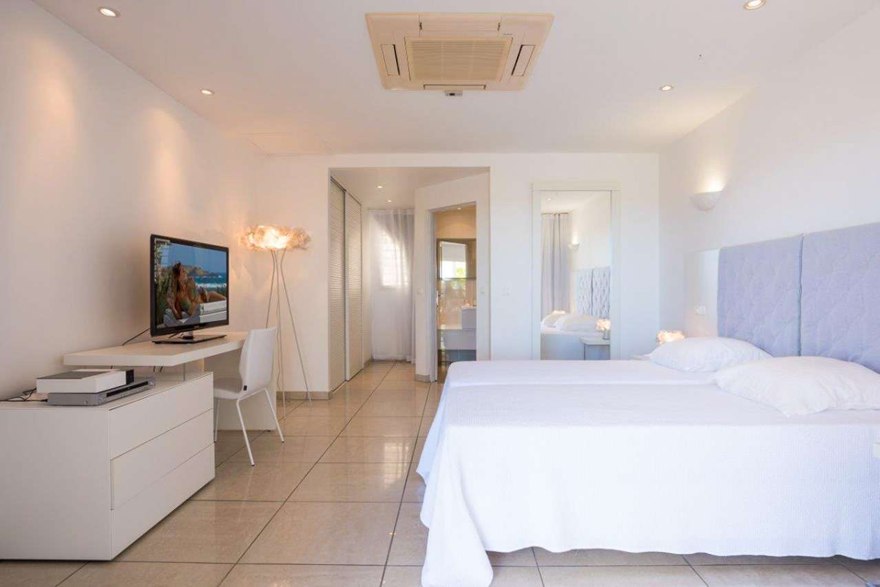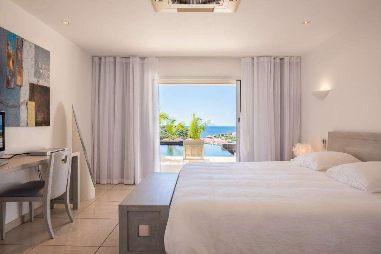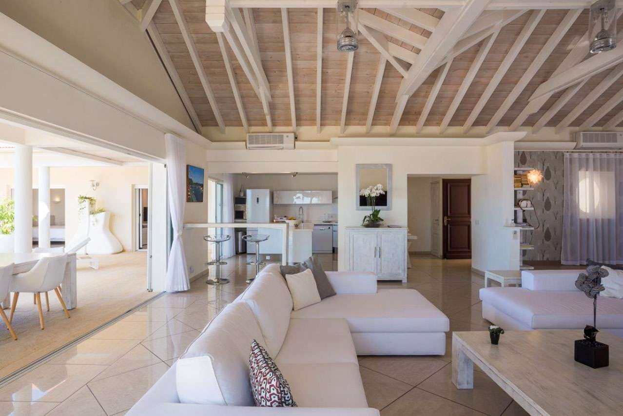 Castaway to Villa Prestige (villa code: WV PRE), a stunning 3-bedroom villa conveniently located in Gustavia, St. Barts. Overflowing with elegance, island charm, and incredible sunset views, this island home is designed for luxurious barefoot living on St. Barts. Creamy interiors create a contemporary feel inside Villa Prestige, with hues of white, gray, and beige all combining. Outside, large columns give the property the feeling of sunny Greece, with incredible views over the harbor below where yachts lie at anchor. With such a location, Villa Prestige is within easy walking distance of the fabulous shops and restaurants in Gustavia. Shell Beach is also within walking distance, offering a pristine sweep of sand and a lively beach bar. But best of all are the incredible views, taking in the shimmering Caribbean Sea with St. Maarten on the distant horizon. Airy, spacious, and bright, the living spaces inside Villa Prestige make it easy to unwind. There’s a carefree style to the décor here, while the furnishings are plush and comfortable. At the center of it all is the enormous living area, with several different areas to gather together and relax. Two large, sectional sofas provide ample seating, ideal spots to curl up with a morning coffee, a good book, or an afternoon drink with some conversation. An entertainment center with a TV also provides some indoor entertainment. At the back of the great room is Villa Prestige’s new, modern kitchen. Featuring high-end appliances and a small breakfast bar, it’s a well-equipped spot to try your hand at the local recipes. Our concierge can even set up a delivery of all the groceries you’ll need – or perhaps a private chef for a special occasion. The indoor dining area is set on a slightly higher level than the kitchen and living room, enjoying the stunning views of the harbor below. Also tempting is the outdoor dining table, immersing you even more in the stunning natural beauty and wonderful location of Villa Prestige. The 3 bedrooms at Villa Prestige are aligned next to the terrace. The first bedroom has two twin beds that can be pushed together to make a Euro king-sized bed. The other two rooms have a Euro king bed. Calming and contemporary, the bedrooms are ideal for collapsing in at the end of each day. Each room also features an ensuite bathroom with a shower, as well as a flat-screen TV with French satellite. The heart of Villa Prestige is its generous outdoor space, offering plenty of seating in sun and shade for kicking back and soaking up the island atmosphere. Whether you’re spending a day in the swimming pool or simply sunbathing while sipping on a cool drink, this is a private slice of paradise. As the afternoon starts to fade, the sunsets from here are also incredible. The golden glow unfolds across the sea and sky, glinting off the yachts bobbing in the water below. An outdoor sound system lets you soundtrack your time and makes it a great spot to entertain guests as well, enjoying drinks while taking in the breathtaking views. Best of all, the fantastic restaurants of Gustavia are within easy reach. A short stroll down the hill brings you into town, where you can choose from a wide variety of restaurants, from high-end French cuisine to local Creole cooking. Villa Prestige enjoys all the amenities you’ll need for a relaxing stay in Gustavia.Please fill out the form to begin your inquiry and we will connect you with a seasoned villa rental specialist.