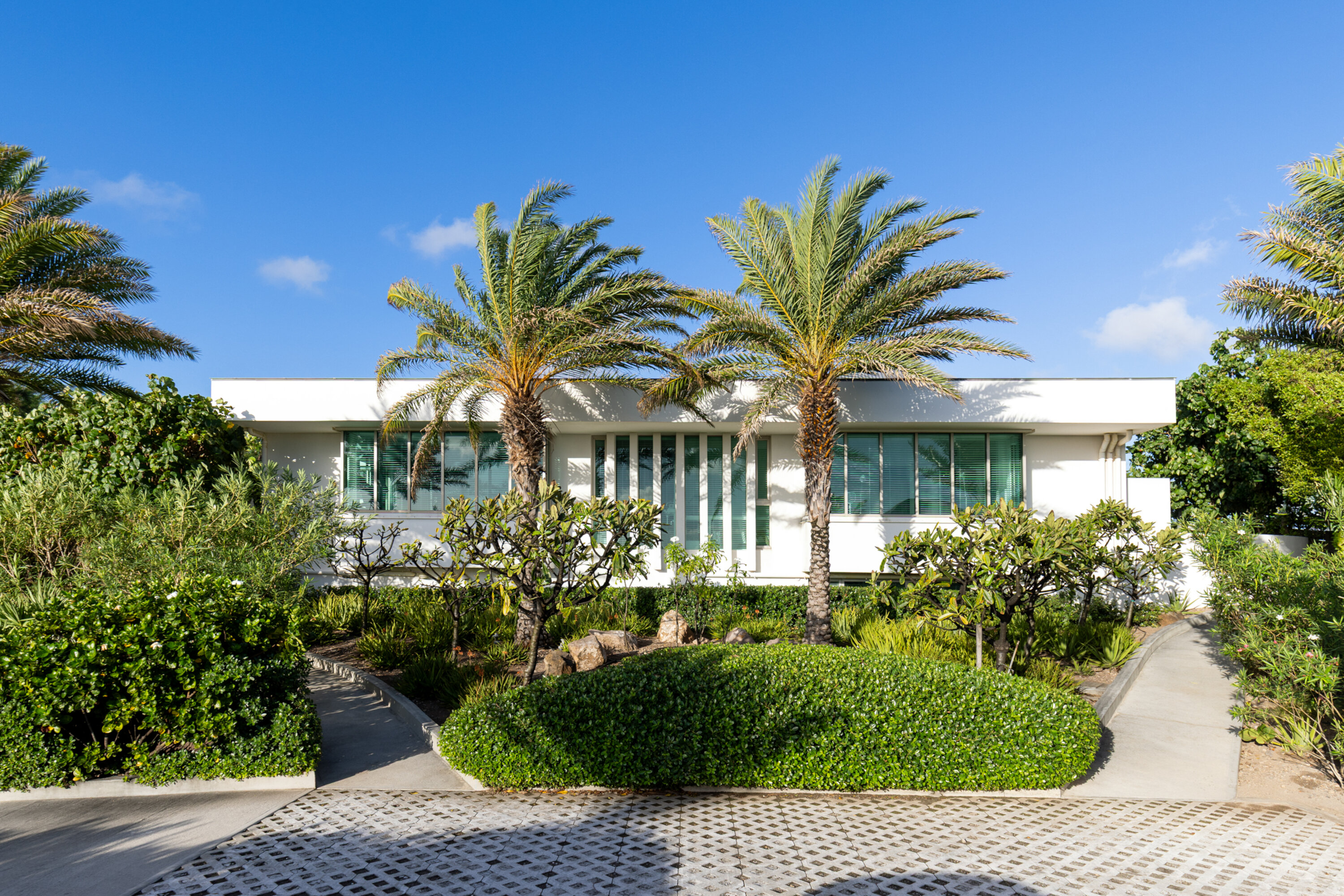 A shaded terrace features a lounge area for chilling out and staying cool. It’s also a great spot for a cocktail soiree, throwing open the doors to the interior living room to create a large seating area both inside and out.