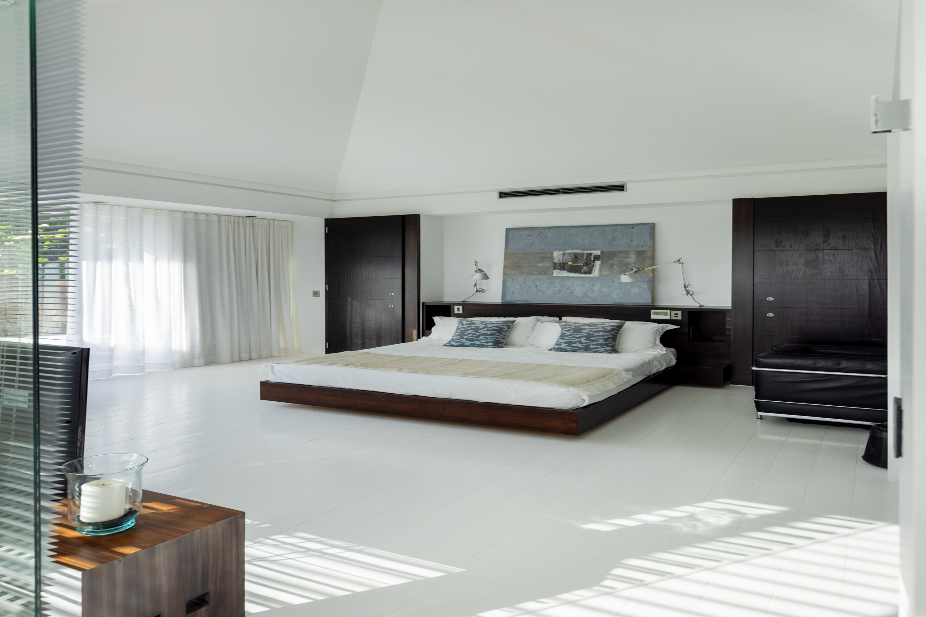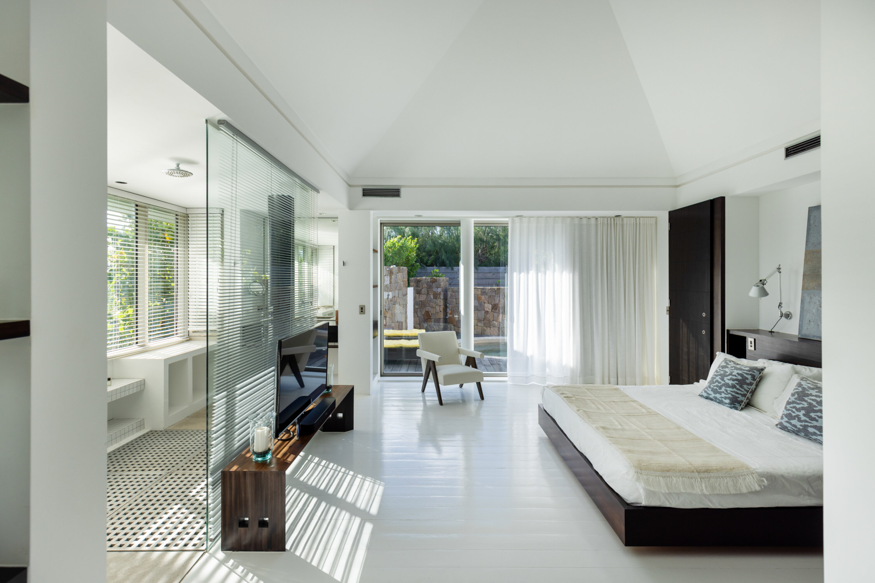 The exquisite interiors at Villa Pyramide are modern and stylish, with a peaceful atmosphere that makes relaxation inevitable. The single-story home features soaring 17’ ceilings, framing the incredible views from every corner of the home. The design is airy and open, featuring a beautiful mix of high-end furnishings, exotic décor, and accents of ceramic, wood, and concrete.