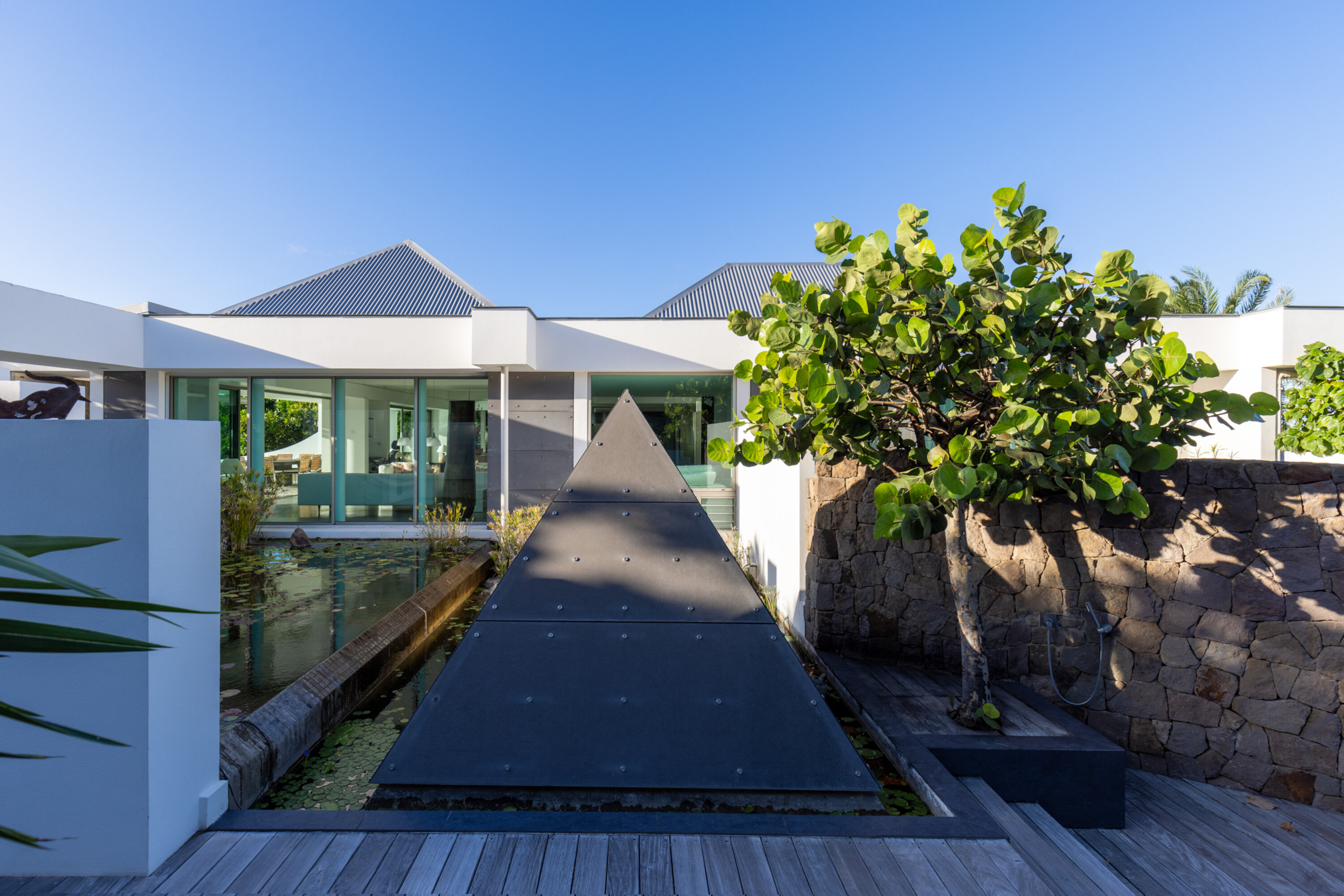 The long swimming pool is very tempting, lined with loungers bathed in almost all-day sun. Private and luxurious, the outdoor spaces at Villa Pyramide are what life in the Caribbean is all about.