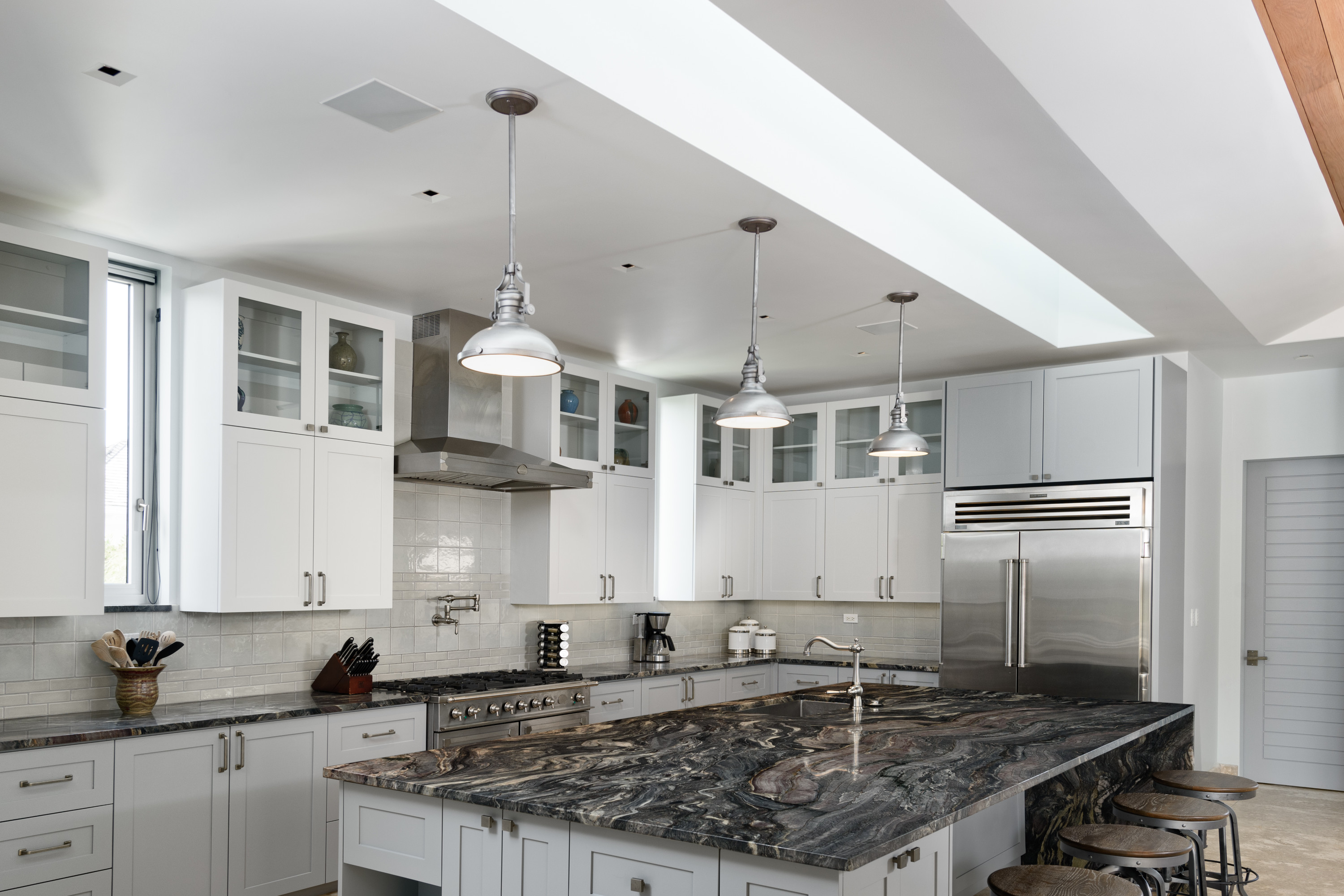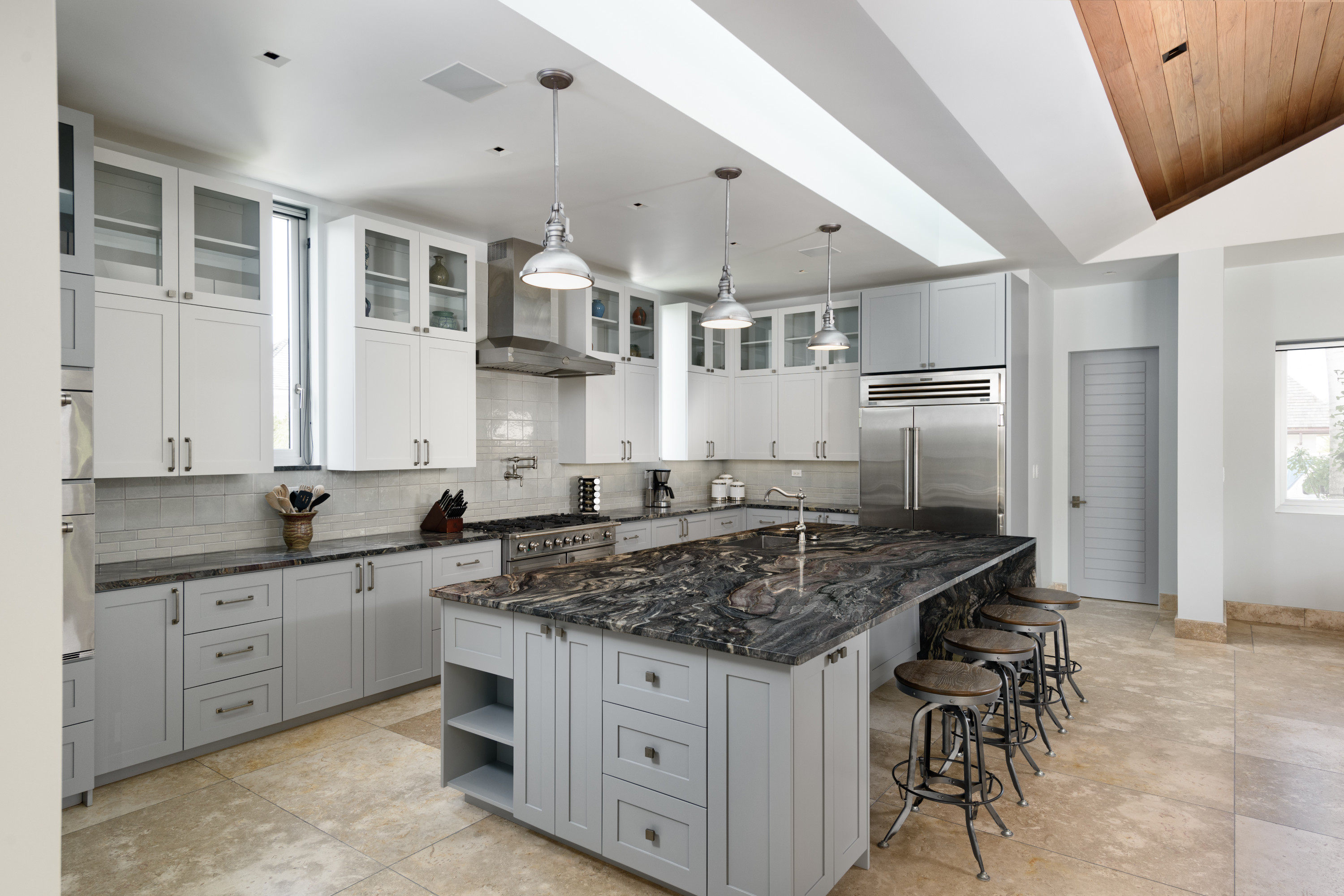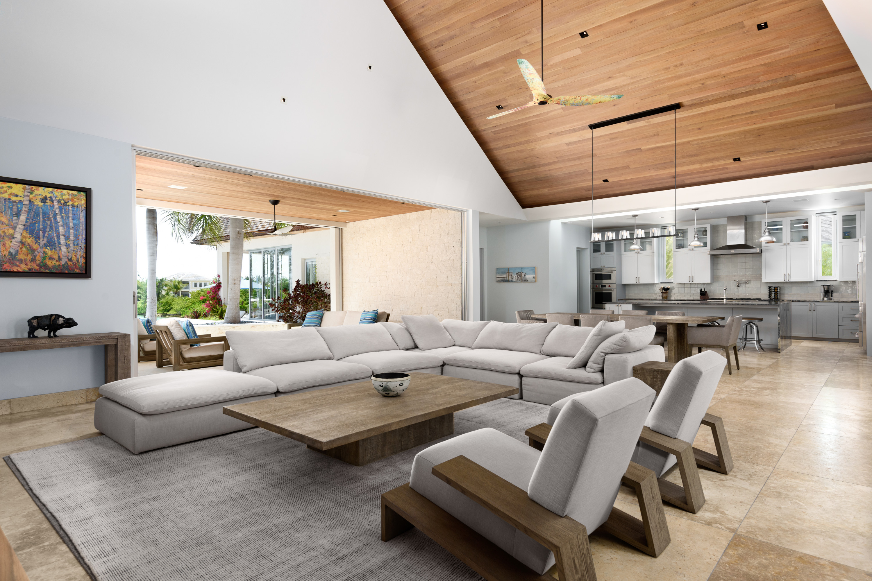The interiors feature high ceilings, spacious open-concept living areas, and a calming color palette that creates a tranquil and inviting atmosphere. The large kitchen island makes cooking a social affair, while the cozy sectional sofa is perfect for relaxing with a book or watching a movie.