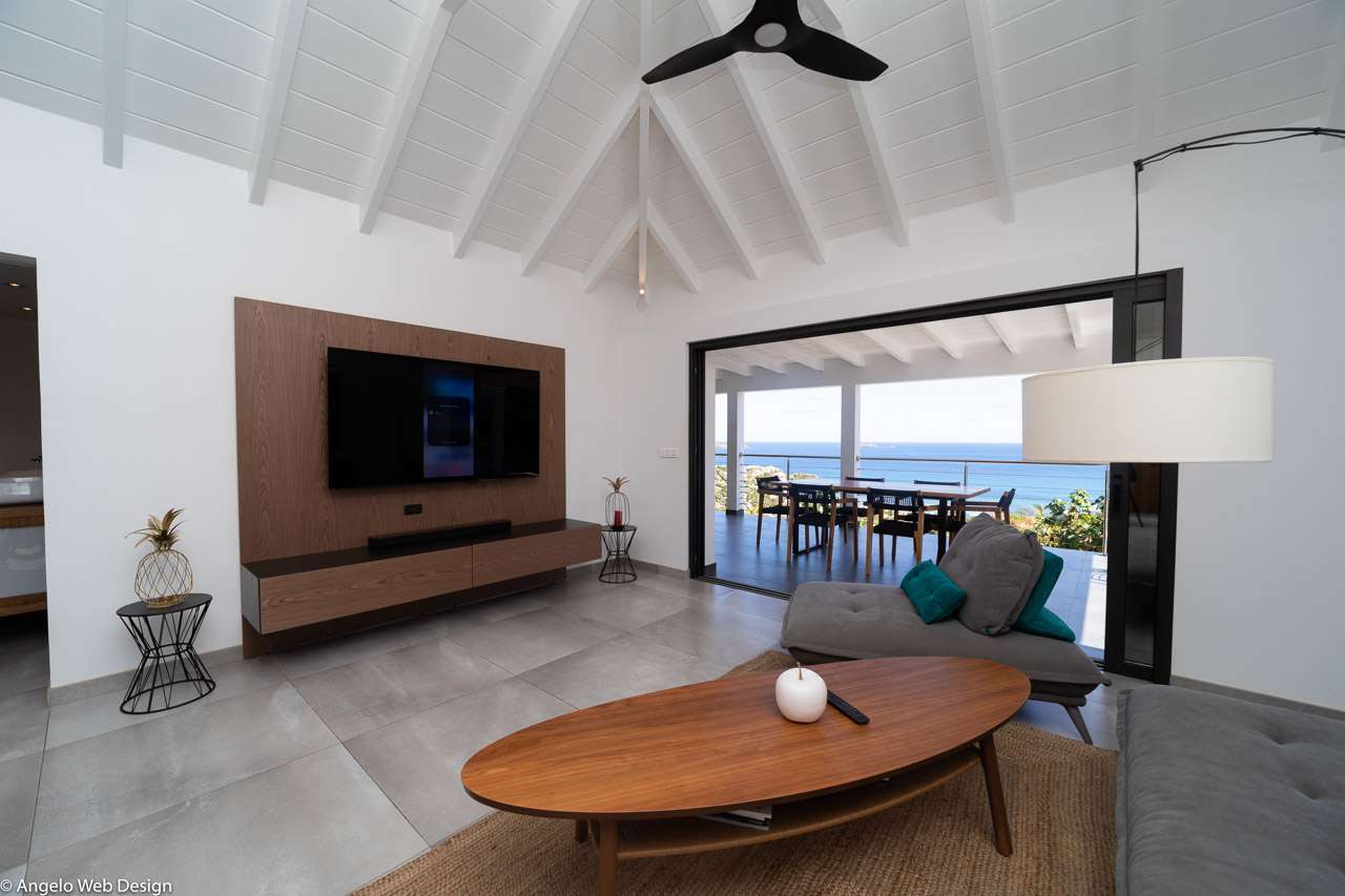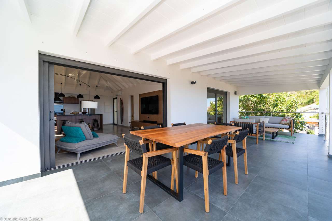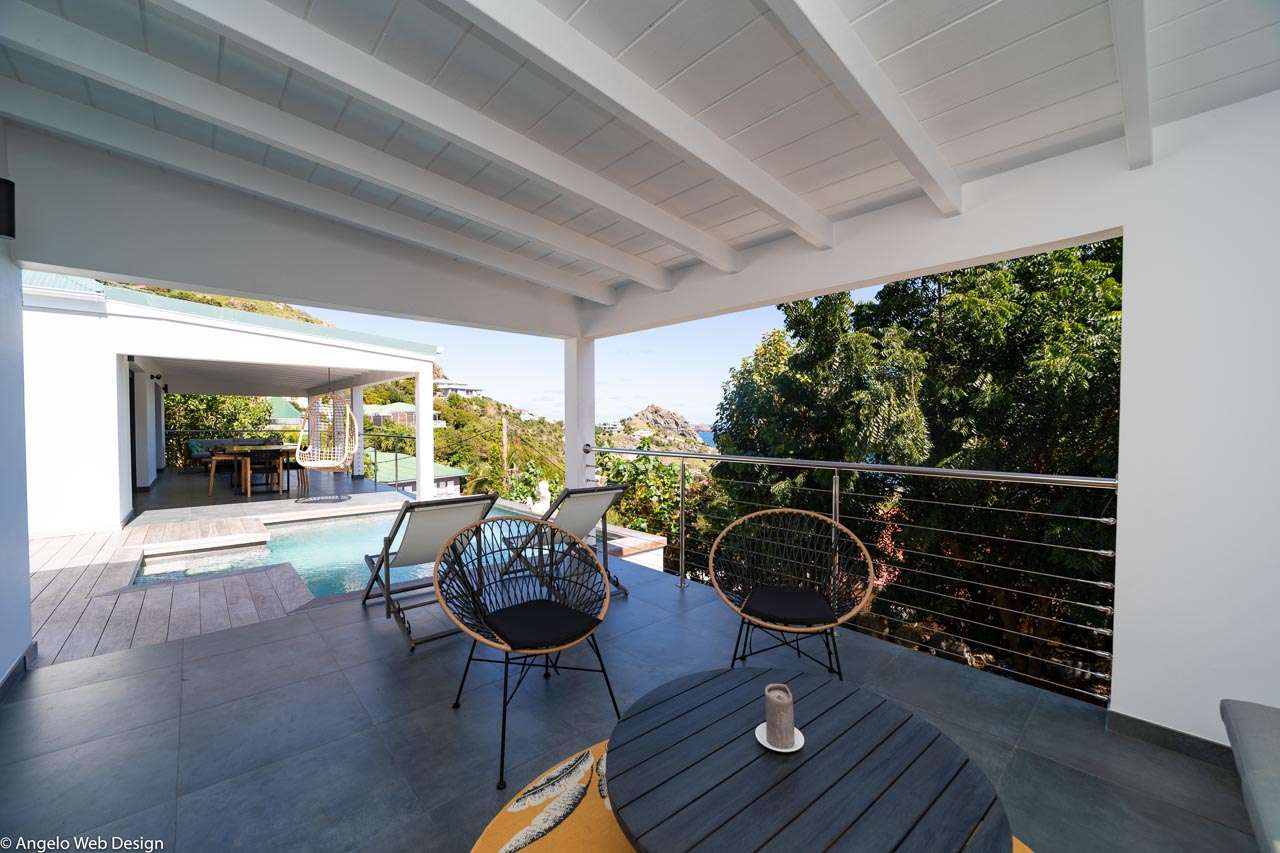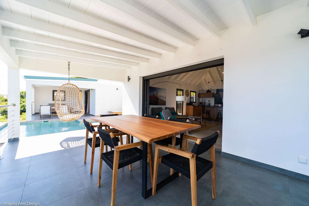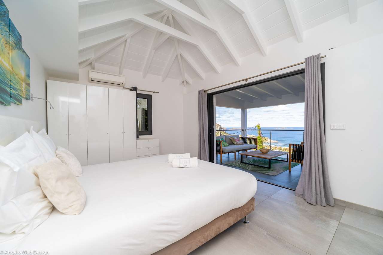 Castaway to Villa Ride (villa code: WV RID), a contemporary 2-bedroom villa in Anse des Cayes, St. Barts. This airy villa tucked in the hills enjoys lovely ocean views, with its effortless and minimalist style ideal for a relaxing Caribbean getaway. The modern interiors at Villa Ride feature clean lines, superb attention to detail, and laid-back décor. Your gaze will be drawn immediately through the windows, where the striking blue of the ocean captures the imagination. All the creature comforts are available, with the furnishings providing you with idyllic spots to forget the rushes of modern life. Located in the hills above Anse des Cayes, Villa Ride puts the stunning natural beauty of St. Barts at your feet. Private and quiet, yet within a few minutes by car of the capital Gustavia, it’s the best of both worlds. The beach at Anse des Cayes is also a short drive away. The simple layout at Villa Ride is designed to help you relax as soon as you step inside. Airy, bright, and minimalist, the dark wooden furnishings contrast with the hues of white. At the heart of the home is an open-plan great room, with the living area and kitchen rolled into one, opening to the outdoor terrace. Quiet days inside reading a book or watching TV in the living room are wonderful. The graceful and comfortable sofas are as inviting as they come. A breakfast bar separates the living area from the large, modern kitchen at Villa Ride. It’s designed so that whoever is cooking can stay a part of the conversation in the living area. Otherwise, our concierge is also happy to organize a private chef for an evening, leaving you to sip a cocktail on the terrace, enjoying the views. It’s out here where you’ll find the long dining table, which has seating for up to six guests. That means that you’ll be able to entertain for meals as well, with the near-constant island breezes washing over everything and keeping things nice and cool. The 2 bedrooms at Villa Ride are similar to the rest of the home: tranquil, luxurious, and elegant. The all-white décor creates a peaceful atmosphere, one that’s ideal for recharging after your days exploring the beauty of St. Barts. The master bedroom is next to the living room, featuring a European king-sized bed and a spacious ensuite bathroom with a shower. A separate bungalow near the pool houses the second bedroom, which has a private terrace with seating. This bedroom also features a European king-sized bed and a large bathroom. The living spaces continue outside, offering plenty more spots to kick back and relax. There are two outdoor lounges, one in the sun and the other in the shade, that are excellent for reading, soaking up the island rays, and admiring the late afternoon light cast across the ocean. In front, a small wooden deck frames the T-shaped plunge pool, which can be heated over the winter. There are loungers for sunbathing, and a comfortable hanging swing chair as well.Please fill out the form to begin your inquiry and we will connect you with a seasoned villa rental specialist.