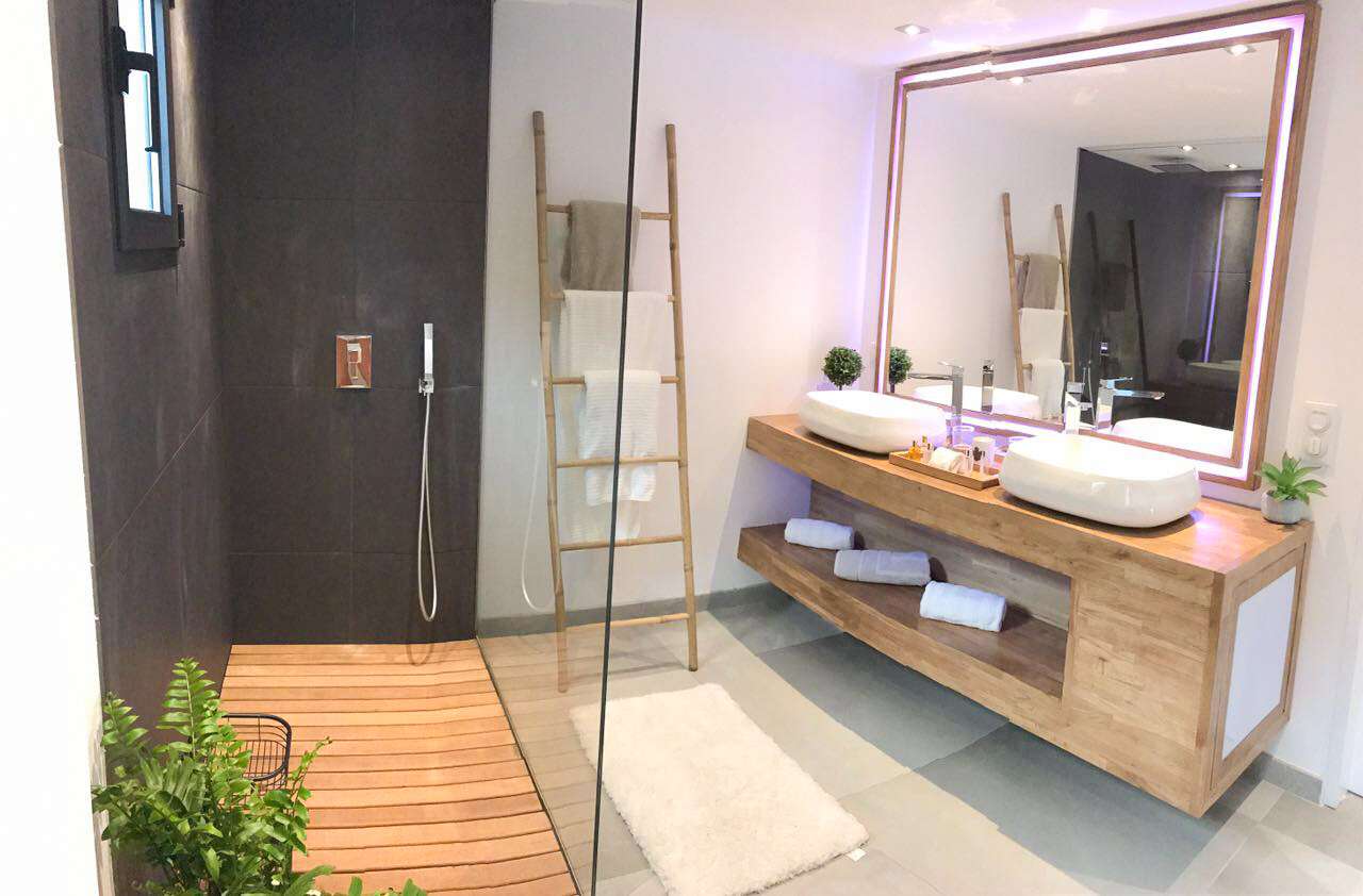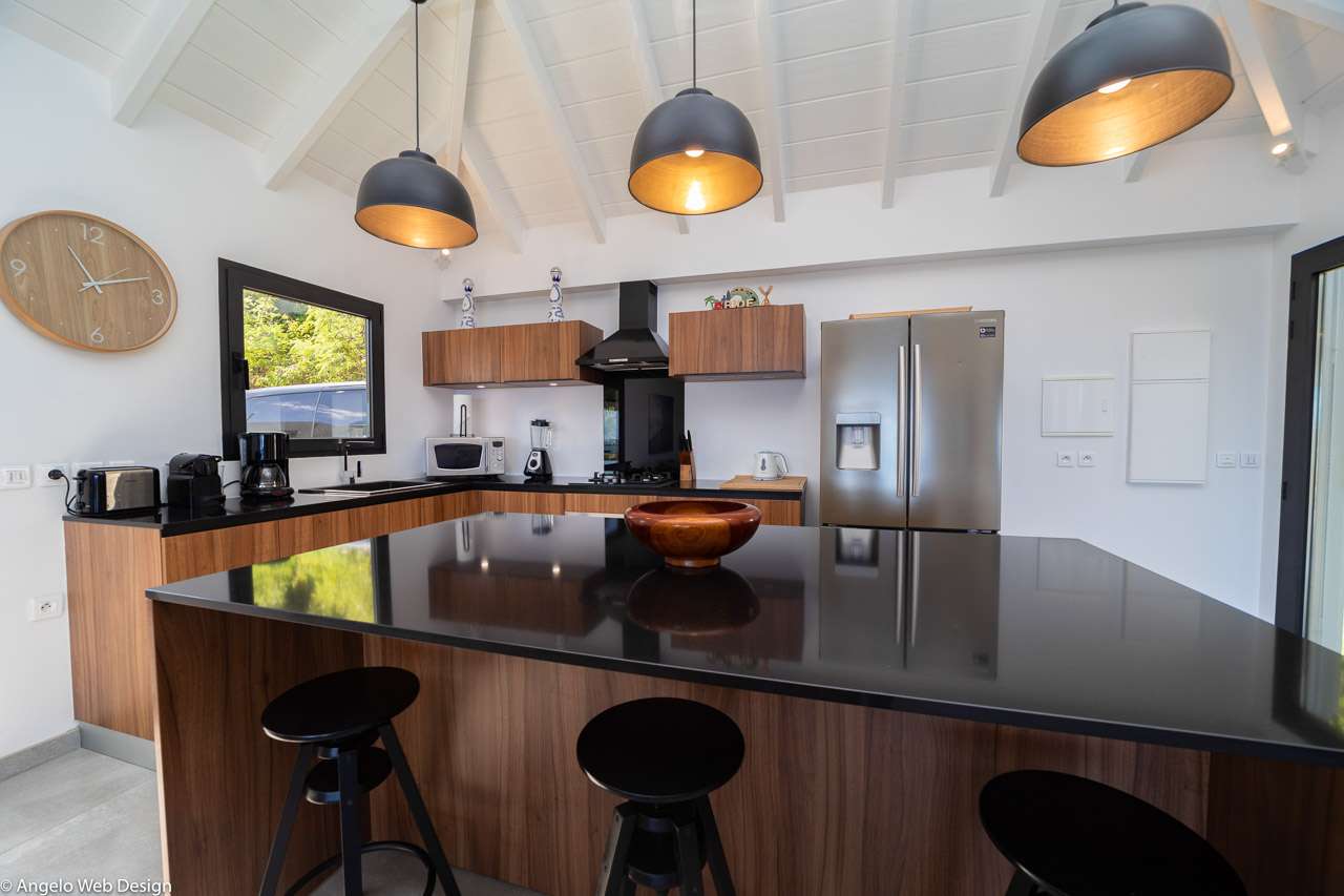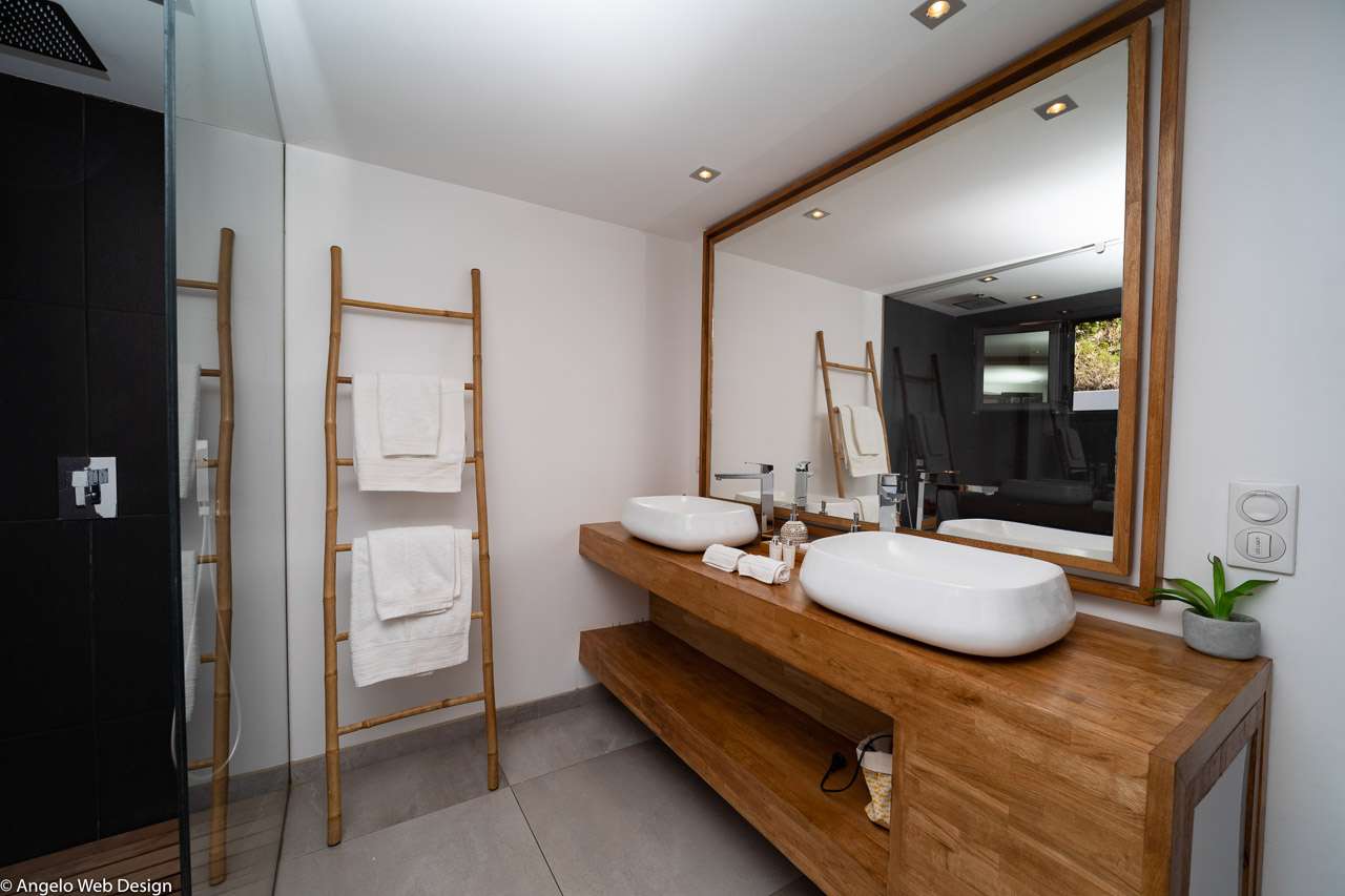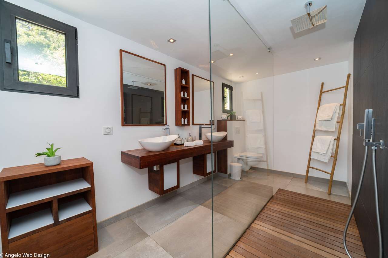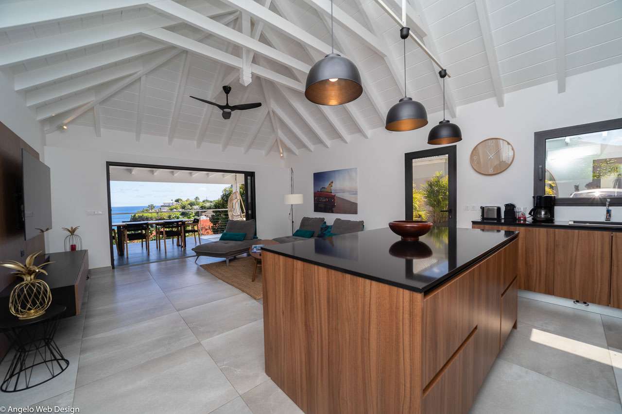 Castaway to Villa Ride (villa code: WV RID), a contemporary 2-bedroom villa in Anse des Cayes, St. Barts. This airy villa tucked in the hills enjoys lovely ocean views, with its effortless and minimalist style ideal for a relaxing Caribbean getaway. The modern interiors at Villa Ride feature clean lines, superb attention to detail, and laid-back décor. Your gaze will be drawn immediately through the windows, where the striking blue of the ocean captures the imagination. All the creature comforts are available, with the furnishings providing you with idyllic spots to forget the rushes of modern life. Located in the hills above Anse des Cayes, Villa Ride puts the stunning natural beauty of St. Barts at your feet. Private and quiet, yet within a few minutes by car of the capital Gustavia, it’s the best of both worlds. The beach at Anse des Cayes is also a short drive away. The simple layout at Villa Ride is designed to help you relax as soon as you step inside. Airy, bright, and minimalist, the dark wooden furnishings contrast with the hues of white. At the heart of the home is an open-plan great room, with the living area and kitchen rolled into one, opening to the outdoor terrace. Quiet days inside reading a book or watching TV in the living room are wonderful. The graceful and comfortable sofas are as inviting as they come. A breakfast bar separates the living area from the large, modern kitchen at Villa Ride. It’s designed so that whoever is cooking can stay a part of the conversation in the living area. Otherwise, our concierge is also happy to organize a private chef for an evening, leaving you to sip a cocktail on the terrace, enjoying the views. It’s out here where you’ll find the long dining table, which has seating for up to six guests. That means that you’ll be able to entertain for meals as well, with the near-constant island breezes washing over everything and keeping things nice and cool. The 2 bedrooms at Villa Ride are similar to the rest of the home: tranquil, luxurious, and elegant. The all-white décor creates a peaceful atmosphere, one that’s ideal for recharging after your days exploring the beauty of St. Barts. The master bedroom is next to the living room, featuring a European king-sized bed and a spacious ensuite bathroom with a shower. A separate bungalow near the pool houses the second bedroom, which has a private terrace with seating. This bedroom also features a European king-sized bed and a large bathroom. The living spaces continue outside, offering plenty more spots to kick back and relax. There are two outdoor lounges, one in the sun and the other in the shade, that are excellent for reading, soaking up the island rays, and admiring the late afternoon light cast across the ocean. In front, a small wooden deck frames the T-shaped plunge pool, which can be heated over the winter. There are loungers for sunbathing, and a comfortable hanging swing chair as well.Please fill out the form to begin your inquiry and we will connect you with a seasoned villa rental specialist.