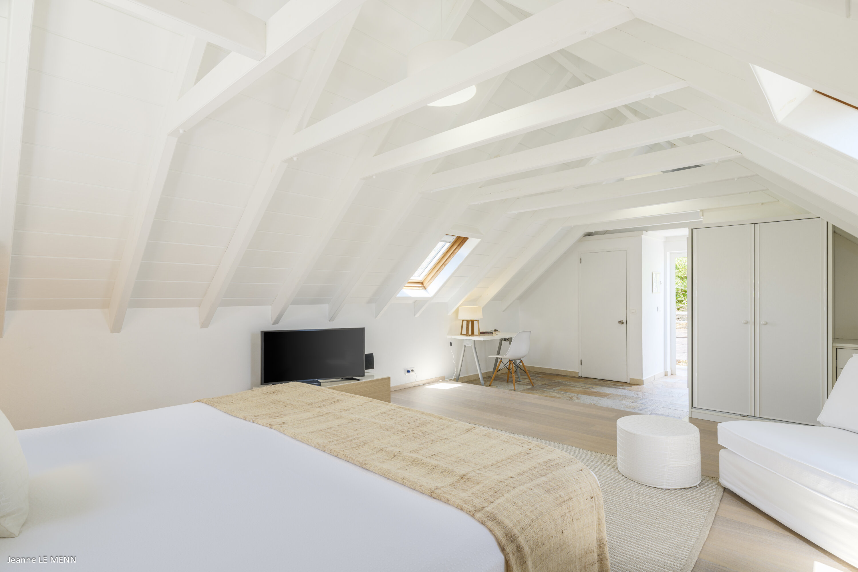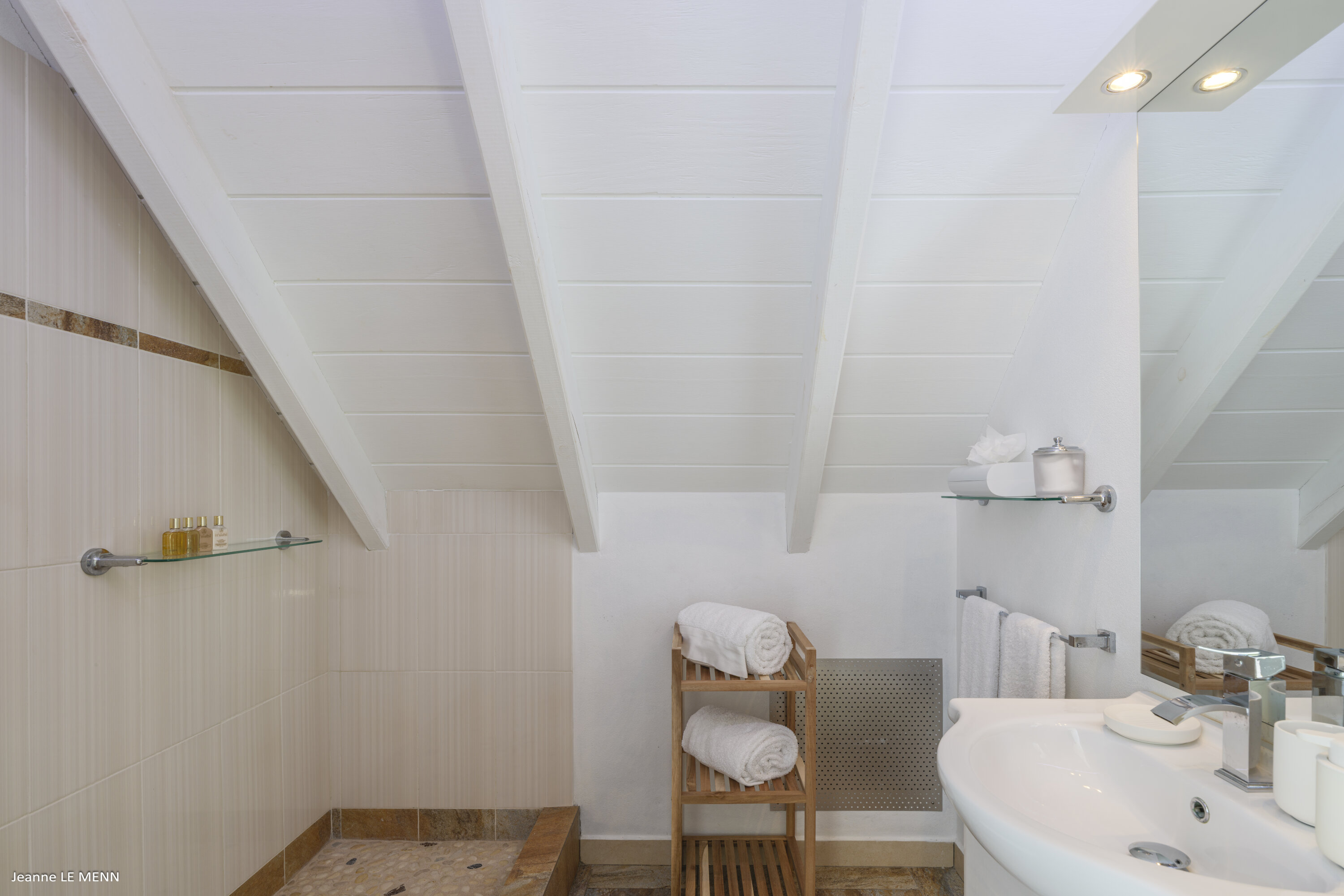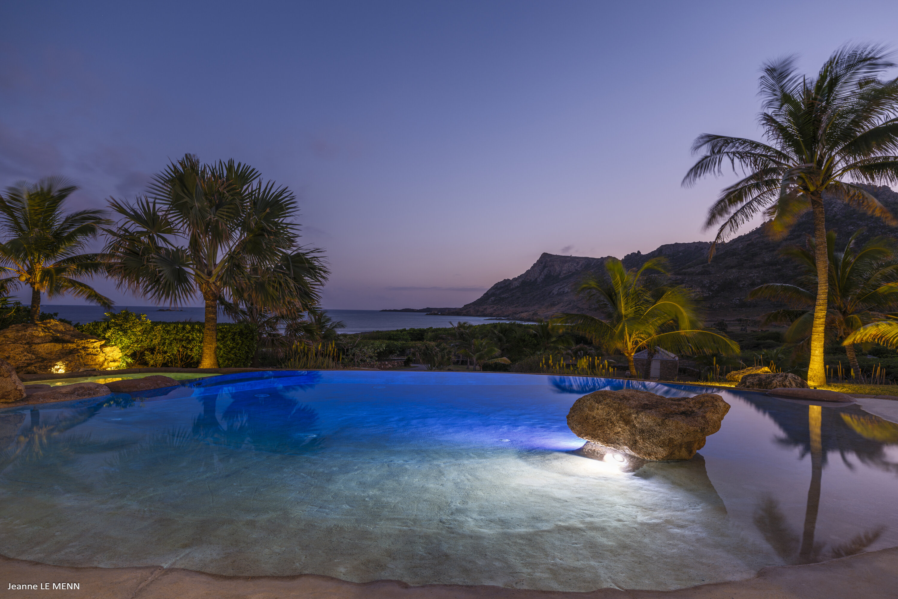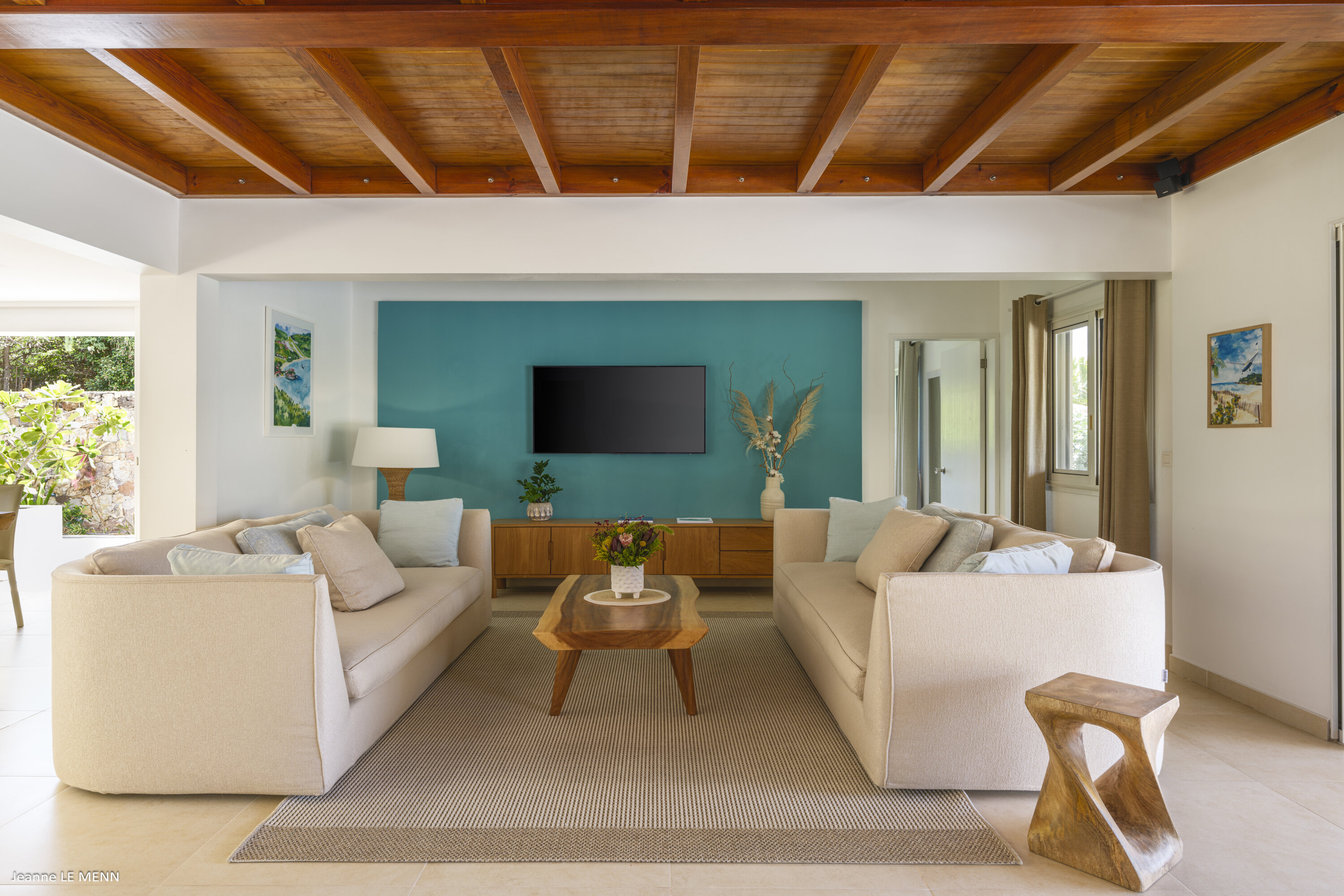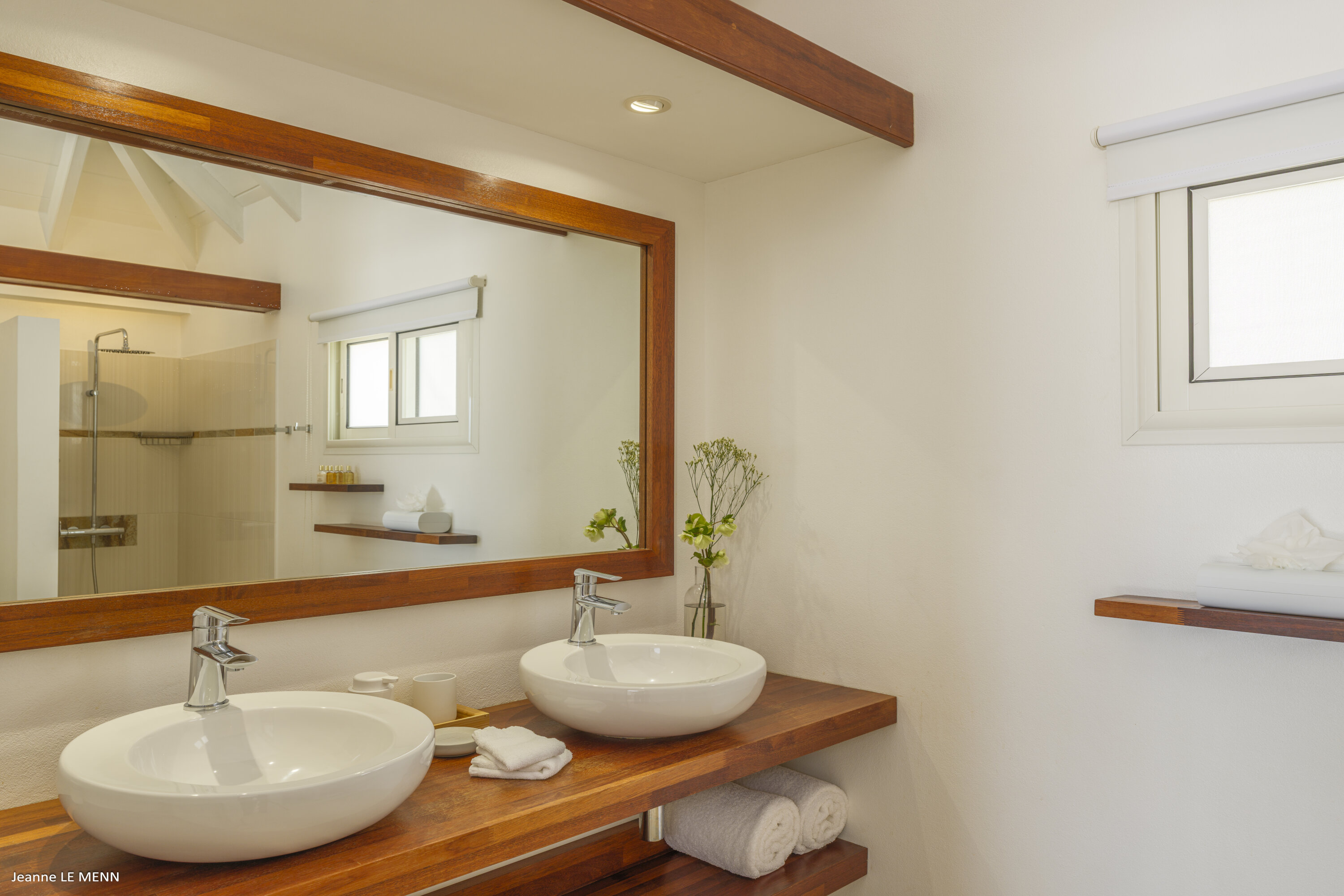 Castaway to Villa La Roche dans l’Eau (villa code: WV GFR), a modern 3-bedroom villa located in Grand Fond, St. Barts. This area is in a quiet part of the island and is an excellent choice for a relaxing island getaway. Contemporary and stylish, the interiors of the villa feature impeccable design and comfort. The creamy white color scheme contrasts with wooden ceilings, while modish and luxurious furnishings offer every comfort. Stripped back décor and several large houseplants add the finishing touches to the elegant property. Located on a rise in the landscape, from the grounds of La Roche dans l’Eau you can see the curving bay, rugged headland, and the shimmering Caribbean sea. The beaches at Grand Cul de Sac and Petit Cul de Sac are both just a short drive away. The great room in Villa La Roche dans l’Eau is home to the modern living room and dining area. The room opens to the outdoor terrace and pool. In the living room, minimalist décor complements the retro-style semicircular sofa, an ideal spot to sink in and enjoy the ocean breeze blowing through the house. A large TV lets you unwind with your favorite TV series or the latest film. The well-equipped kitchen has everything you’ll need to create gourmet meals during your stay. Our concierge can organize grocery pre-stocking or delivery, catered meals, or arrange private chef service for a special occasion. The indoor dining area has seating for up to eight guests, a fine setting for festive dinners. For those who prefer to dine alfresco, another table is under the covered terrace outside. There are 3 bedrooms at Villa La Roche dans l’Eau, spread across the villa to ensure peace, quiet, and privacy for guests. Each room has an ensuite bathroom with a spacious shower. On the second level is the master suite, accessed by an exterior staircase. The unique loft-style roof adds a rustic touch, while a small sitting area lets you relax in seclusion. On either side of the living room downstairs are the other two bedrooms, each with a plush queen-size bed. The remarkable outdoor living areas at Villa La Roche dans l’Eau will sweep you off your feet. A covered area offers space to lounge in the shade, while the sunny terrace is ideal for soaking up the island rays on the loungers. The centerpiece of the property is the gorgeous swimming pool, an inviting place to spend your day. Featuring a graduated slope into the water and a current system, lazing in the pool simulates being at the beach. The rock in the middle of the water is what inspired the villa’s name, which translates to “Rock in the Water”. As the afternoon begins to fade, retreating to the lounge area on the covered deck is encouraged. It’s a fabulous spot to enjoy a cocktail with the sunset, watching as the rosy gold colors light up the sea and sky. In the distance, the twinkling lights of St. Kitts coming to life are alluring. Out the back of the house is another terrace area with a garden. A relaxing and quiet area, it’s ideal for settling in with a good book or your morning coffee. For days on the beach, swinging around to the north side of the island to either Petit Cul de Sac or Grand Cul de Sac is an easy 5-minute drive. For something more adventurous, a 25-minute trek along the headland brings you to the “Washing Machine”, several natural rock pools embedded into the coastline. During the December holidays, the villa rents at the full occupancy rate regardless of how many bedrooms are used.Please fill out the form to begin your inquiry and we will connect you with a seasoned villa rental specialist.