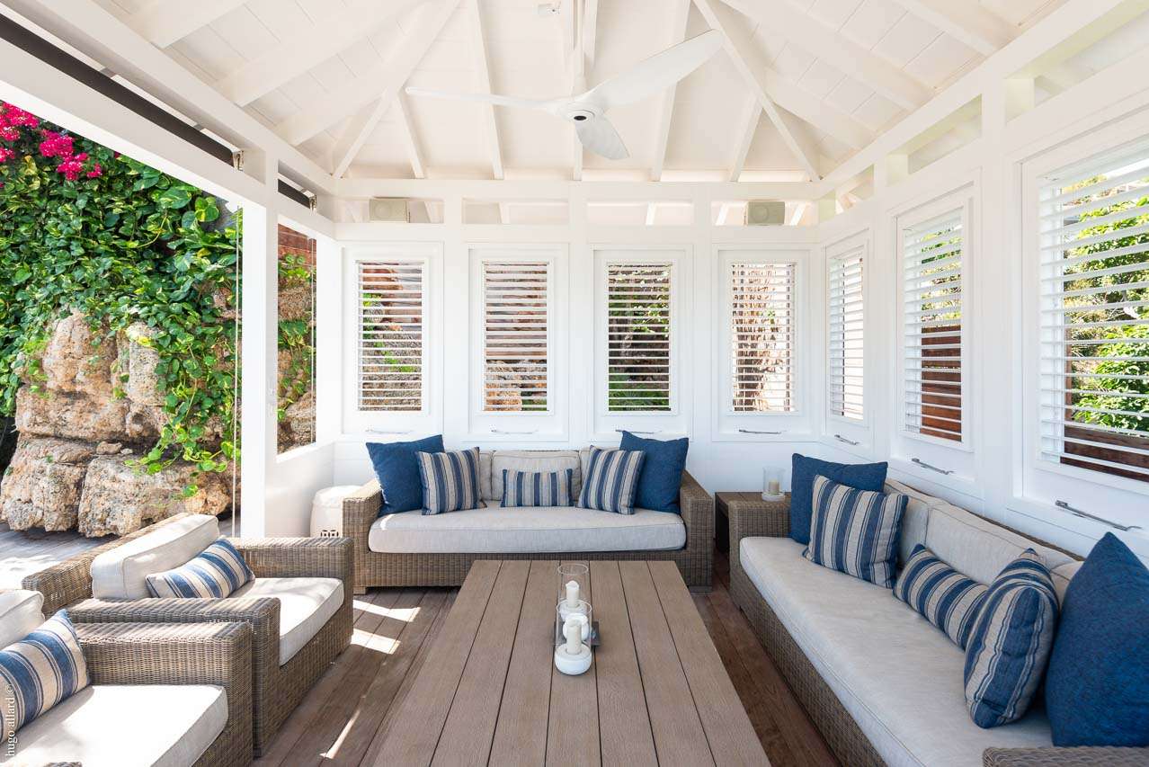 Back on the upper level, relaxing days spent lounging around outside are made all the better thanks to the wonderful outdoor living spaces at Villa Romana. The expansive deck is an ideal place to sunbathe on loungers or relax in the shade under the portico.