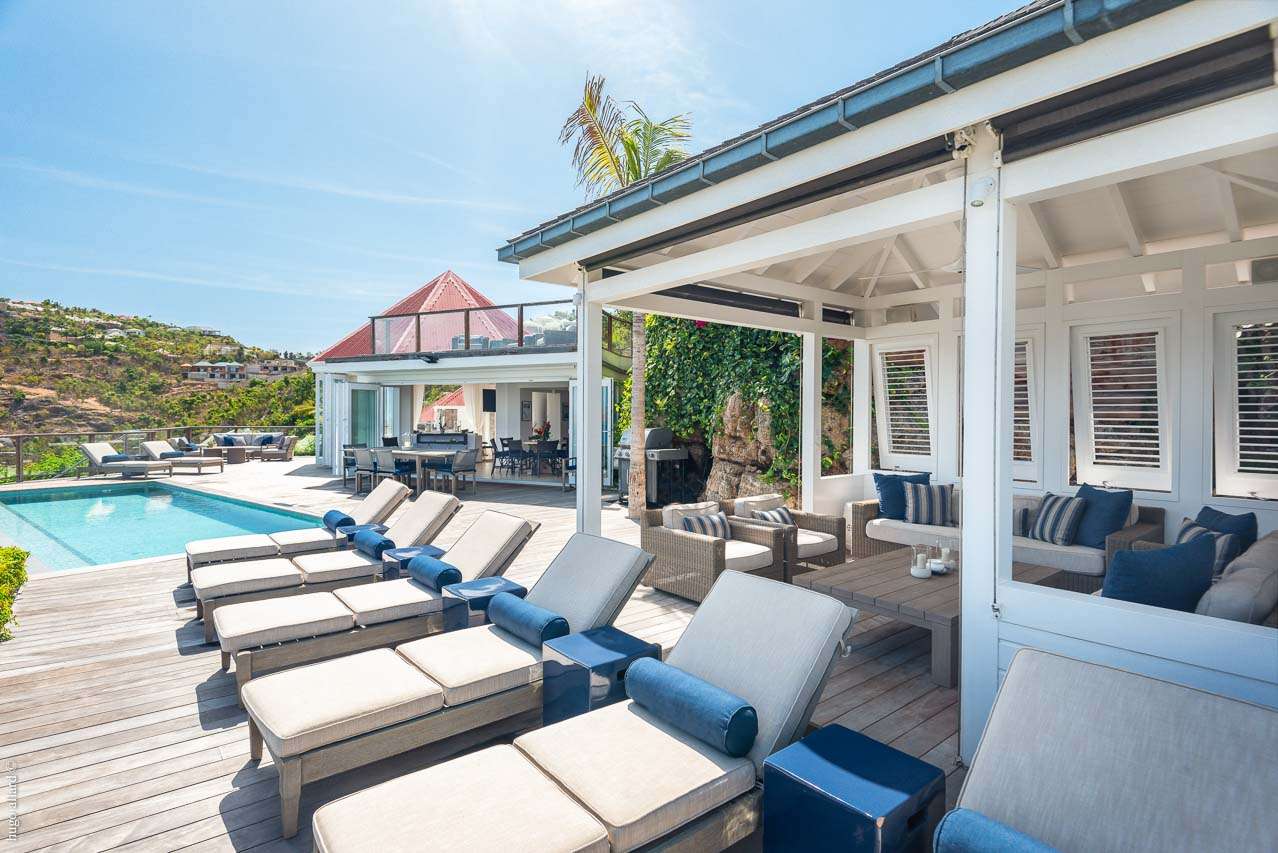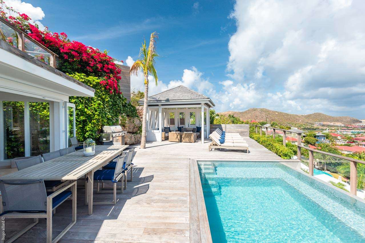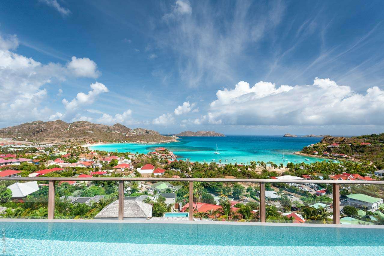 Nestled in the hillside above St. Jean, Villa Romana enjoys breathtaking vistas of the bay below. The water glints in the island light, and the surrounding coast is dotted with the red roofs of the town. Everything is a 5-minute drive from here, including shops, restaurants, and the pristine beach below.