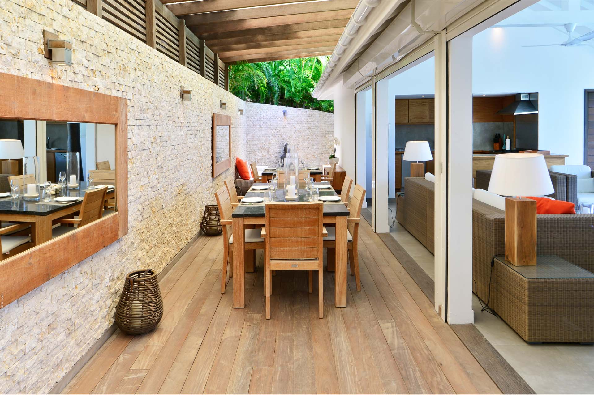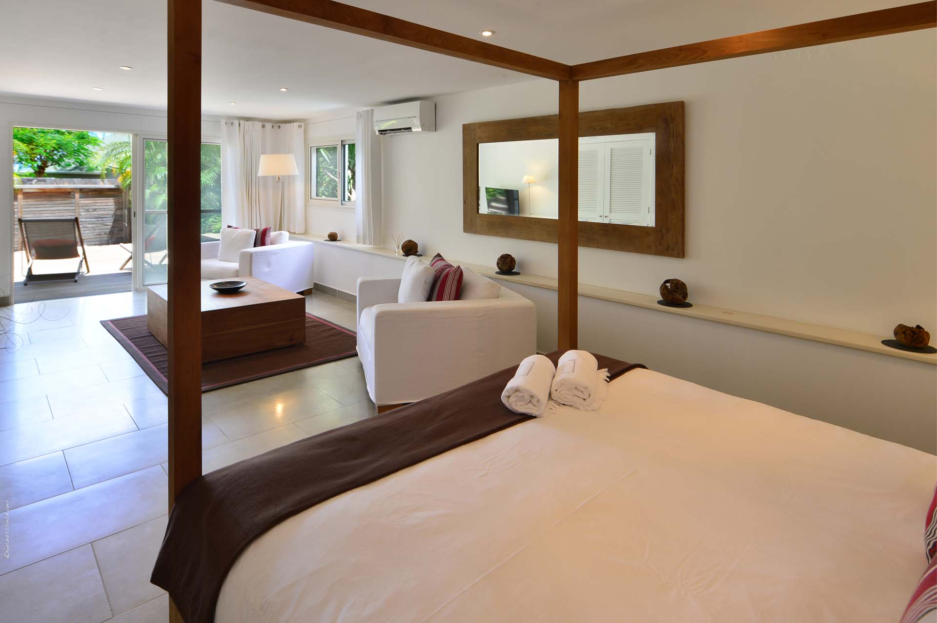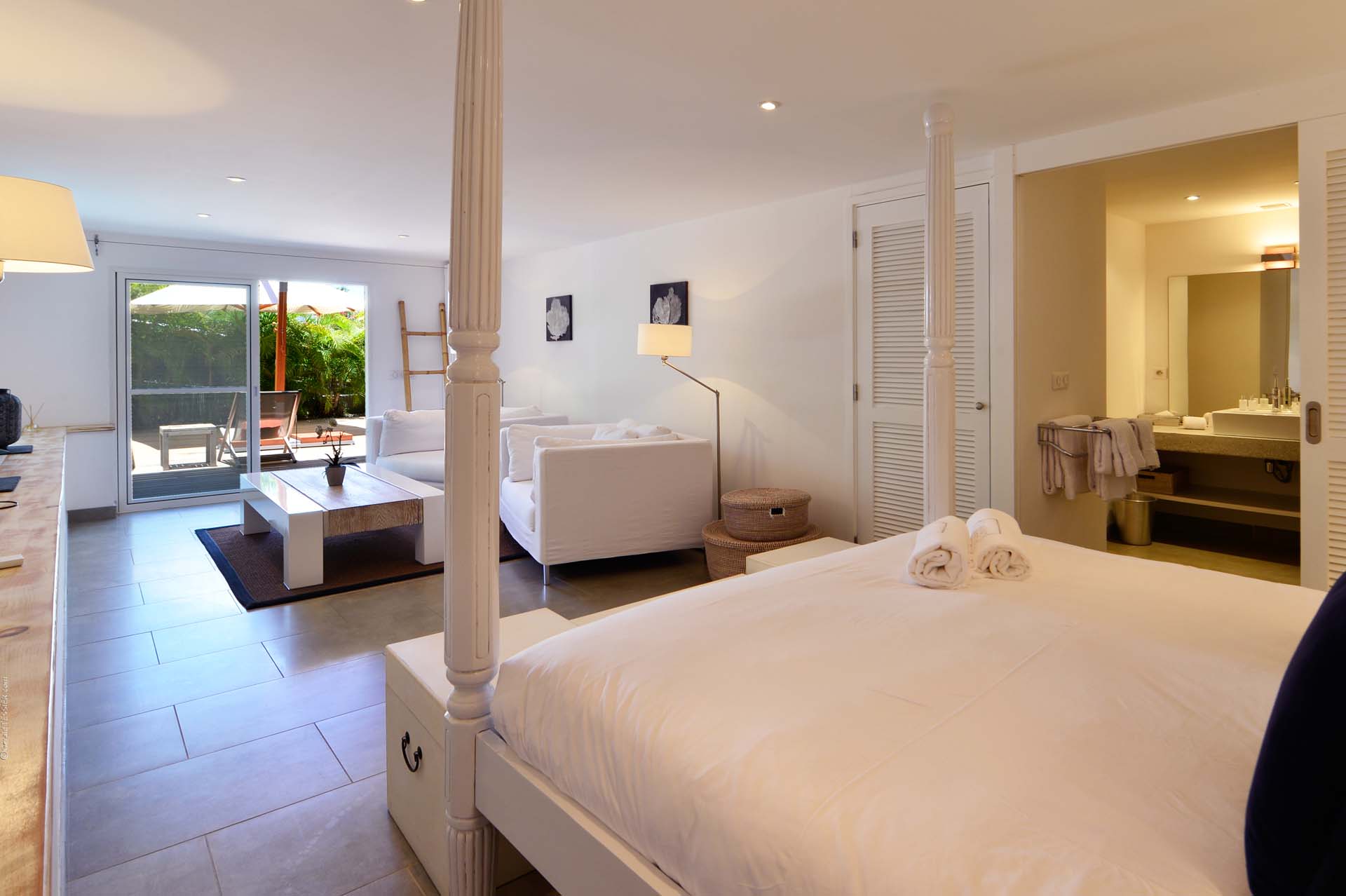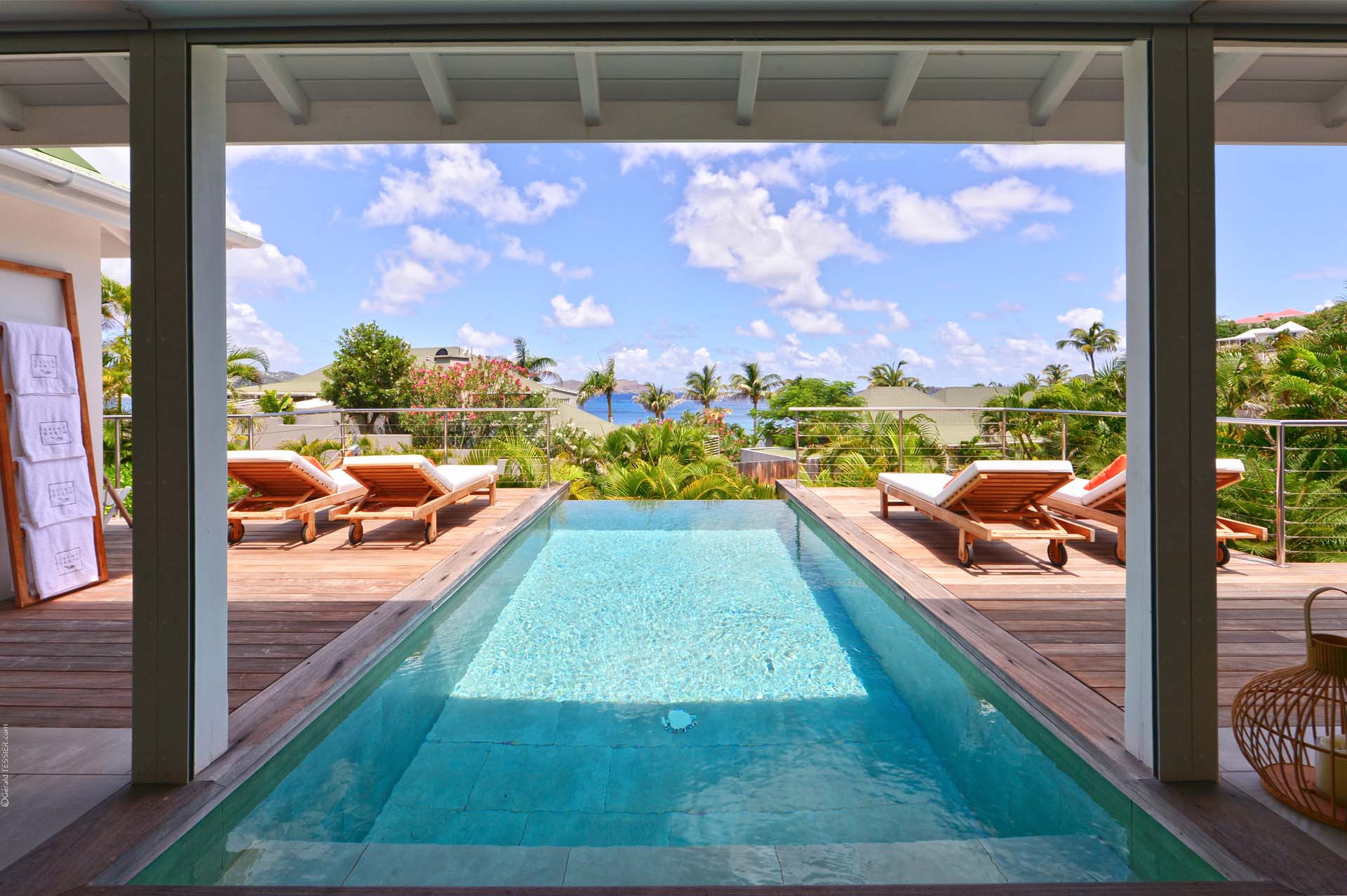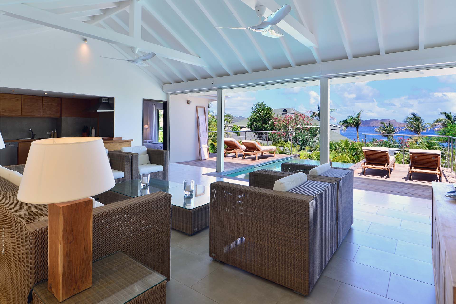 Welcome to Villa Sakura (villa code: WV RIN), a beautiful 4-bedroom villa located above the Hotel Christopher in Pointe Milou. This chic island home is surrounded by lush tropical plants, with the beach, shops, and restaurants within a short drive. This elegant home enjoys all the privacy you could want for a discreet island holiday, and will undoubtedly become your home away from home. Expect modern interiors with plenty of tropical charms, from the rattan textures to warm wooden accents that contrast with the cool tiles underfoot. Villa Sakura is all about barefoot, luxurious living in the Caribbean. With a fabulous location across the street from Hotel Christopher, you’ll get to enjoy its restaurant, pool, and spa right on the waterfront. Lorient Beach is also a short drive away, as are the shops and restaurants in St. Jean. From the upper level, Villa Sakura enjoys glimpses of the sparkling ocean through the swaying palms. A large stairway leads through the green garden to the main floor of the open-plan villa. The elegant layout flows from space to space, with alfresco areas drawing you outside at every turn. At the center of the home is Villa Sakura’s great room, with a spacious living area and a high-end kitchen. In the living area, there’s plenty of comfortable seating, as well as a widescreen TV with U.S. satellite channels and Apple TV. The modern kitchen at Villa Sakura is fully-equipped for preparing meals, tucked off to the side in the great room. The open plan ensures that the conversation continues to flow when it’s time to cook – or if you’d prefer, our concierge is happy to arrange a visit from one of the island’s top chefs to cook for you. The dining table is in the inner courtyard, just next to the kitchen. Semi-shaded by the wooden rafters above, it’s a space that feels both inside and out at the same time, and a wonderful spot to gather for a meal with family and friends. There are 4 bedrooms at Villa Sakura, spread over the two levels to make sure that all guests can enjoy privacy. The two main bedrooms are on either side of the living room, equal in size and both with glimpses of the ocean. European king-sized beds, U.S. satellite channels and Apple TV, and spacious ensuite bathrooms complete these rooms. On the lower floor are the other two bedrooms, both with views of the lush garden. These rooms are more like suites, the spacious areas filled with an indoor seating area alongside the four-poster European king-sized beds. Both rooms also feature an ensuite bathroom, as well as a small private terrace area outside with seating. The living room leads to Villa Sakura’s outdoor terrace, where the swimming pool runs straight down the middle towards the edge, creating a separate area on each side. There’s ample seating in both sun and shade, making this an idyllic spot to sunbathe, enjoy a good book, or gather for an evening cocktail. The lower level also enjoys a large wooden terrace, bordered by a lush garden. There’s seating here as well, quiet and private for those lazy days you’d like a slice of solitude. And when the ocean calls, it’s only a short drive to Lorient Beach, an incredible sweep of soft sand and crystalline water.Please fill out the form to begin your inquiry and we will connect you with a seasoned villa rental specialist.