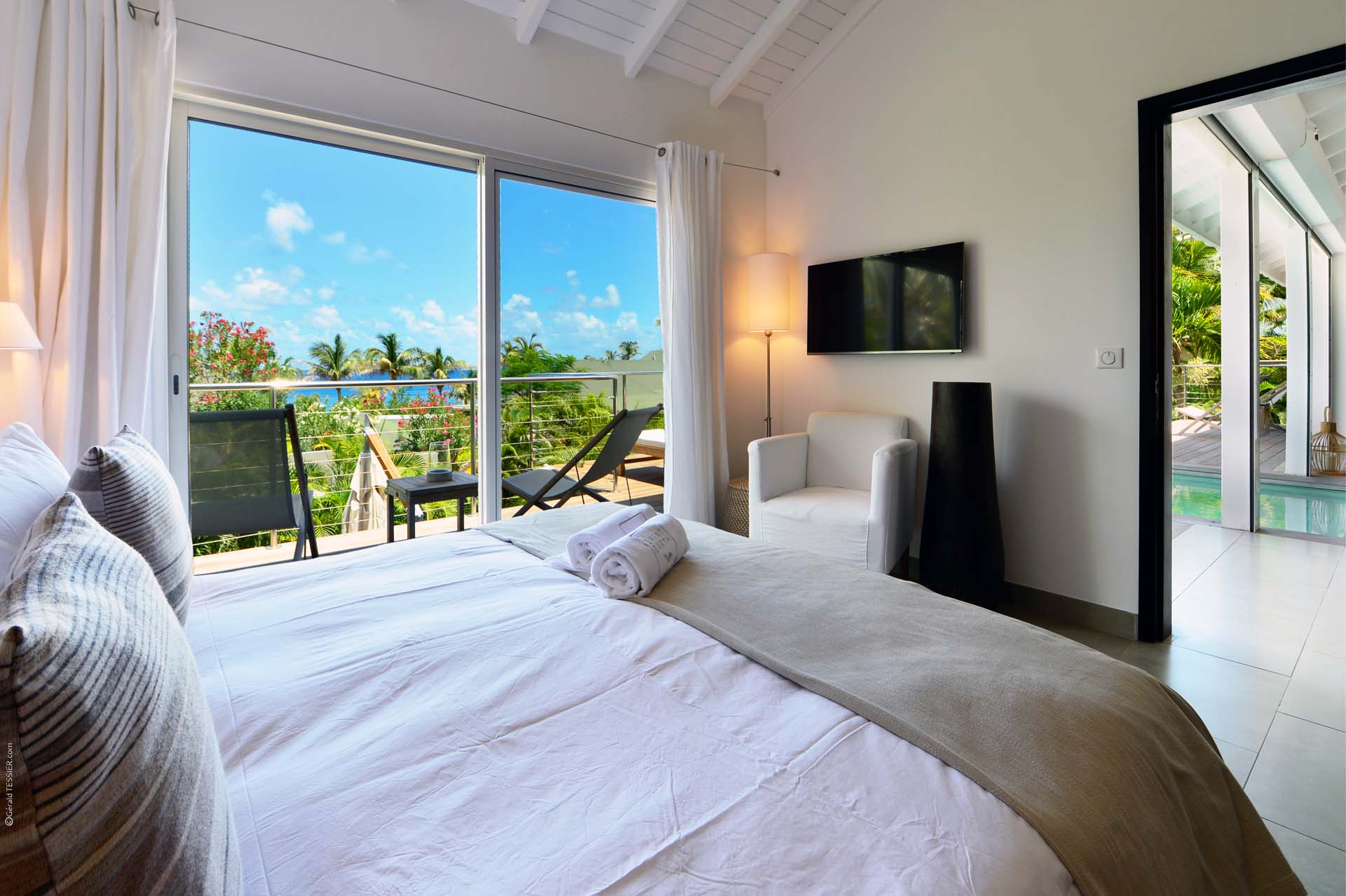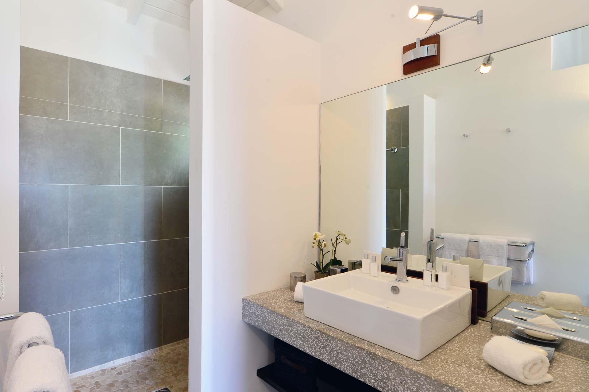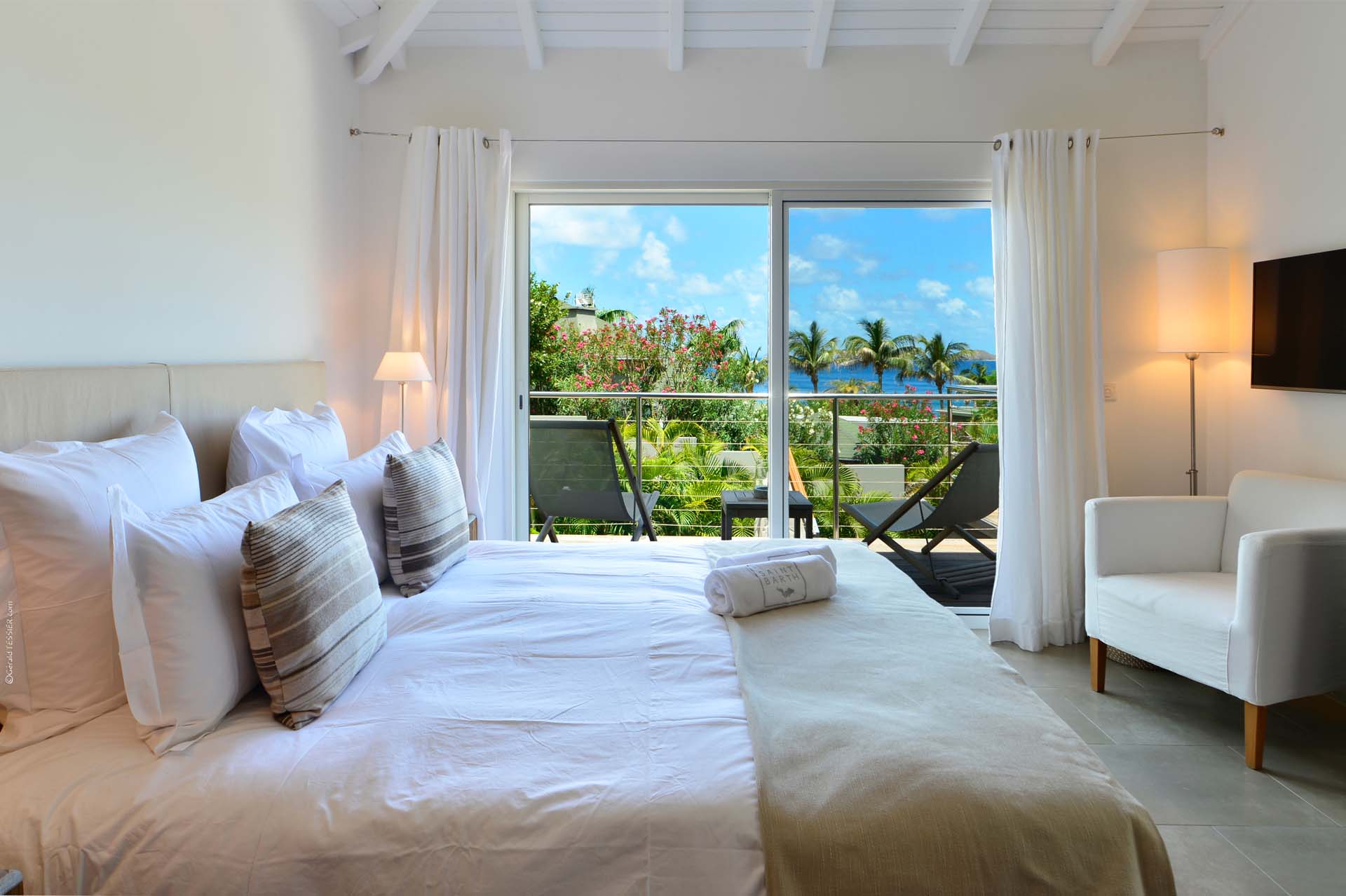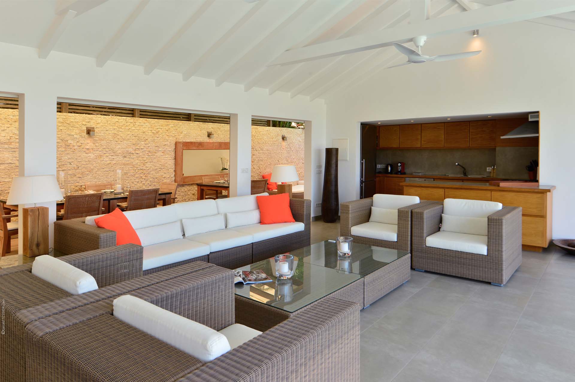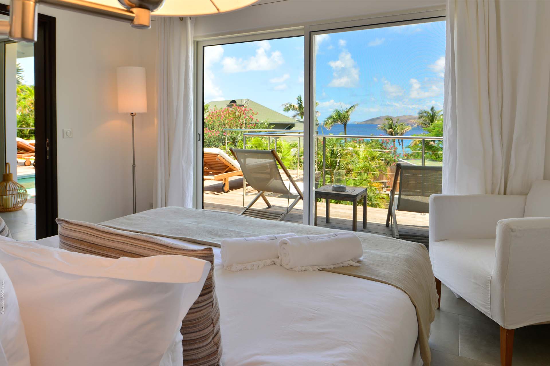 Welcome to Villa Sakura (villa code: WV RIN), a beautiful 4-bedroom villa located above the Hotel Christopher in Pointe Milou. This chic island home is surrounded by lush tropical plants, with the beach, shops, and restaurants within a short drive. This elegant home enjoys all the privacy you could want for a discreet island holiday, and will undoubtedly become your home away from home. Expect modern interiors with plenty of tropical charms, from the rattan textures to warm wooden accents that contrast with the cool tiles underfoot. Villa Sakura is all about barefoot, luxurious living in the Caribbean. With a fabulous location across the street from Hotel Christopher, you’ll get to enjoy its restaurant, pool, and spa right on the waterfront. Lorient Beach is also a short drive away, as are the shops and restaurants in St. Jean. From the upper level, Villa Sakura enjoys glimpses of the sparkling ocean through the swaying palms. A large stairway leads through the green garden to the main floor of the open-plan villa. The elegant layout flows from space to space, with alfresco areas drawing you outside at every turn. At the center of the home is Villa Sakura’s great room, with a spacious living area and a high-end kitchen. In the living area, there’s plenty of comfortable seating, as well as a widescreen TV with U.S. satellite channels and Apple TV. The modern kitchen at Villa Sakura is fully-equipped for preparing meals, tucked off to the side in the great room. The open plan ensures that the conversation continues to flow when it’s time to cook – or if you’d prefer, our concierge is happy to arrange a visit from one of the island’s top chefs to cook for you. The dining table is in the inner courtyard, just next to the kitchen. Semi-shaded by the wooden rafters above, it’s a space that feels both inside and out at the same time, and a wonderful spot to gather for a meal with family and friends. There are 4 bedrooms at Villa Sakura, spread over the two levels to make sure that all guests can enjoy privacy. The two main bedrooms are on either side of the living room, equal in size and both with glimpses of the ocean. European king-sized beds, U.S. satellite channels and Apple TV, and spacious ensuite bathrooms complete these rooms. On the lower floor are the other two bedrooms, both with views of the lush garden. These rooms are more like suites, the spacious areas filled with an indoor seating area alongside the four-poster European king-sized beds. Both rooms also feature an ensuite bathroom, as well as a small private terrace area outside with seating. The living room leads to Villa Sakura’s outdoor terrace, where the swimming pool runs straight down the middle towards the edge, creating a separate area on each side. There’s ample seating in both sun and shade, making this an idyllic spot to sunbathe, enjoy a good book, or gather for an evening cocktail. The lower level also enjoys a large wooden terrace, bordered by a lush garden. There’s seating here as well, quiet and private for those lazy days you’d like a slice of solitude. And when the ocean calls, it’s only a short drive to Lorient Beach, an incredible sweep of soft sand and crystalline water.Please fill out the form to begin your inquiry and we will connect you with a seasoned villa rental specialist.