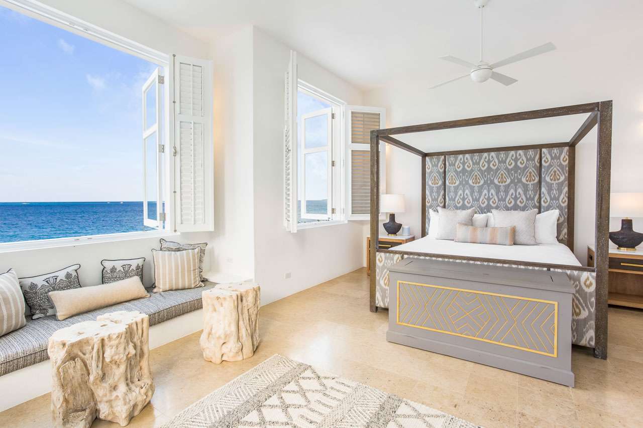 A private staircase leads you down onto the velvety sands of Long Bay Beach. Beach attendants can set up chairs and umbrellas for your comfort, and there’s also a shared beach boathouse with a bar. For dining out, famous West End restaurants like Julians, Jacala, and Straw Hat Restaurant are within easy driving distance.