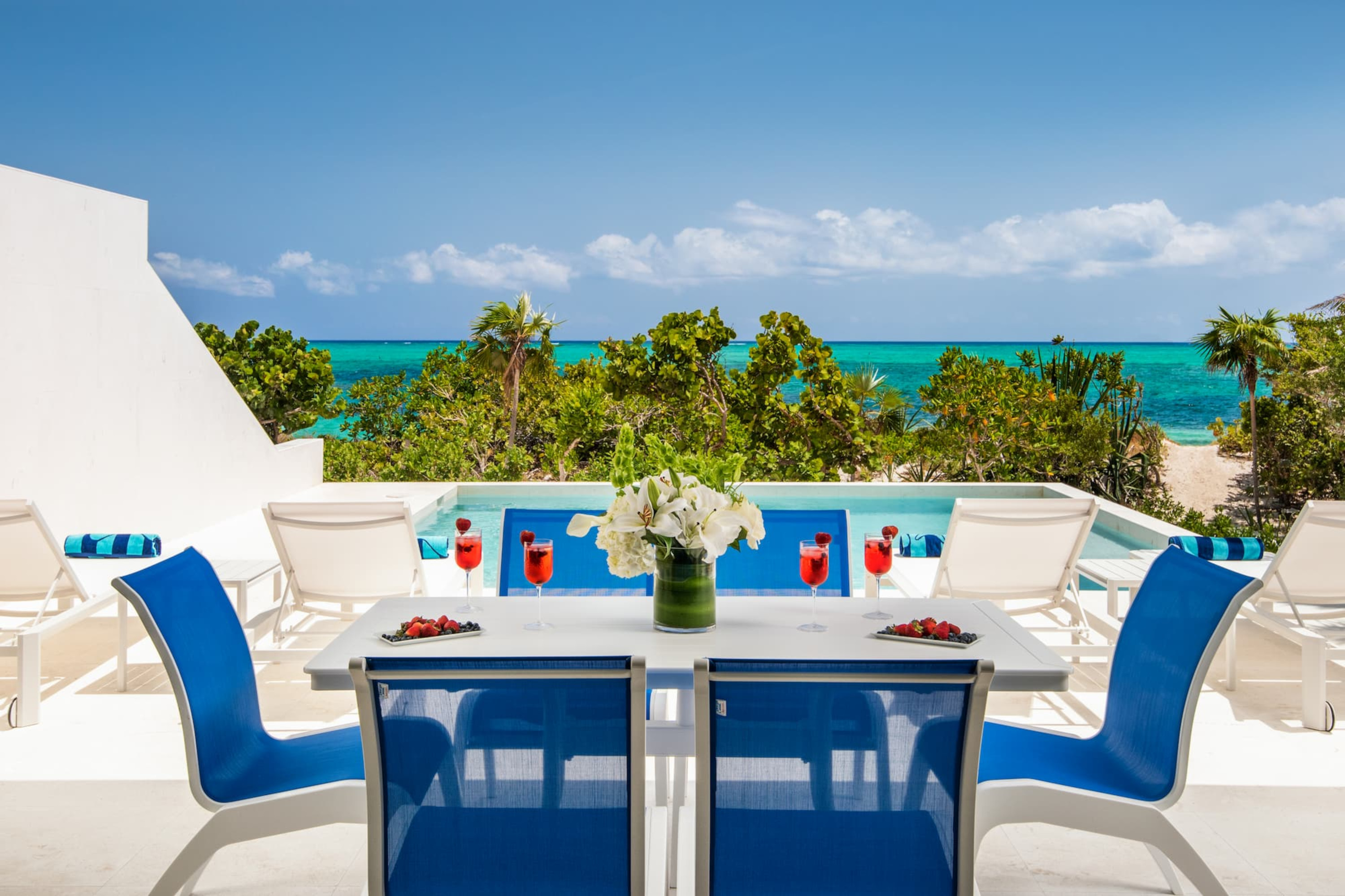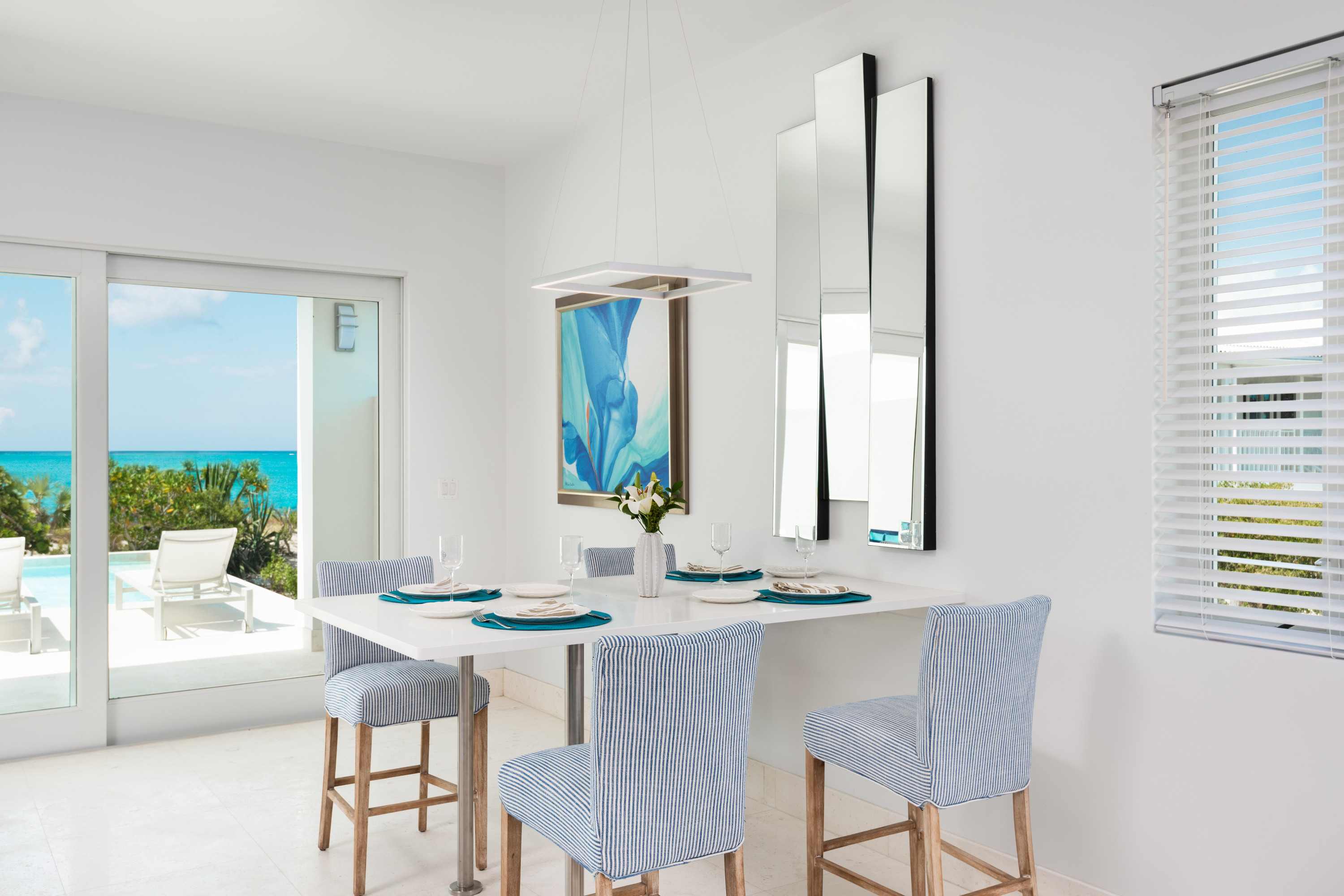 As you step out onto the terrace, the infinity pool calls you right away. A pair of sun loungers offer a chance to tan in the Caribbean sun, listening to the breeze ripple through the nearby palm trees. Steps lead you down onto Grace Bay Beach, where perfect white sand stretches for miles in either direction – this truly is paradise. Almost directly opposite the villa is Smith’s Reef, widely regarded as the best snorkeling spot in the entire country.