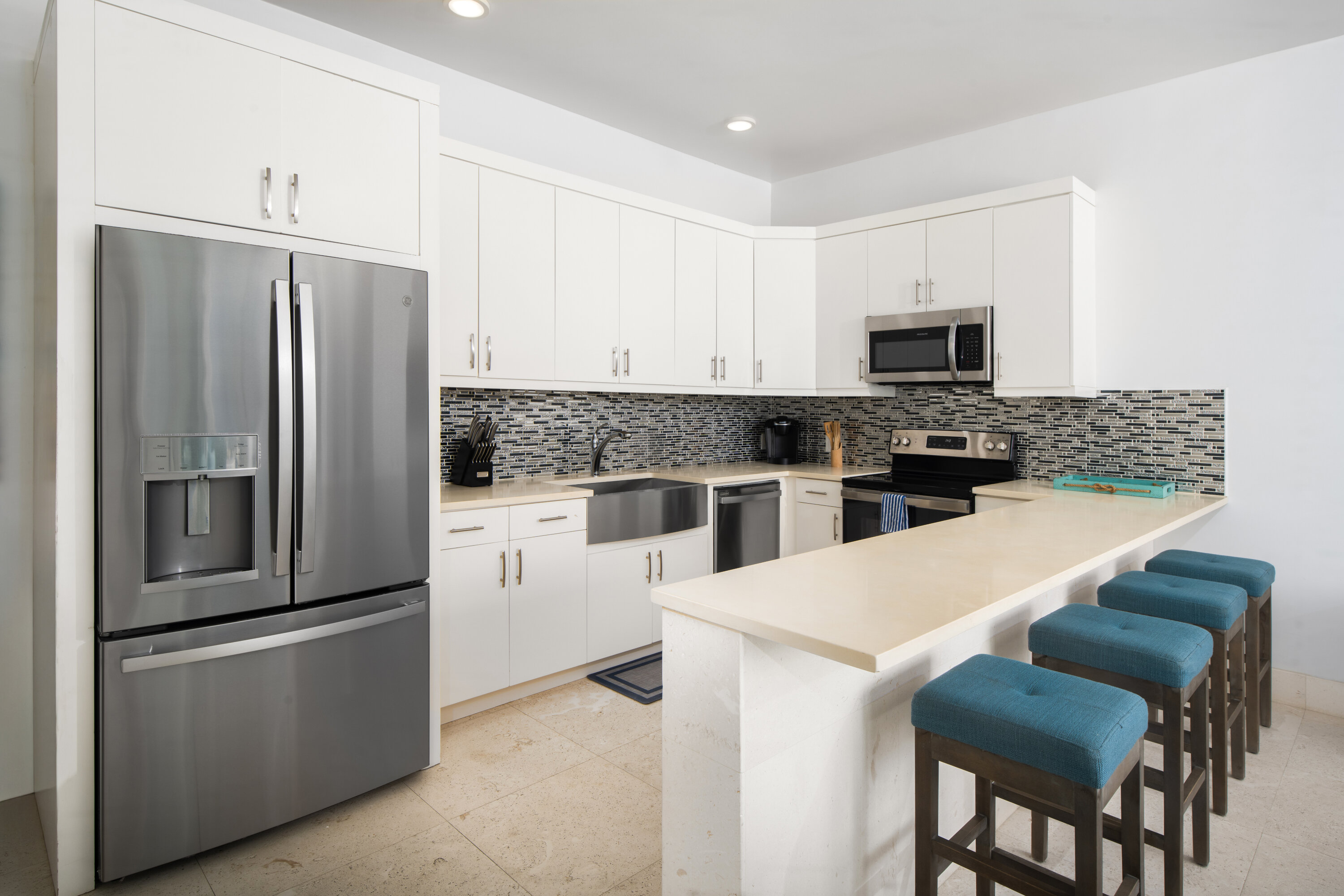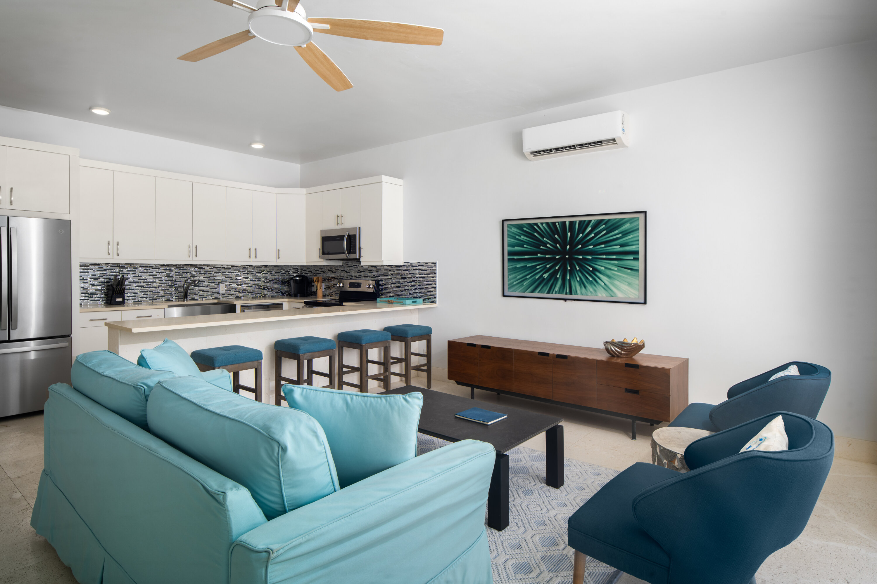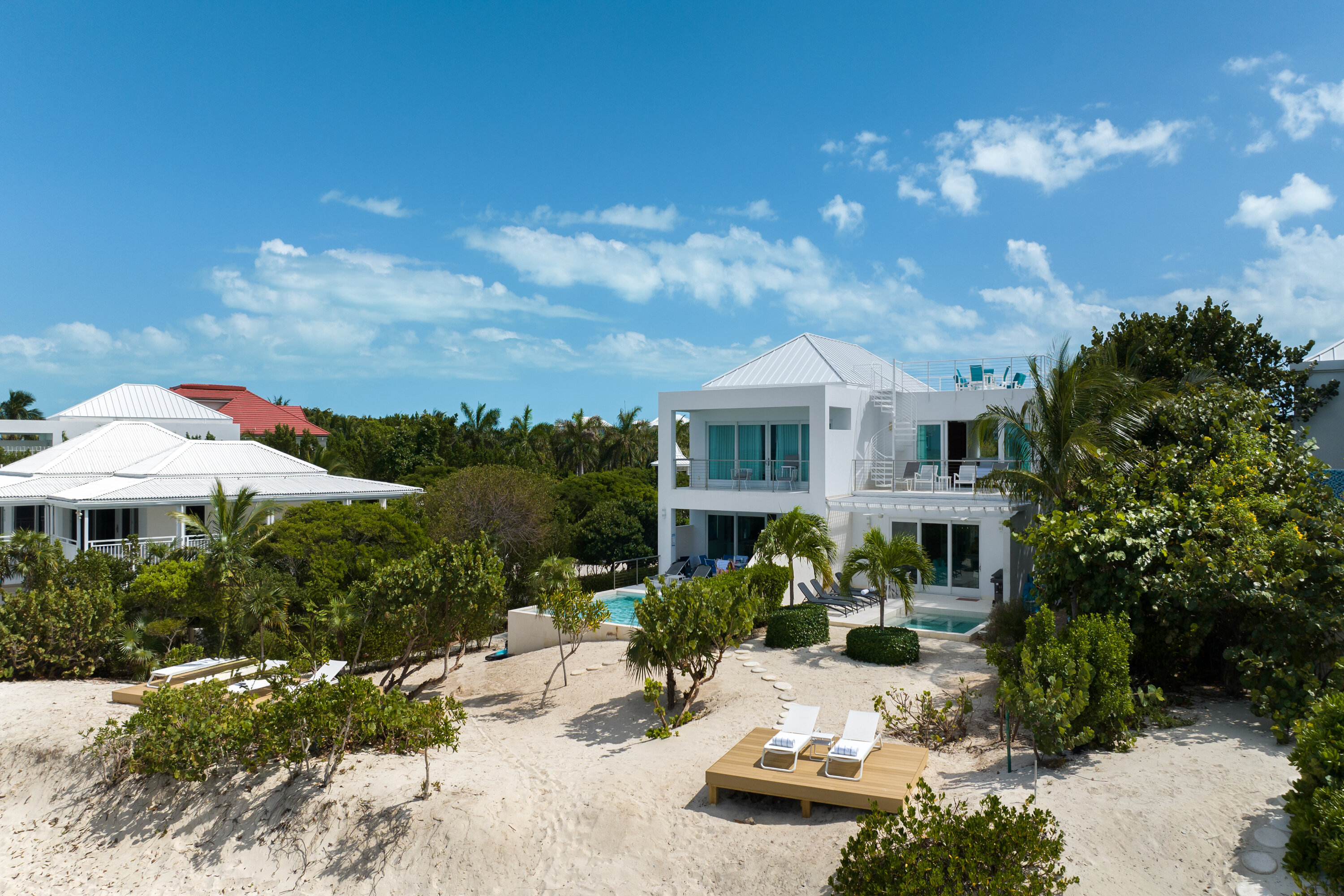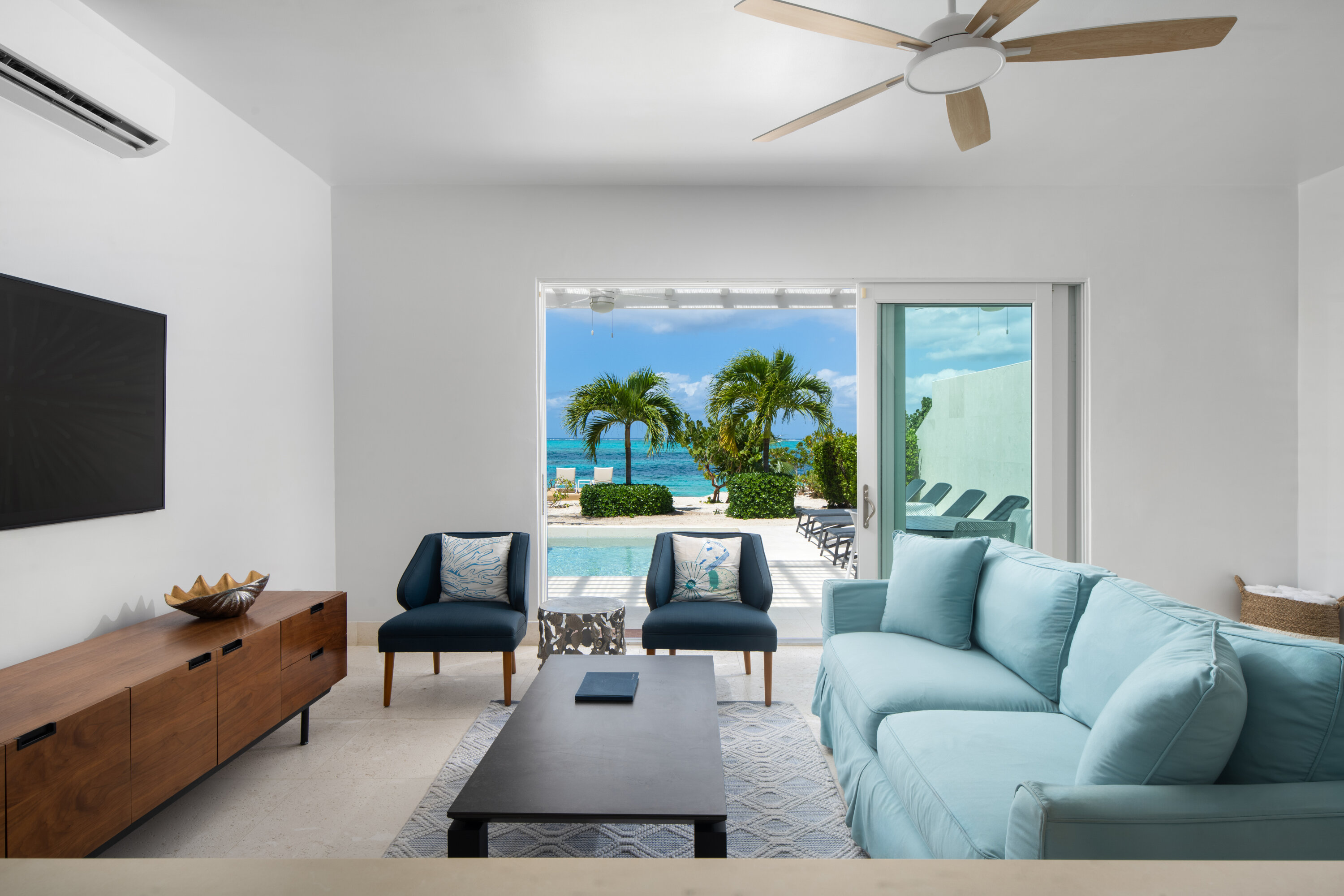 Villa Sandpiper shares one wall with the neighboring three-bedroom Sandpebble, yet each residence remains entirely private. This layout is especially convenient for two families or groups traveling together who appreciate both proximity and personal space.