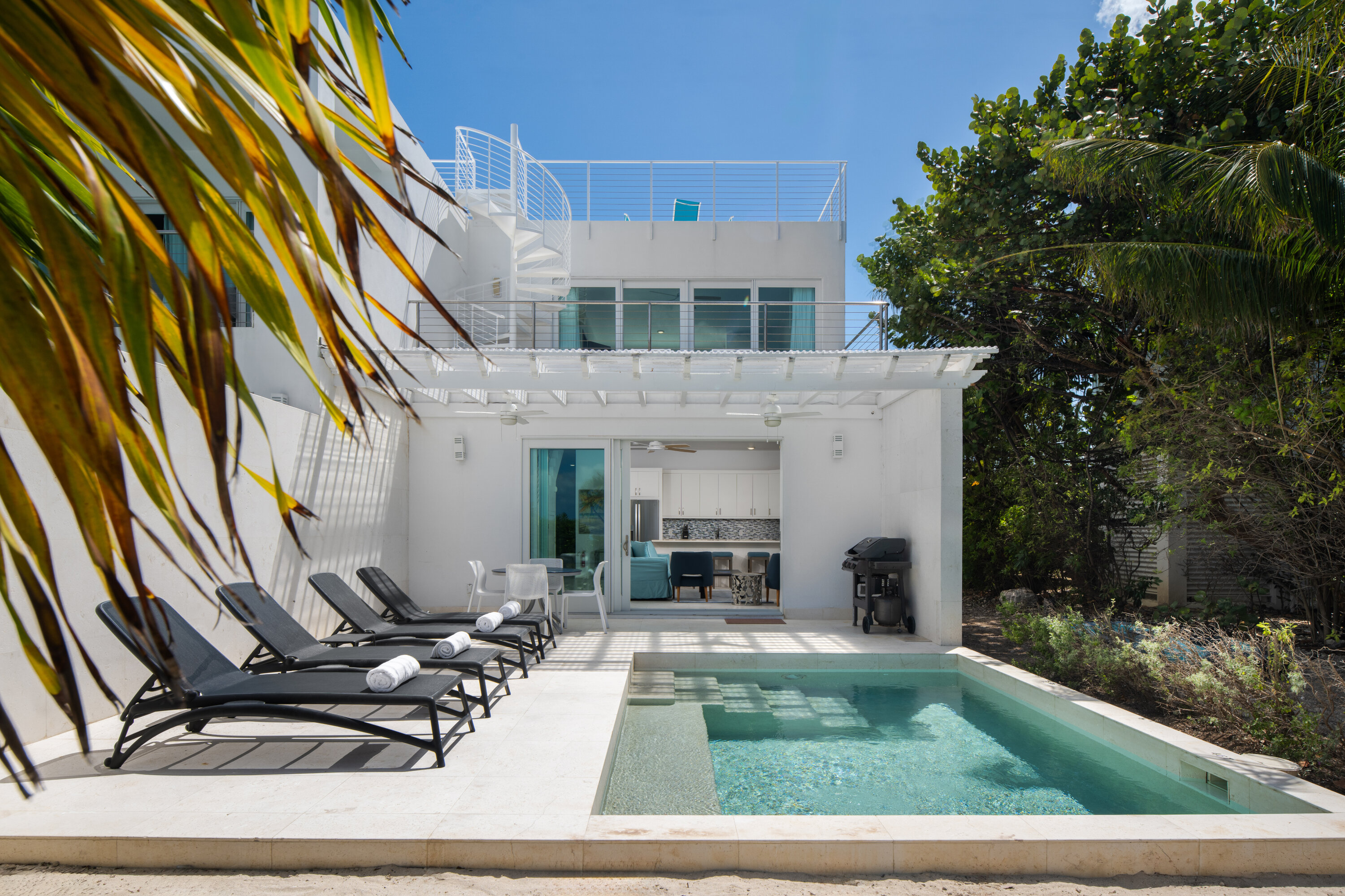 Turtle Cove Marina, home to restaurants, cafés, and boat excursions, is just a short stroll away, while the renowned Grace Bay Beach can be reached within a few minutes by car, offering even more options for dining and exploring.