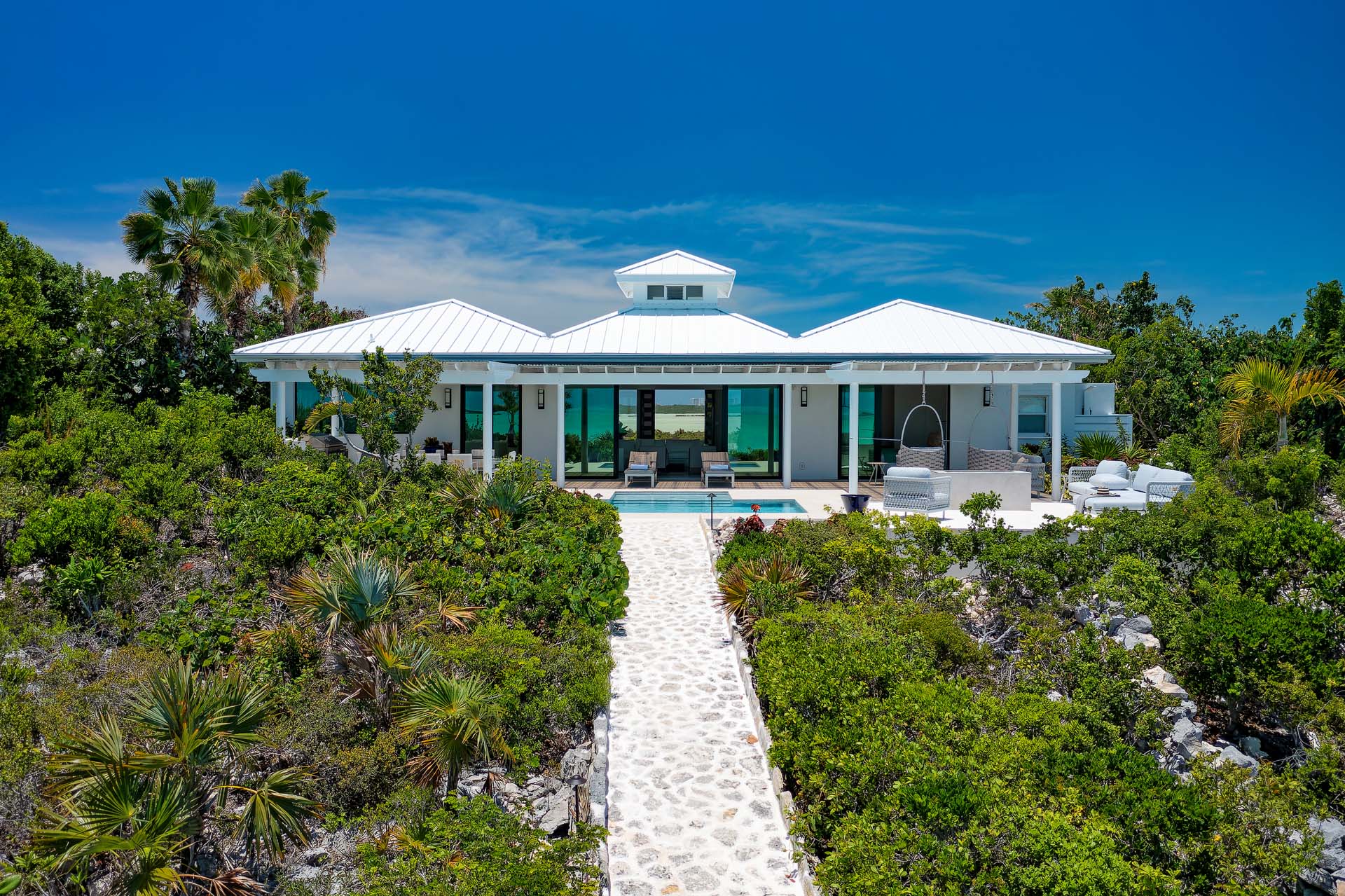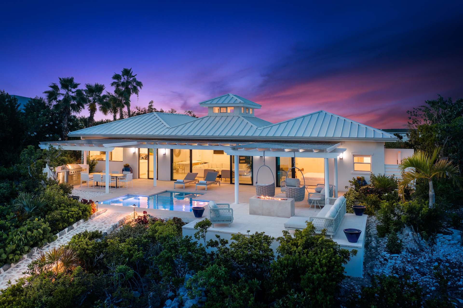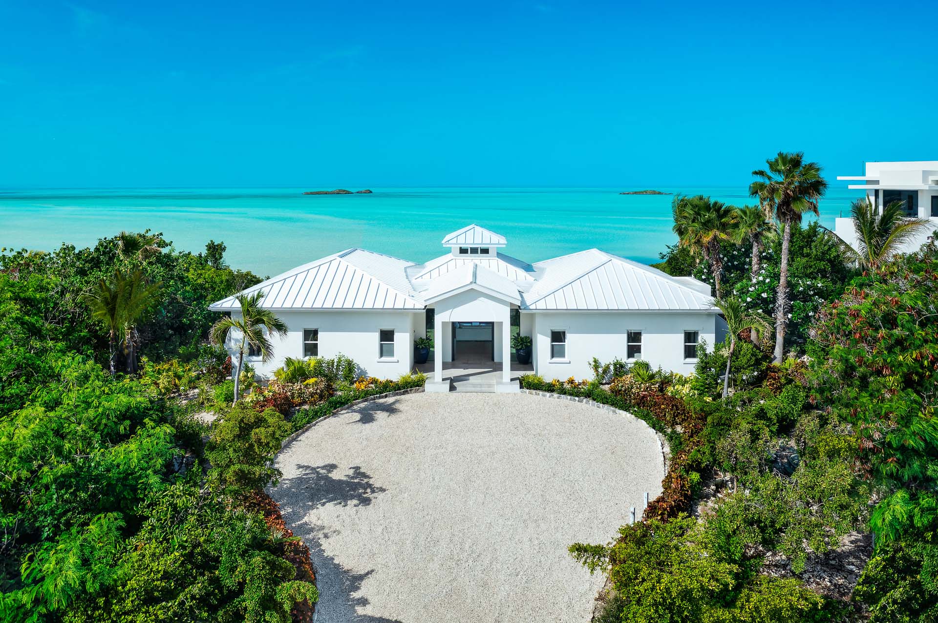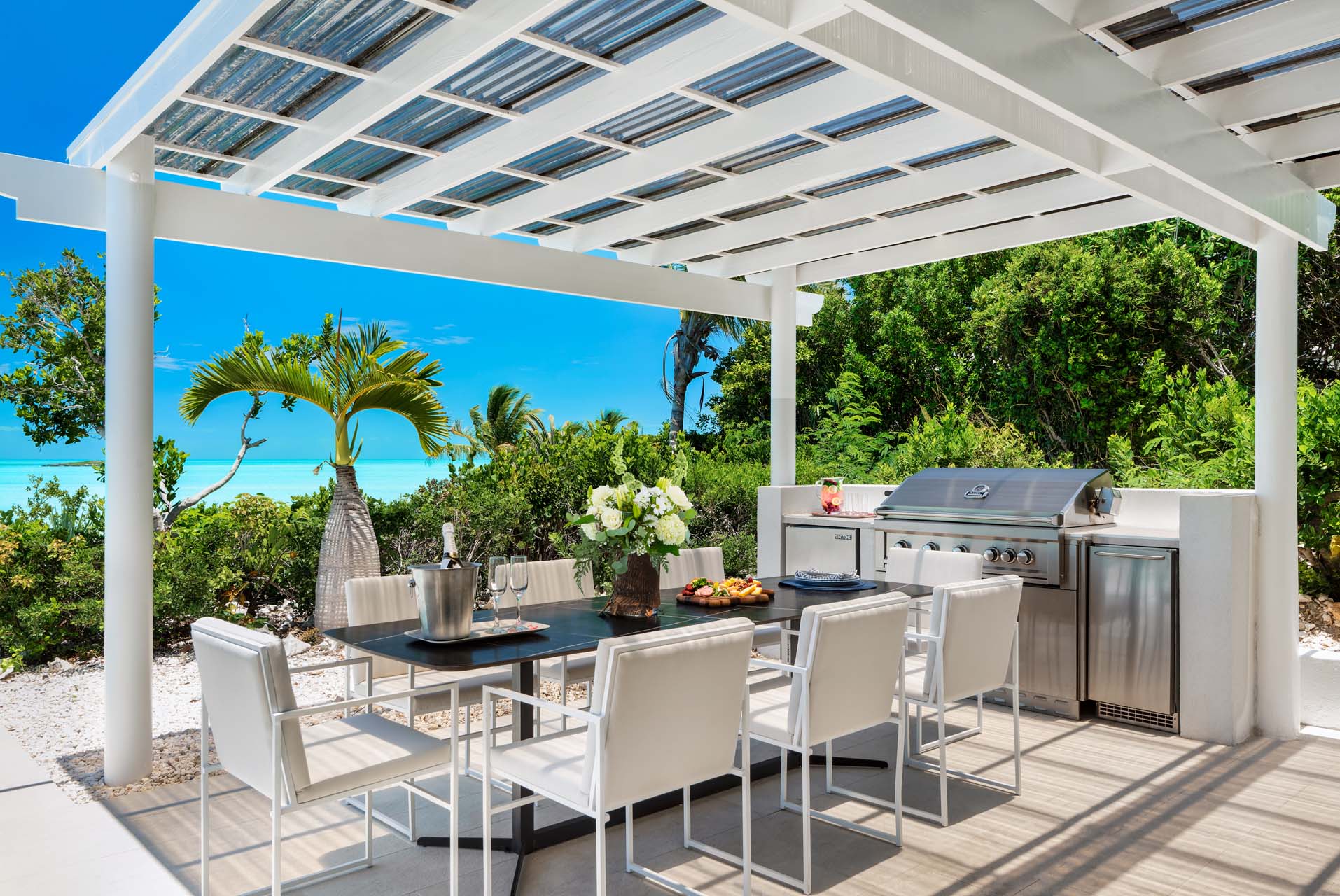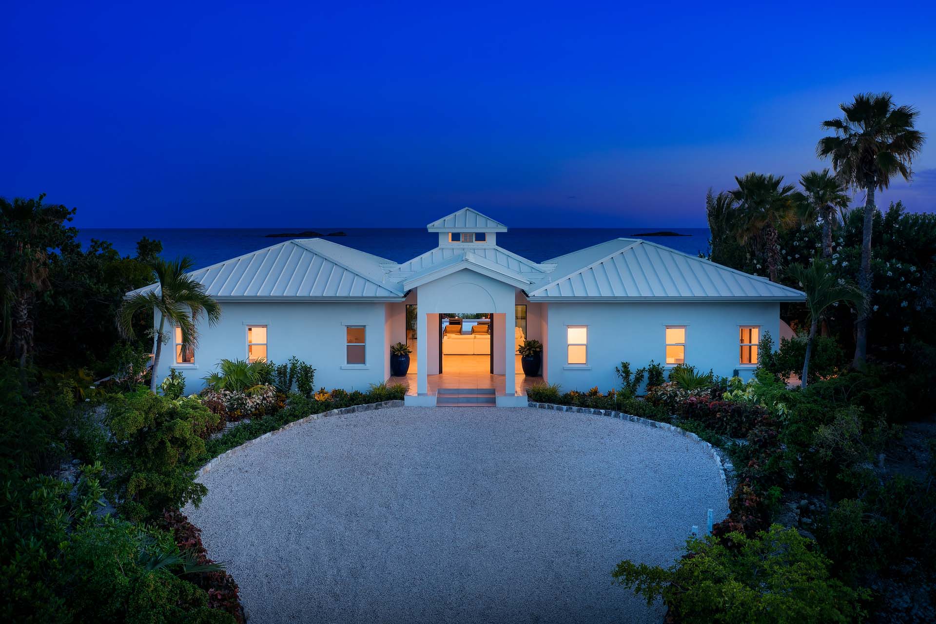 Classic Caribbean style meets the latest luxuries inside this beachfront villa in Provo, with airy living spaces and charming furnishings. Vaulted ceilings capture plenty of natural light, while island antiques and local artwork make each room unique.