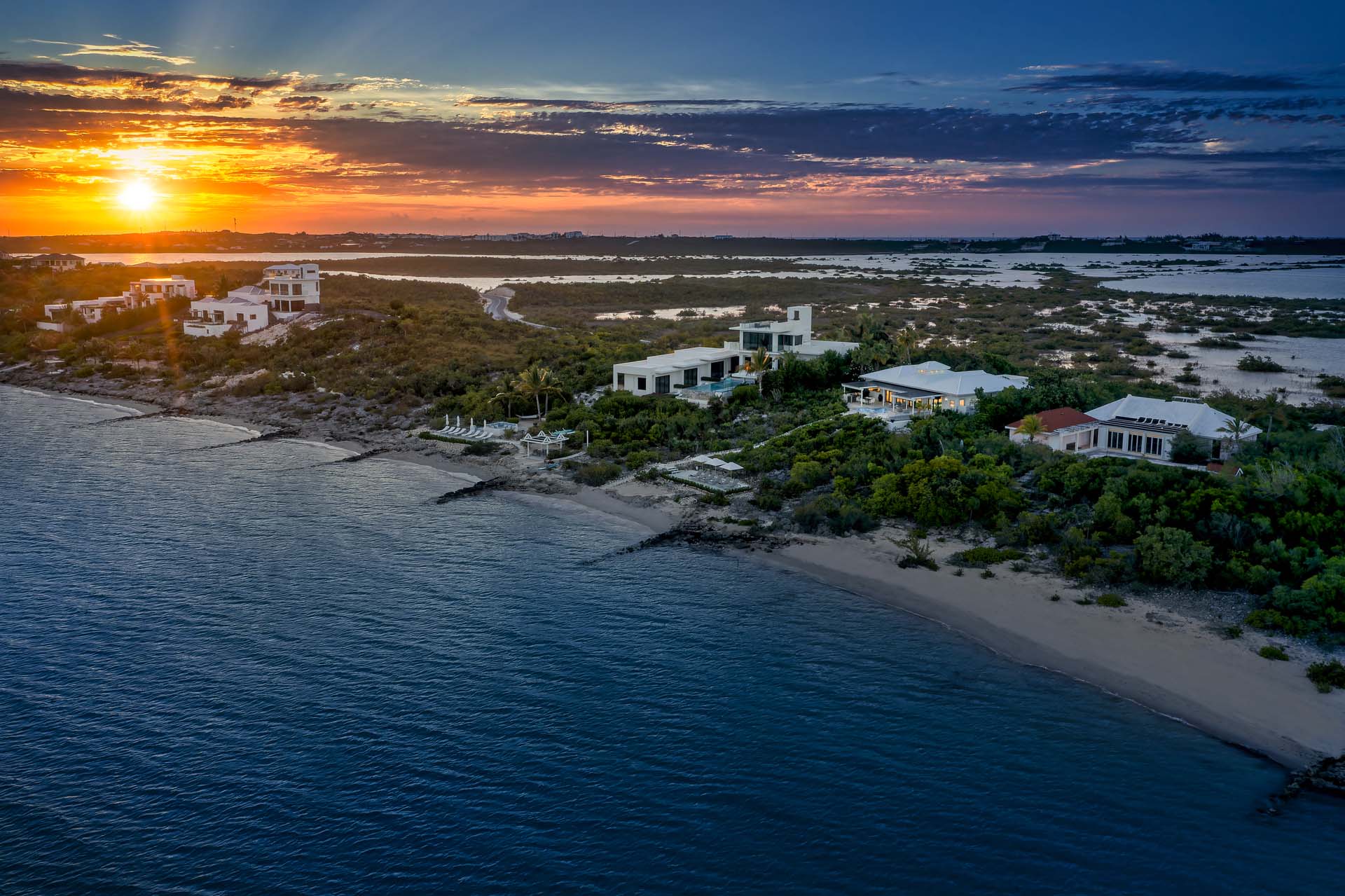 The interior flows beautifully to the outdoor living spaces, where soaking up the balmy weather is encouraged. Overlooking a perfect sweep of white sand just steps away, this is a fabulous beachfront villa for your island getaway.