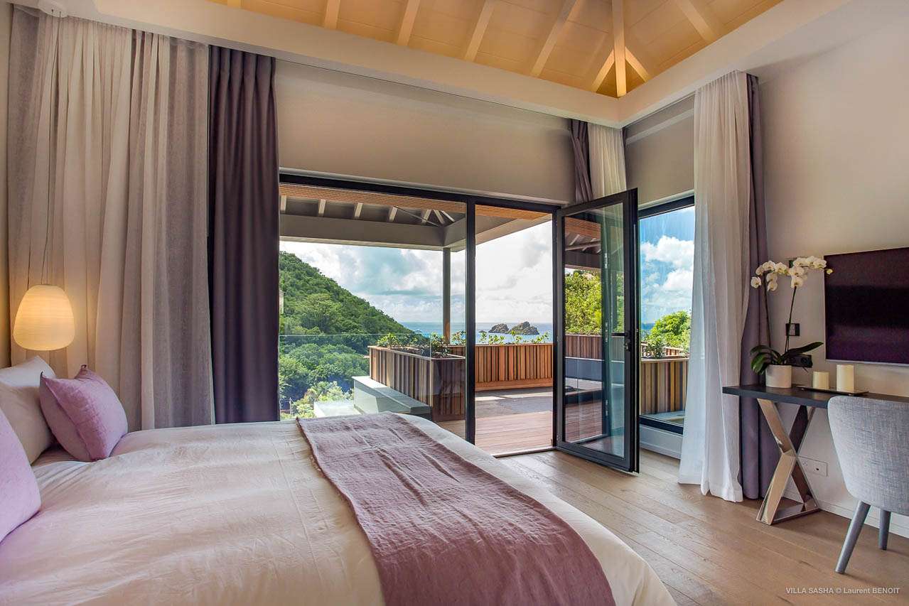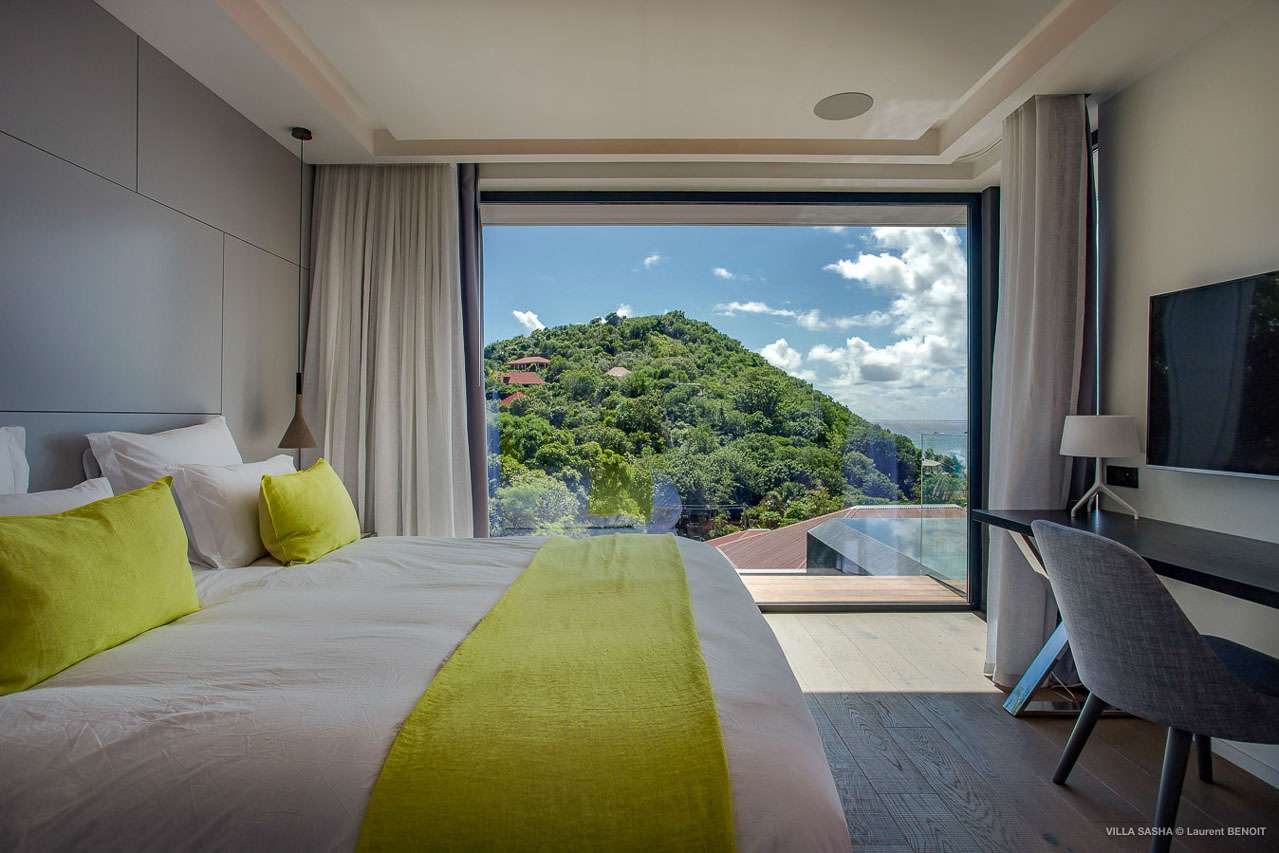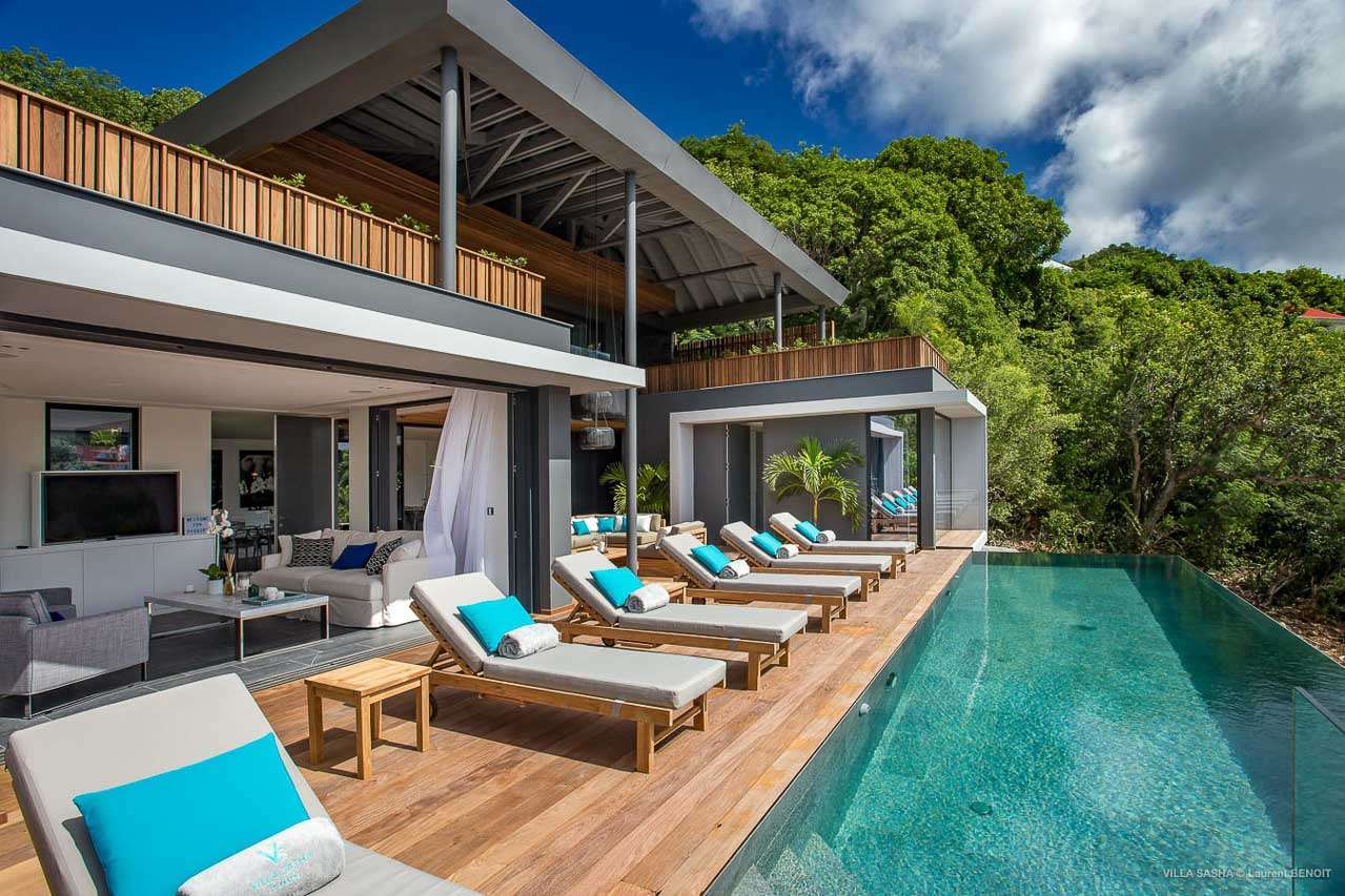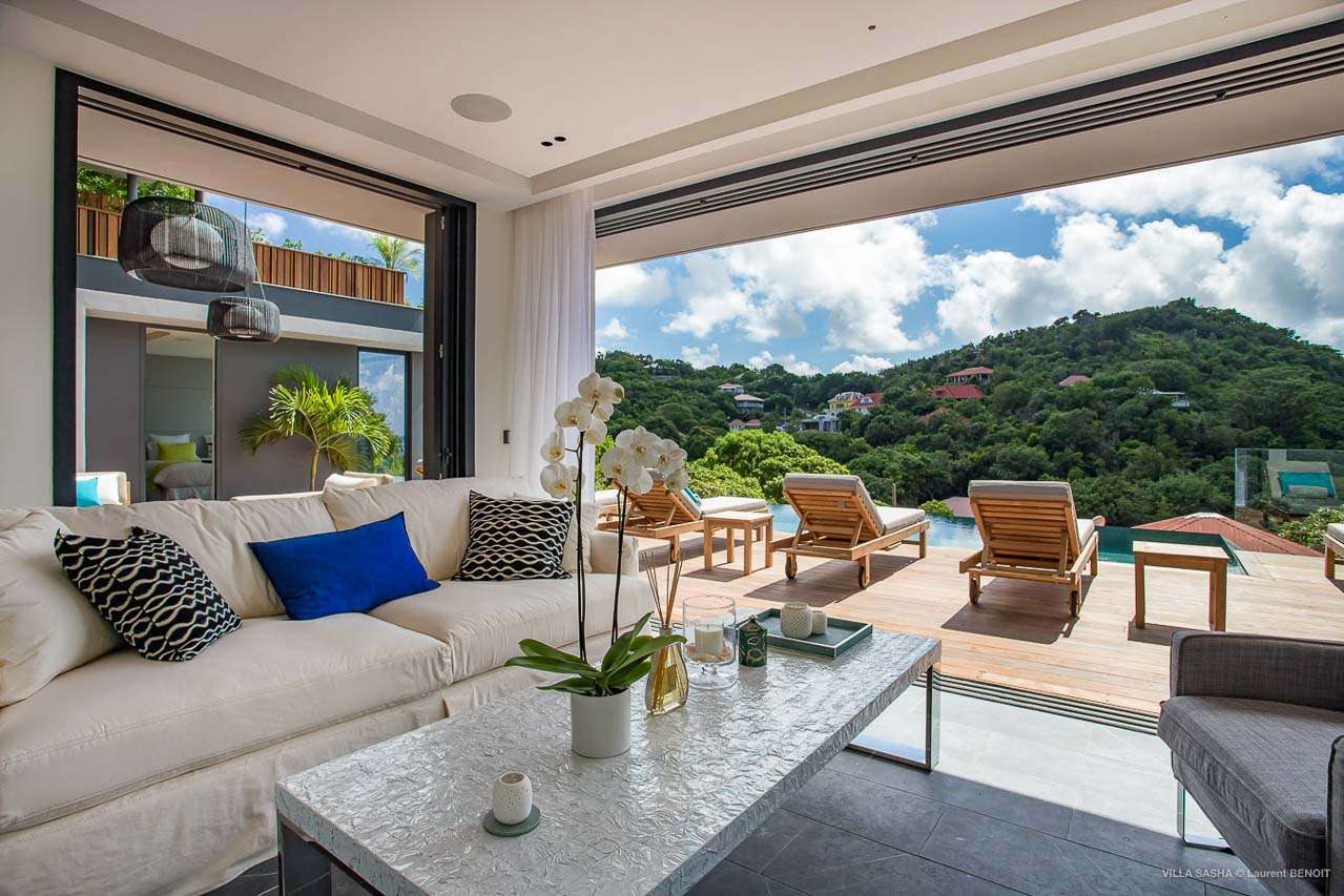 Welcome to Villa Sasha (villa code: WV SAH), a modern 3-bedroom villa located in Corossol, St. Barts. Surrounded by lush green hills, this villa enjoys beautiful views of the surrounding landscapes gently rolling down to meet the shimmering Caribbean. Stylish and elegant, the interiors at Villa Sasha offer an idyllic blend of luxury design and homey comforts. Natural elements like wood and stone add an earthy touch to the villa, creating a deluxe beach-house atmosphere that makes relaxation inevitable. The location in Corossol is also hard to beat. Quiet and secluded, you’ll feel as if you have the island to yourself. Yet Gustavia, the capital of St. Barts, is only 5 minutes away by car, offering world-class dining, boutique shops, and a lively pocket of nightlife. Villa Sasha is spread over three levels, with the parking area at the bottom leading you upstairs to the central living spaces. The design and layout are excellent; large doors slide open to the incredible views at every turn, offering a dreamy blend of indoor and outdoor space. The graceful living area features striking photographs on the walls and soft sofas that are ideal for relaxing. Airy and bright, with the doors open, the cooling island breeze lets you breathe a sigh of relief. An entertainment center also coaxes you in for a quiet movie night inside, spending quality time with family and friends. The living room connects to Villa Sasha’s modern kitchen, with a breakfast bar and a range of high-end amenities. This space opens directly onto the terrace, making it so the chef in your group is still a part of the pre-dinner conversation and drinks. Next to the kitchen is an indoor dining table, a fabulous setting for meals with your group. Eye-catching black-and-white photos adorn the wall above the table, cool and contemporary backdrops to gourmet dinners. Being able to relax and unwind at the end of each day is essential for a successful island holiday. Luckily, the 3 bedrooms inside Villa Sasha let you do just that. The master suite is on the main level by the pool, offering wonderful sea views from the large floor-to-ceiling windows. Ascending upstairs to the top of Villa Sasha reveals the other two bedrooms, each with a private terrace and ocean views. Blissful days spent outside at Villa Sasha will leave you feeling chilled-out, slipping into a carefree state of mind. The versatile layout means that there’s a beautiful mix of shade and sun, letting you enjoy your day as you want. The swimming pool is a highlight, refreshing and cool, while plush chaise lounges line the water for sunbathing. Directly out the front of the kitchen and dining area is the outdoor lounge, a low-slung L-shaped sofa that’s ideal for a sunset cocktail hour. Located in the back is a small garden with an outdoor dining area where guests can enjoy meals under the stars. When the beach calls, the small and peaceful Corossol Beach is an idyllic cove for swimming. Calm, turquoise waters and a friendly local atmosphere make this a great spot for families. During the Thanksgiving and December holidays, the villa rents at full occupancy rates regardless of how many bedrooms are used.Please fill out the form to begin your inquiry and we will connect you with a seasoned villa rental specialist.