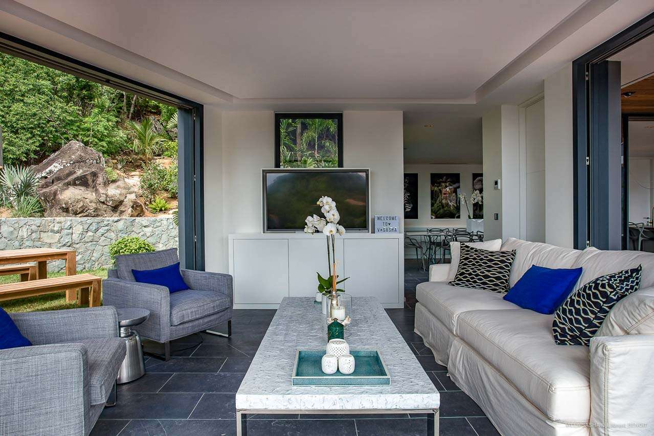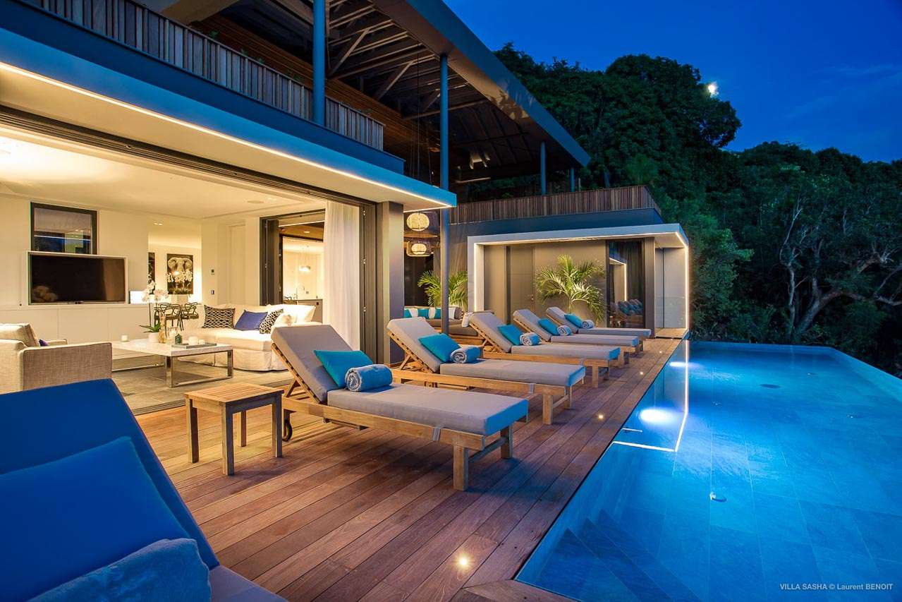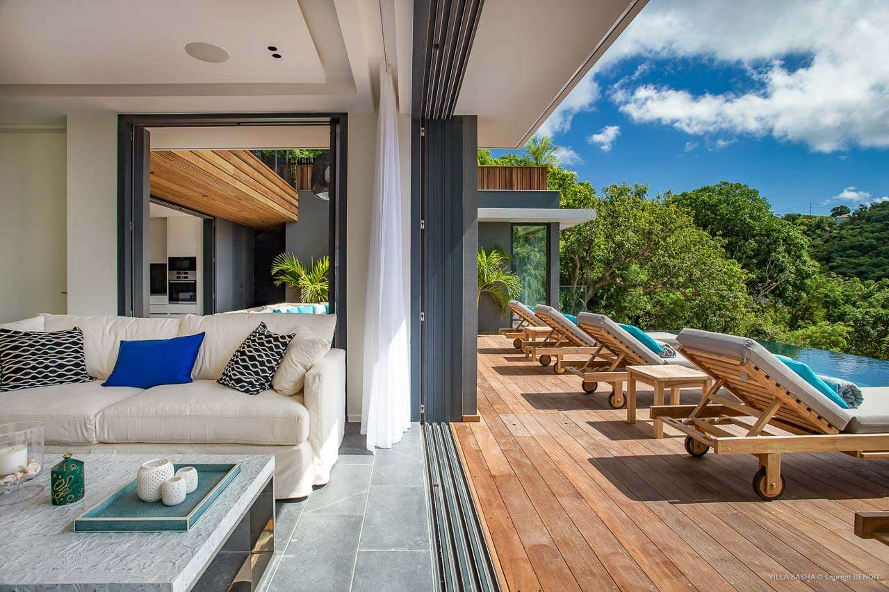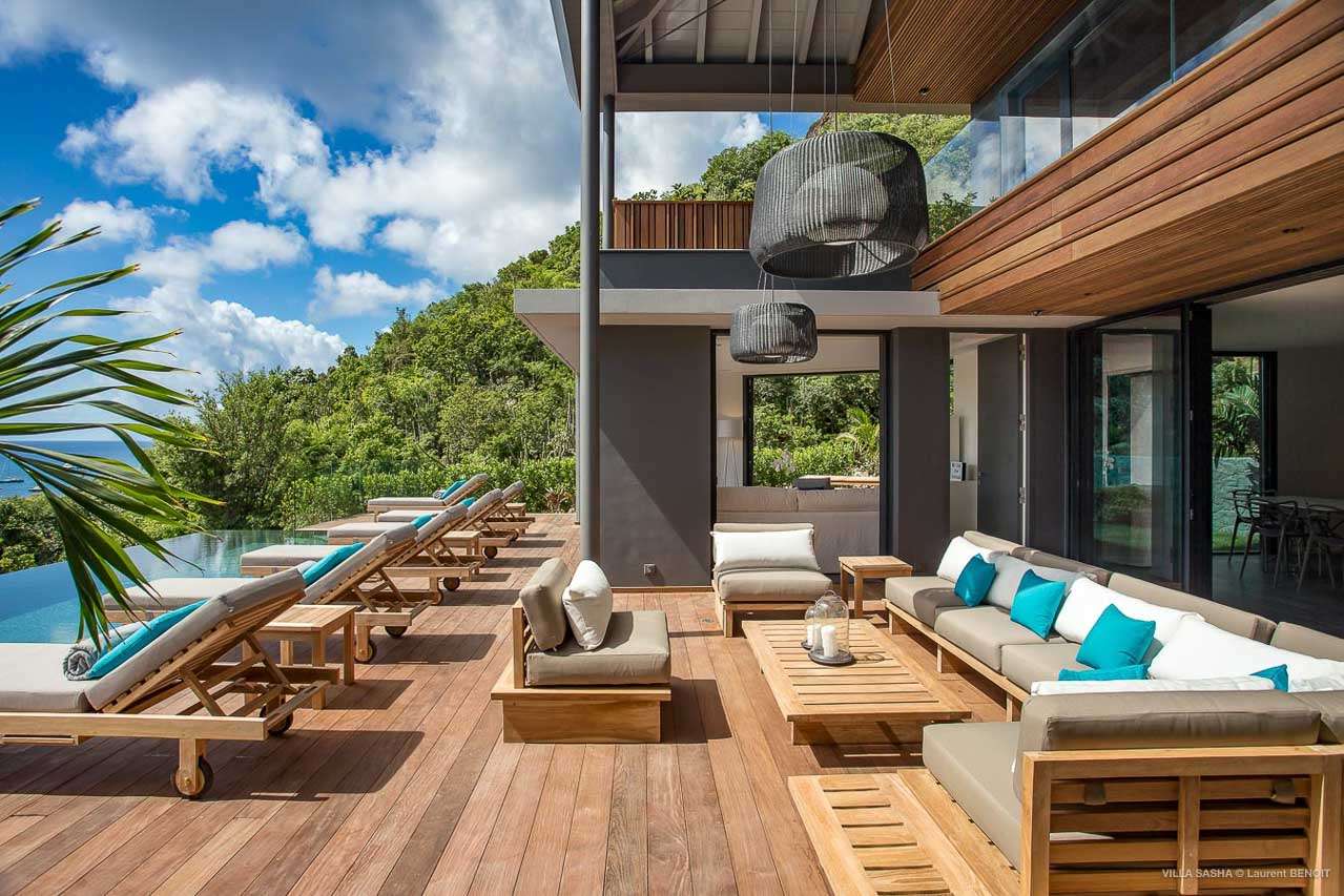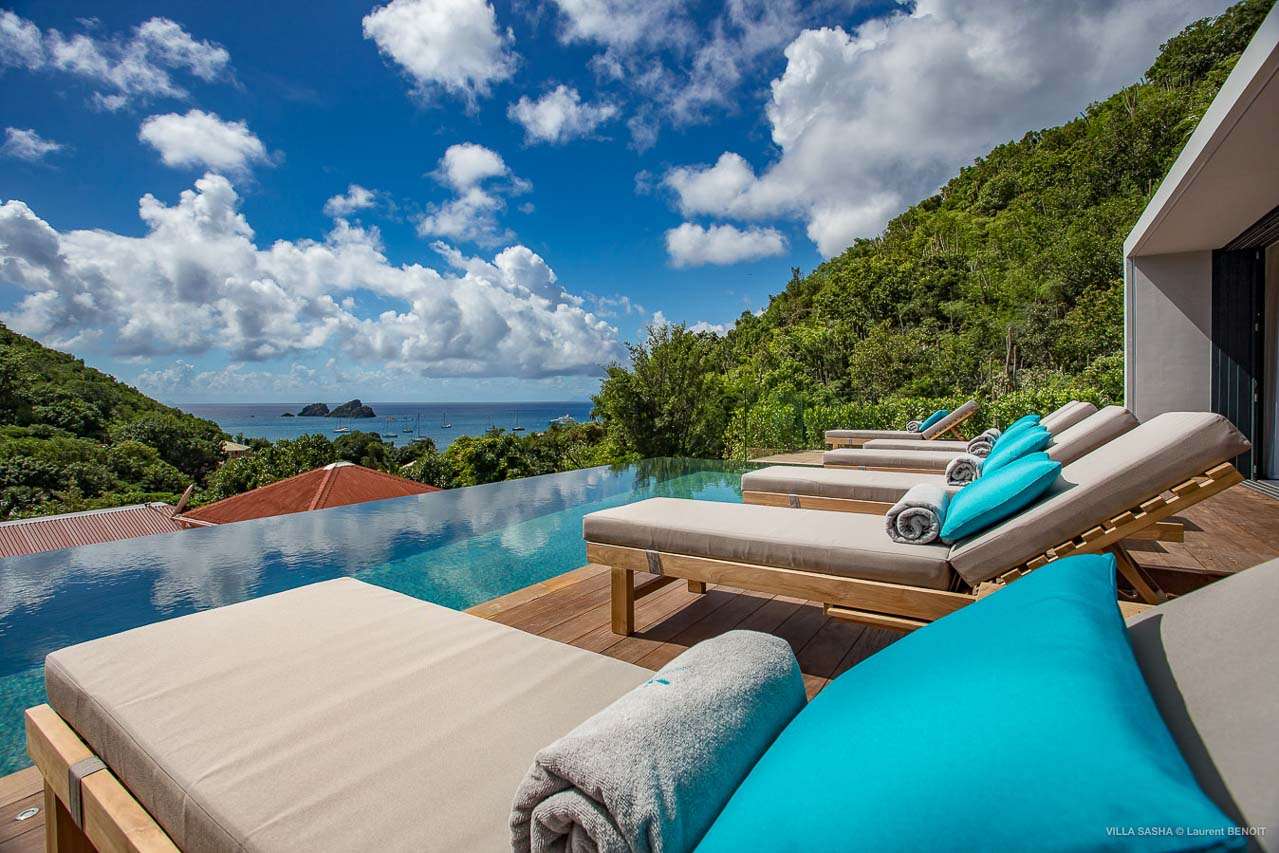 Welcome to Villa Sasha (villa code: WV SAH), a modern 3-bedroom villa located in Corossol, St. Barts. Surrounded by lush green hills, this villa enjoys beautiful views of the surrounding landscapes gently rolling down to meet the shimmering Caribbean. Stylish and elegant, the interiors at Villa Sasha offer an idyllic blend of luxury design and homey comforts. Natural elements like wood and stone add an earthy touch to the villa, creating a deluxe beach-house atmosphere that makes relaxation inevitable. The location in Corossol is also hard to beat. Quiet and secluded, you’ll feel as if you have the island to yourself. Yet Gustavia, the capital of St. Barts, is only 5 minutes away by car, offering world-class dining, boutique shops, and a lively pocket of nightlife. Villa Sasha is spread over three levels, with the parking area at the bottom leading you upstairs to the central living spaces. The design and layout are excellent; large doors slide open to the incredible views at every turn, offering a dreamy blend of indoor and outdoor space. The graceful living area features striking photographs on the walls and soft sofas that are ideal for relaxing. Airy and bright, with the doors open, the cooling island breeze lets you breathe a sigh of relief. An entertainment center also coaxes you in for a quiet movie night inside, spending quality time with family and friends. The living room connects to Villa Sasha’s modern kitchen, with a breakfast bar and a range of high-end amenities. This space opens directly onto the terrace, making it so the chef in your group is still a part of the pre-dinner conversation and drinks. Next to the kitchen is an indoor dining table, a fabulous setting for meals with your group. Eye-catching black-and-white photos adorn the wall above the table, cool and contemporary backdrops to gourmet dinners. Being able to relax and unwind at the end of each day is essential for a successful island holiday. Luckily, the 3 bedrooms inside Villa Sasha let you do just that. The master suite is on the main level by the pool, offering wonderful sea views from the large floor-to-ceiling windows. Ascending upstairs to the top of Villa Sasha reveals the other two bedrooms, each with a private terrace and ocean views. Blissful days spent outside at Villa Sasha will leave you feeling chilled-out, slipping into a carefree state of mind. The versatile layout means that there’s a beautiful mix of shade and sun, letting you enjoy your day as you want. The swimming pool is a highlight, refreshing and cool, while plush chaise lounges line the water for sunbathing. Directly out the front of the kitchen and dining area is the outdoor lounge, a low-slung L-shaped sofa that’s ideal for a sunset cocktail hour. Located in the back is a small garden with an outdoor dining area where guests can enjoy meals under the stars. When the beach calls, the small and peaceful Corossol Beach is an idyllic cove for swimming. Calm, turquoise waters and a friendly local atmosphere make this a great spot for families. During the Thanksgiving and December holidays, the villa rents at full occupancy rates regardless of how many bedrooms are used.Please fill out the form to begin your inquiry and we will connect you with a seasoned villa rental specialist.